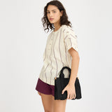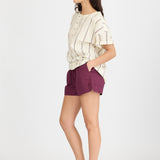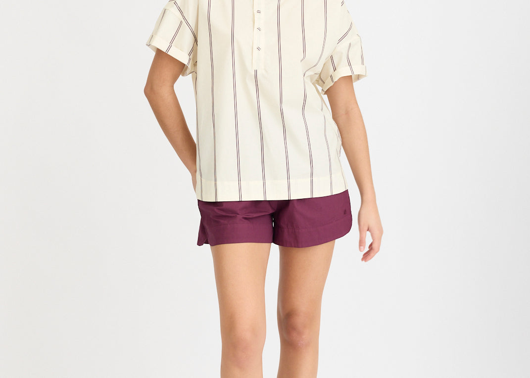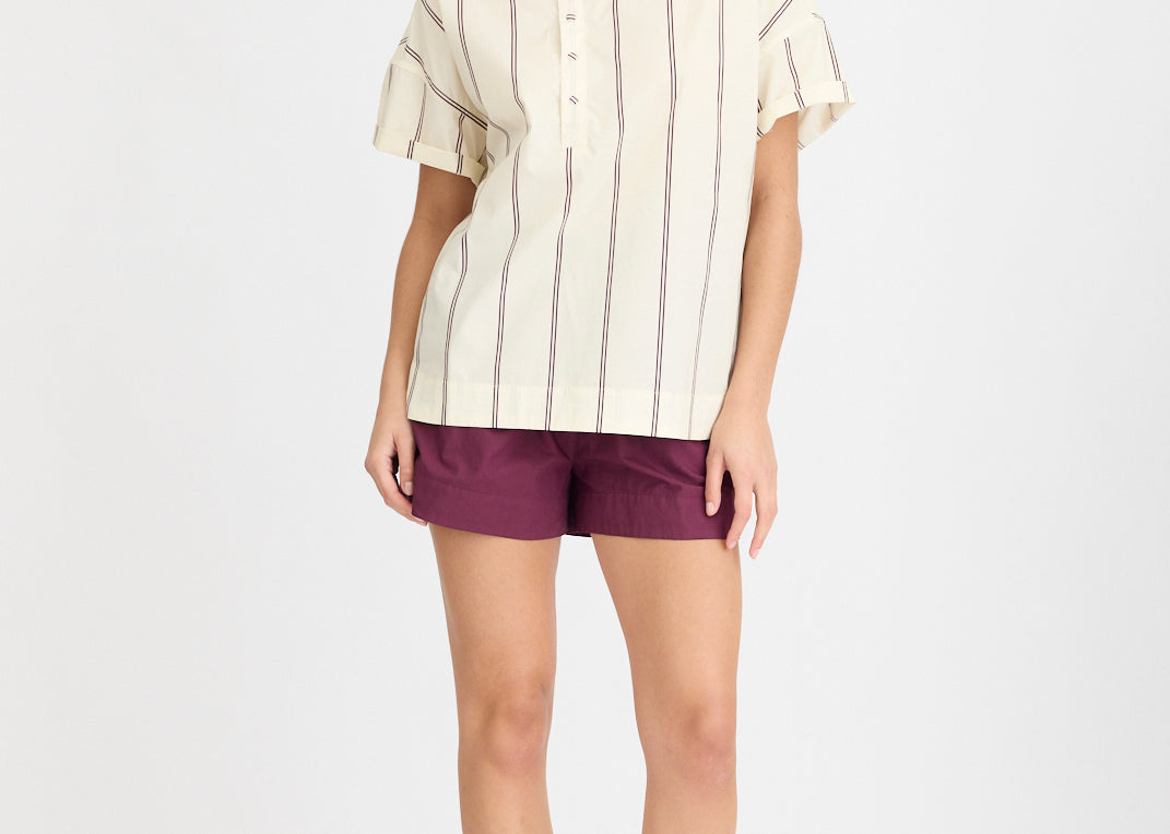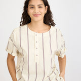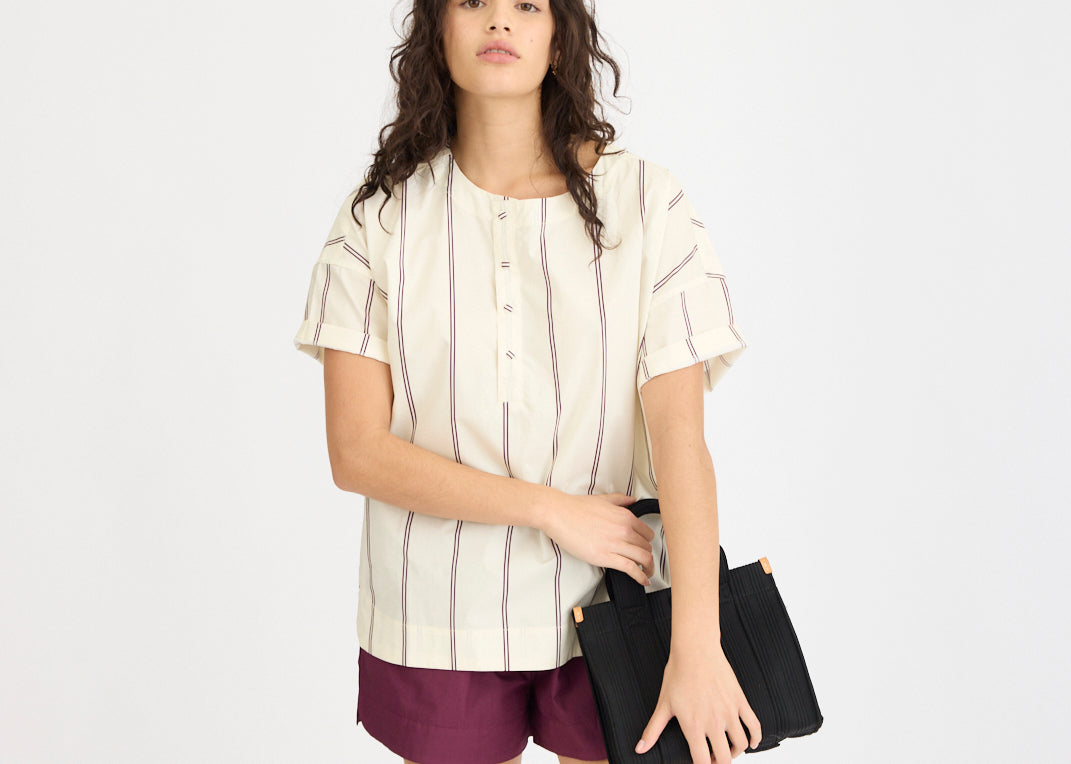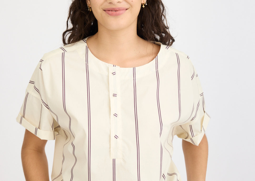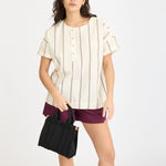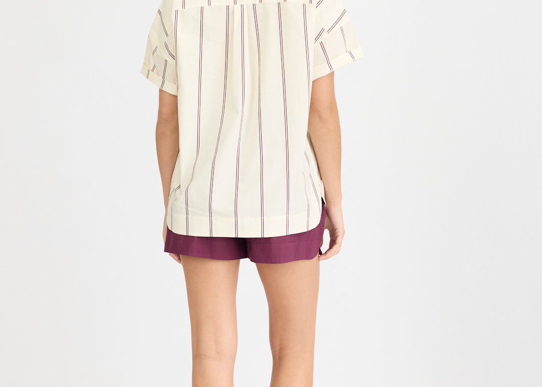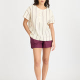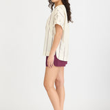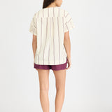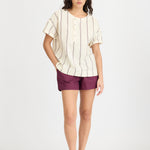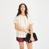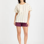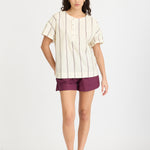 Alba - Asymmetric Top Double Pinstripe - Cherry/Ivory