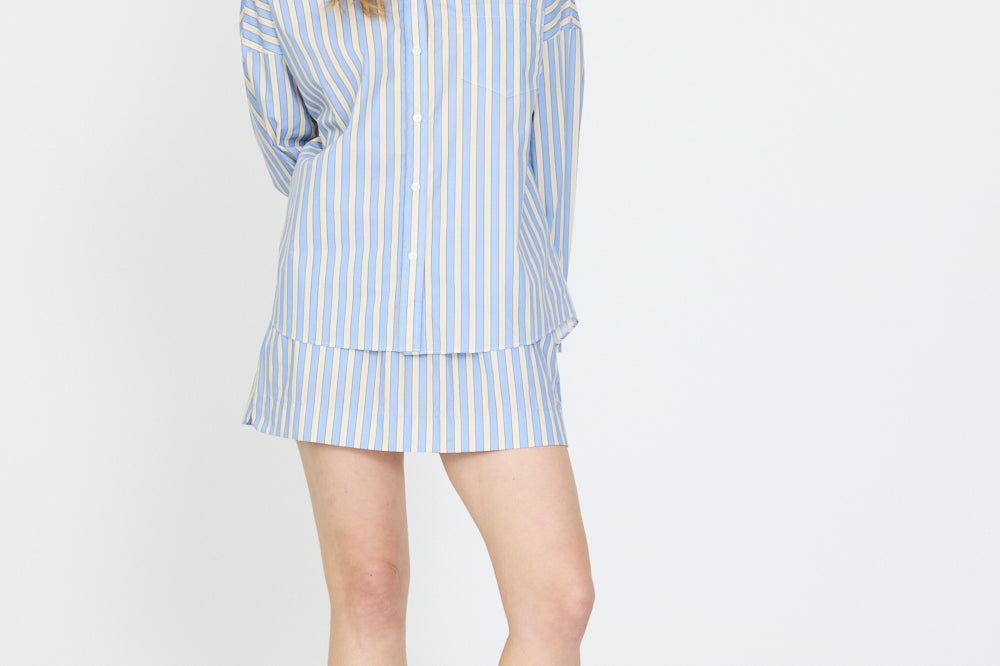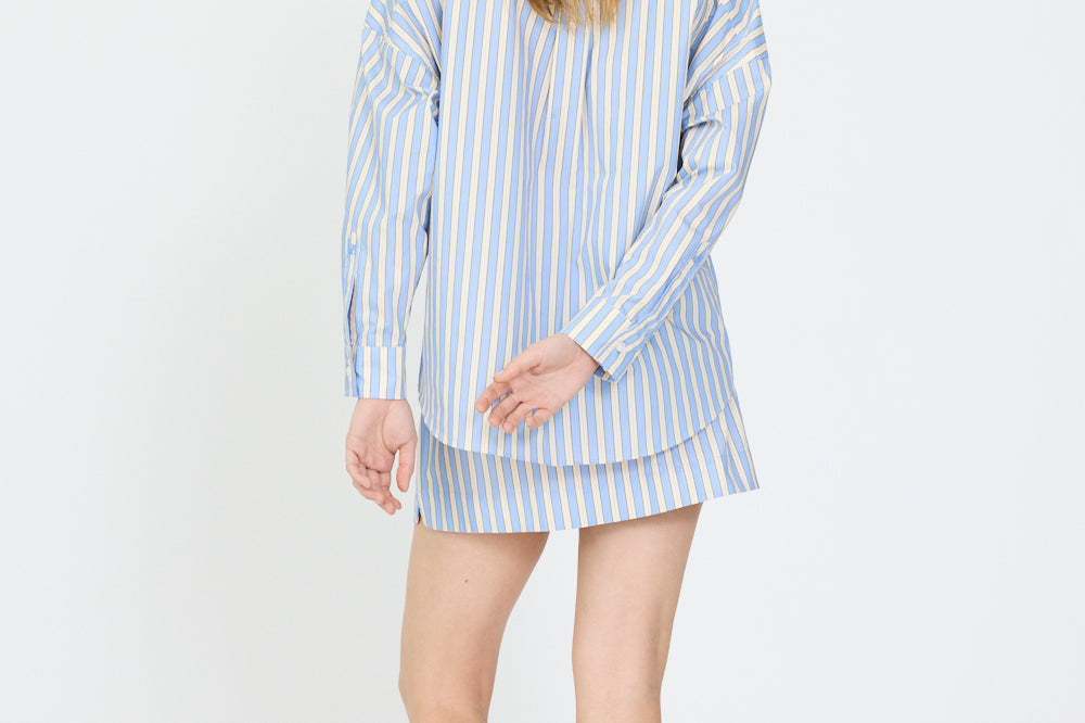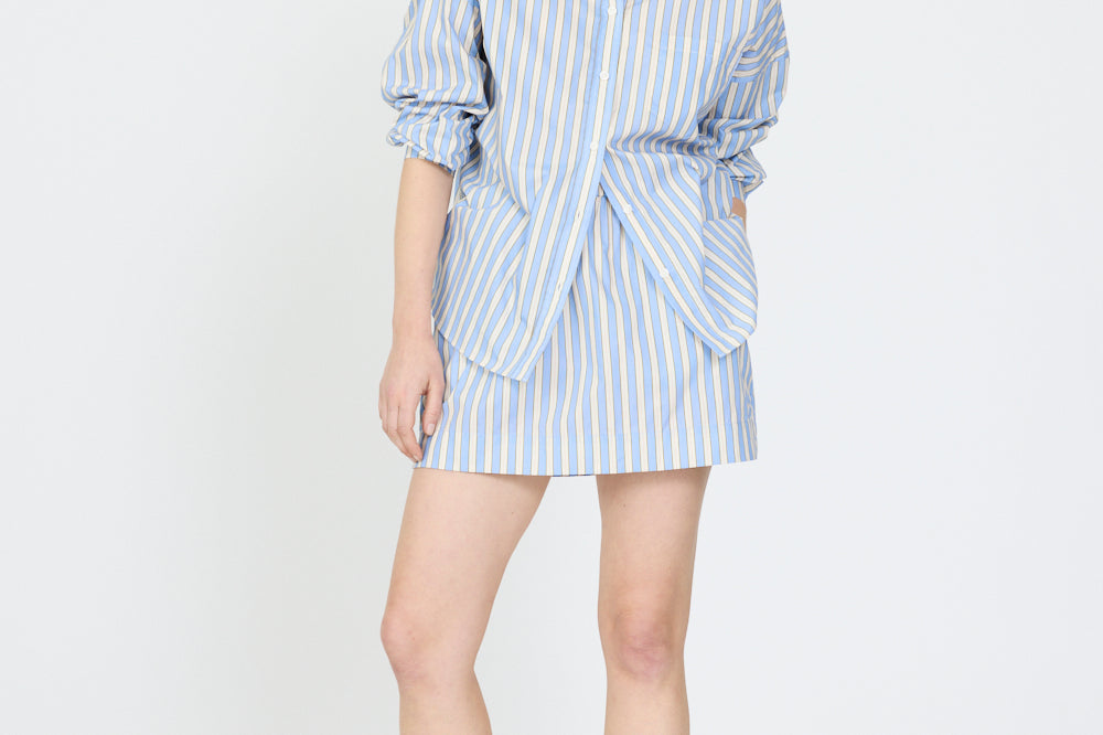 The Billie Mini Skirt is your summer staple, light, playful, and endlessly versatile. Cut from breathable 100% cotton poplin, it’s designed with an elasticated waistband for comfort and side pockets for ease. The flared hem brings a feminine, relaxed silhouette that moves with you from beach days to city strolls.