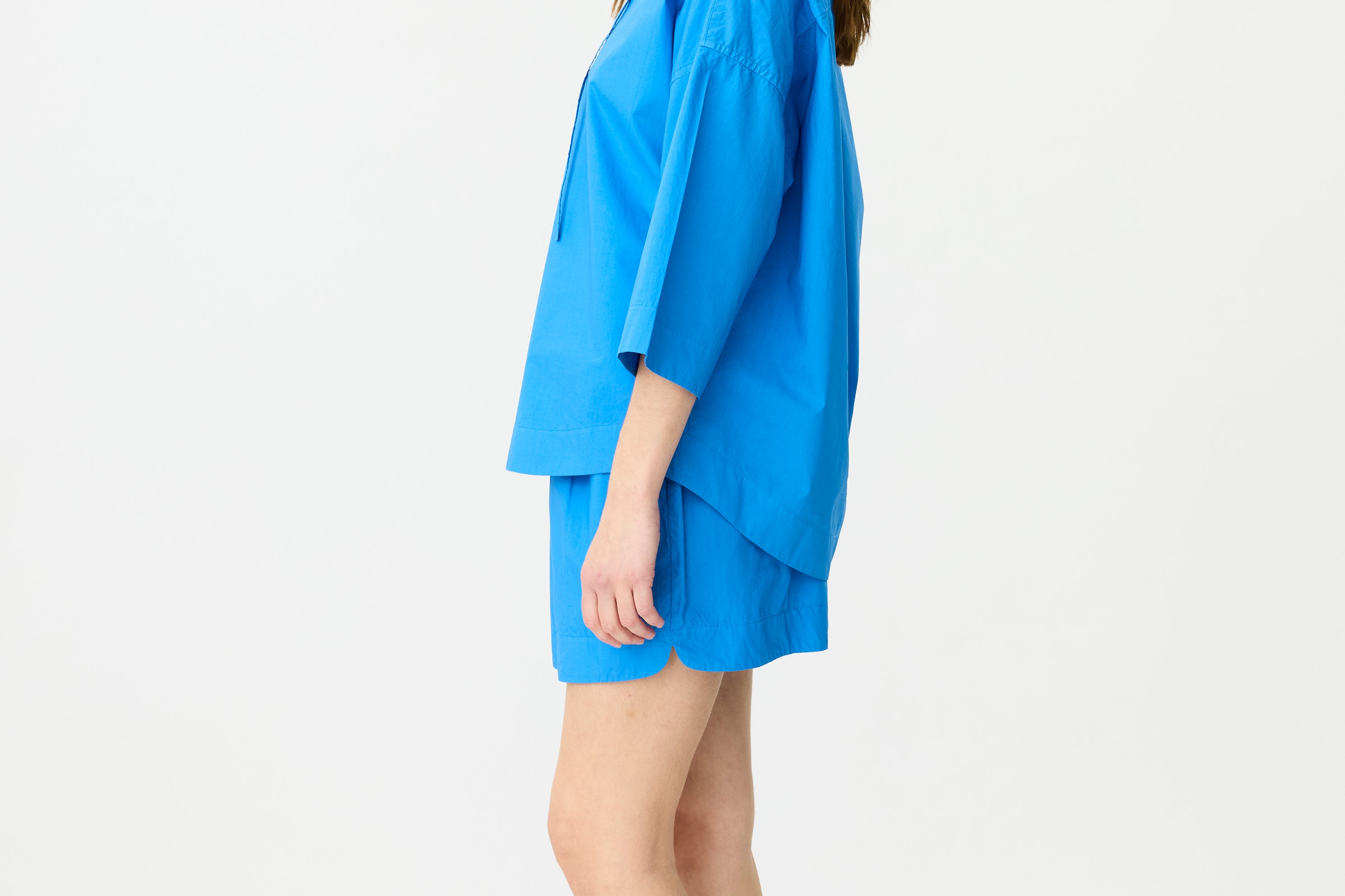 Crafted from lightweight, breathable 100% cotton, this shirt is made for warm days and effortless layering. The oversized fit features our signature drop shoulders for a relaxed, easygoing look, while the matching scalloped-hem shorts add a playful yet chic touch. The soft Rosa hue injects a bold, modern twist into your wardrobe, making this set perfect for casual outings or as your go-to vacation look.