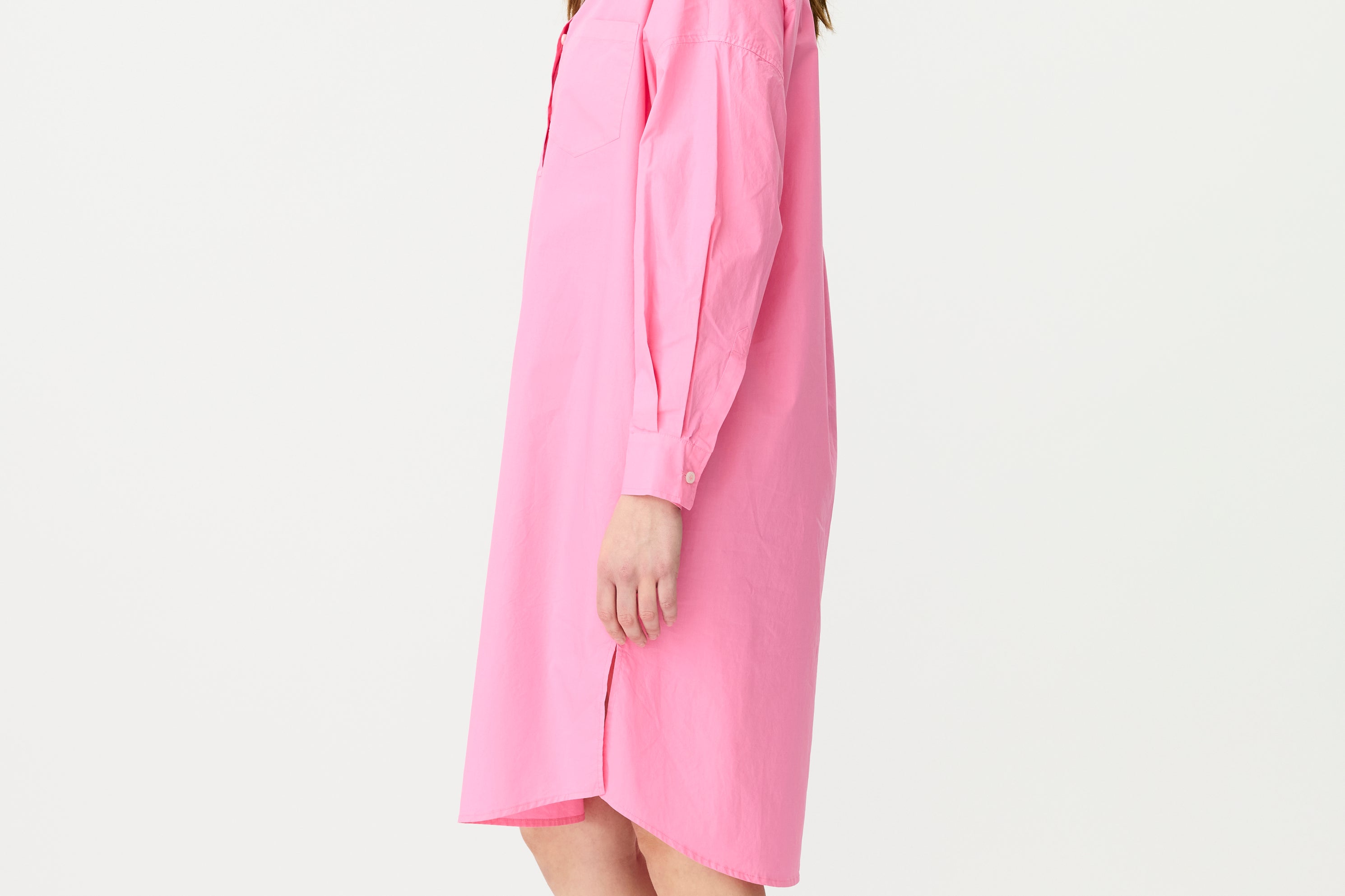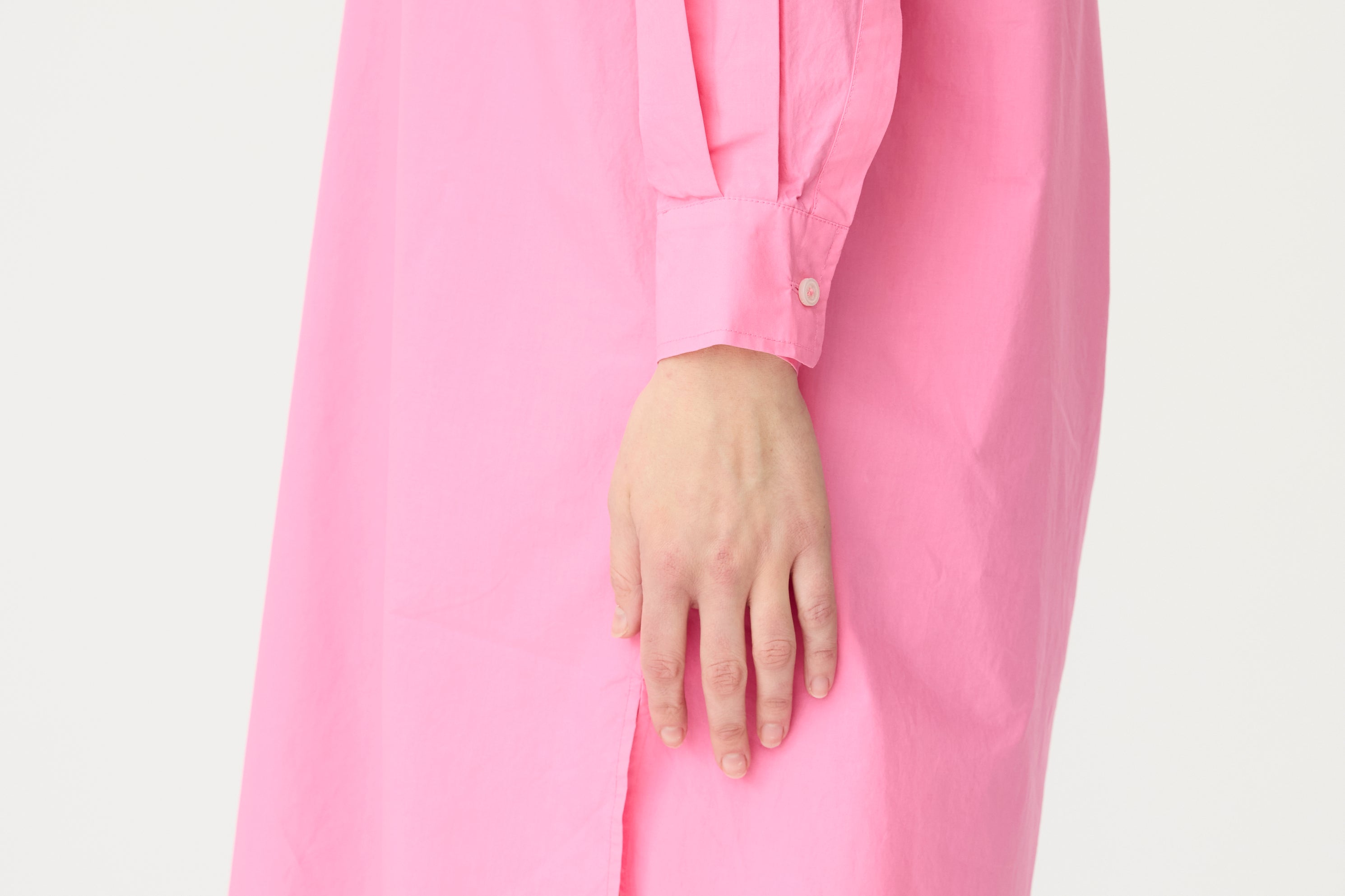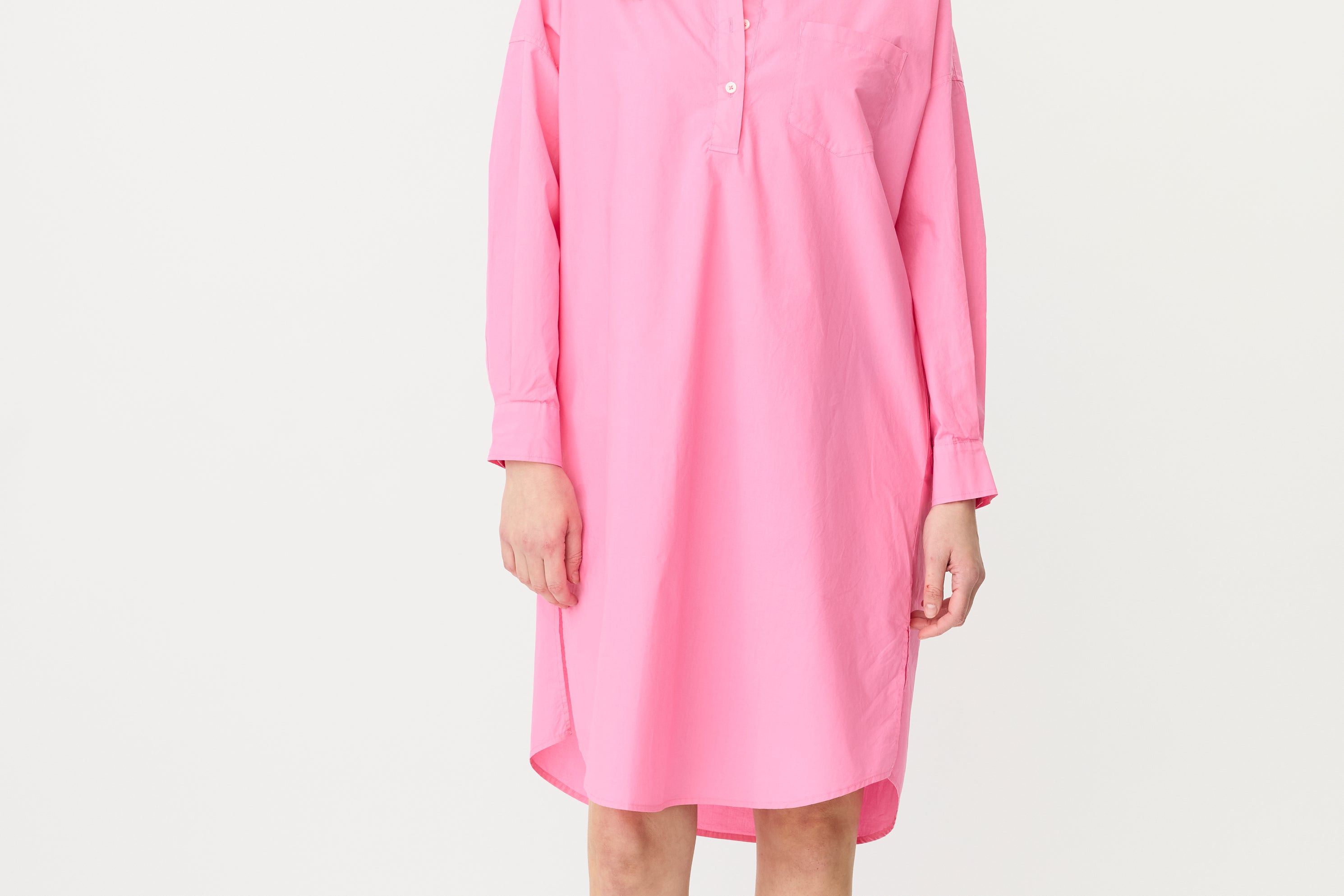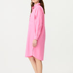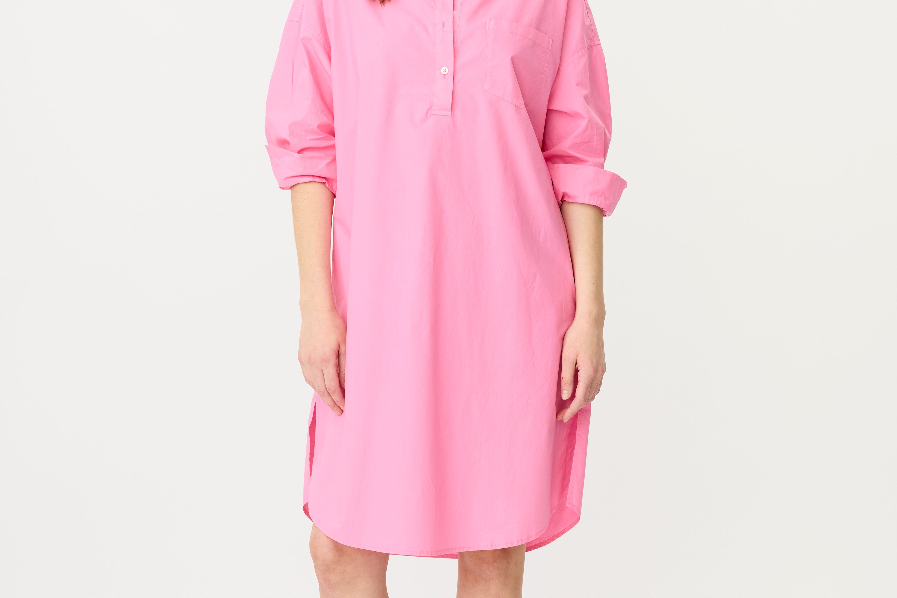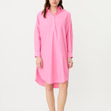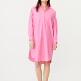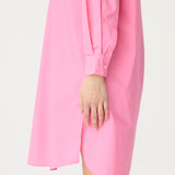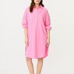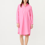 A fresh spin on a signature classic—the Chiara Half Placket Midi Dress blends relaxed tailoring with feminine ease. Crafted from 100% premium cotton and garment-dyed in our soft Candy pink, this midi silhouette features a clean half placket, drop shoulders, and a slightly loose fit.