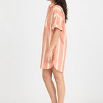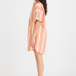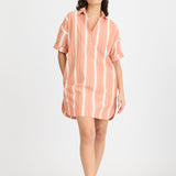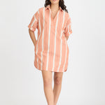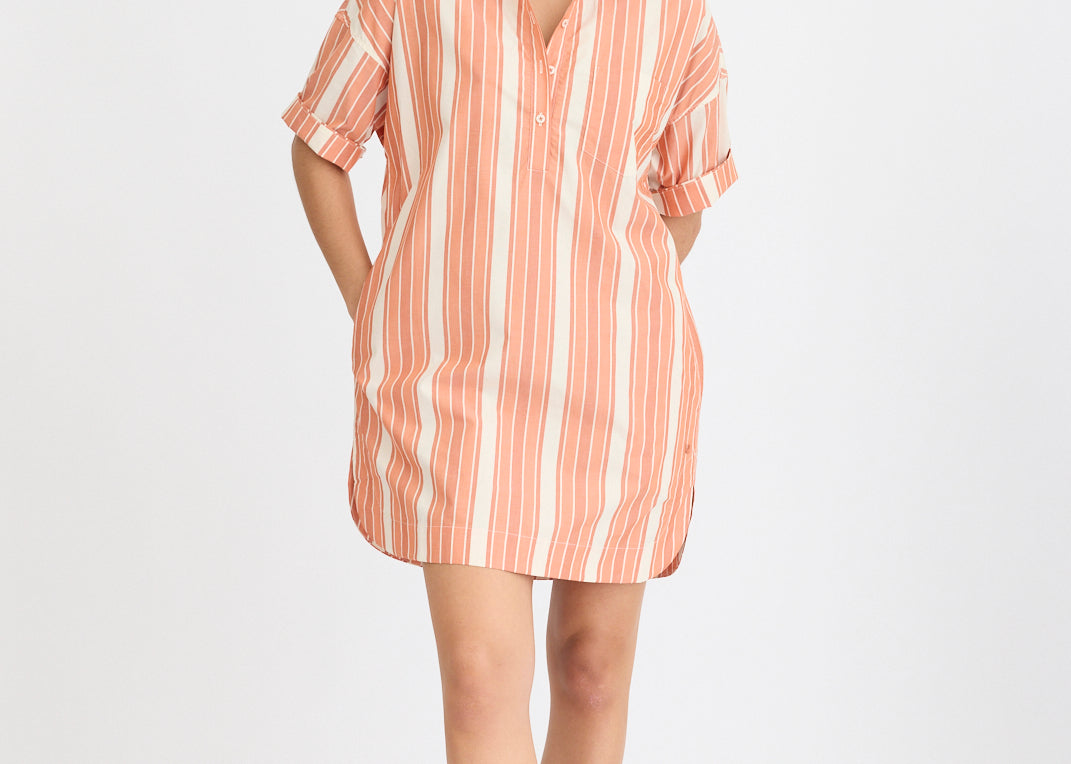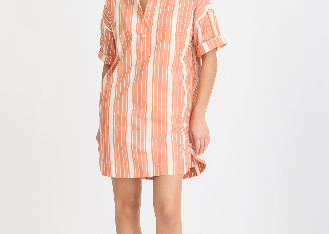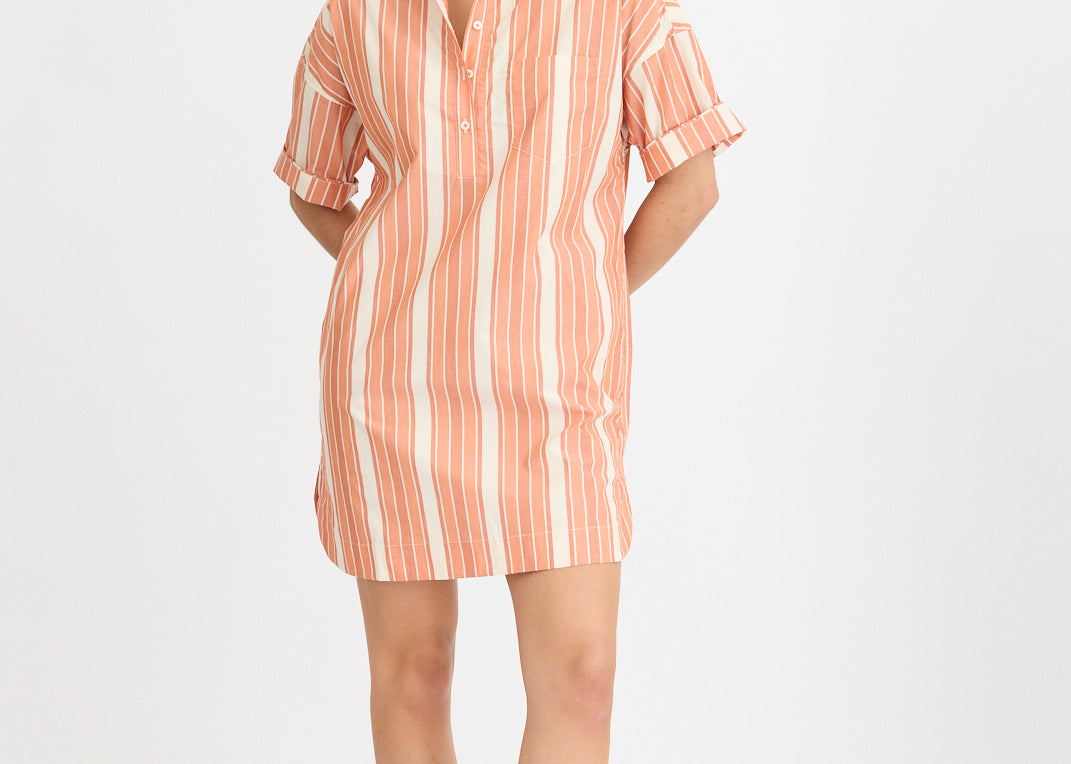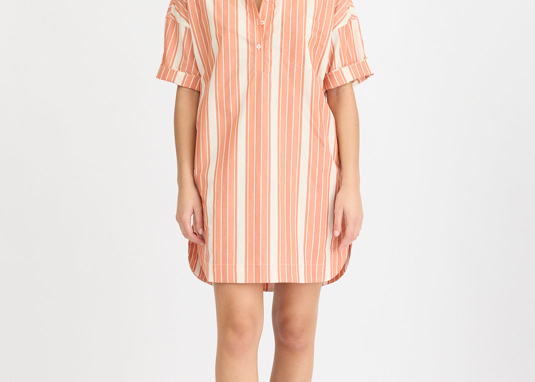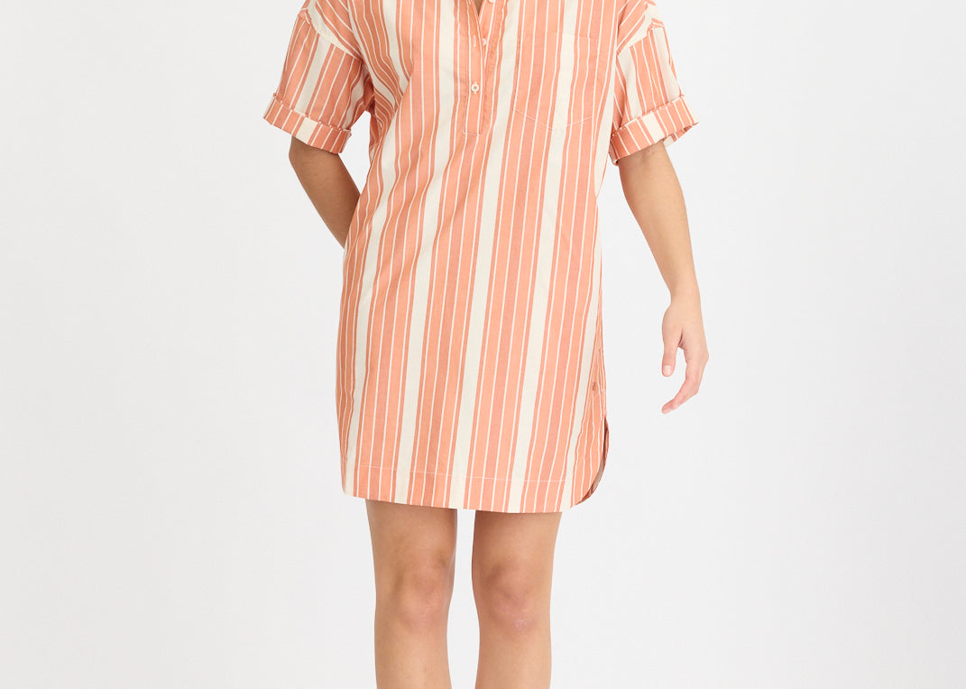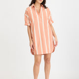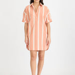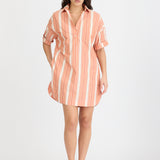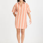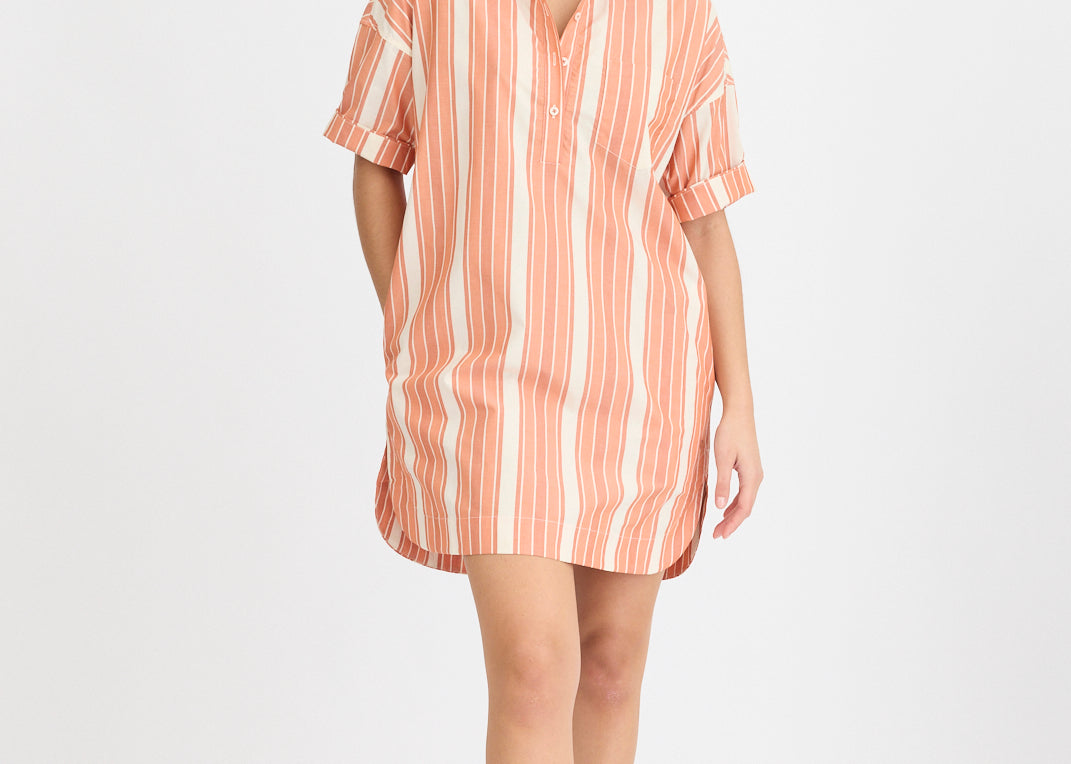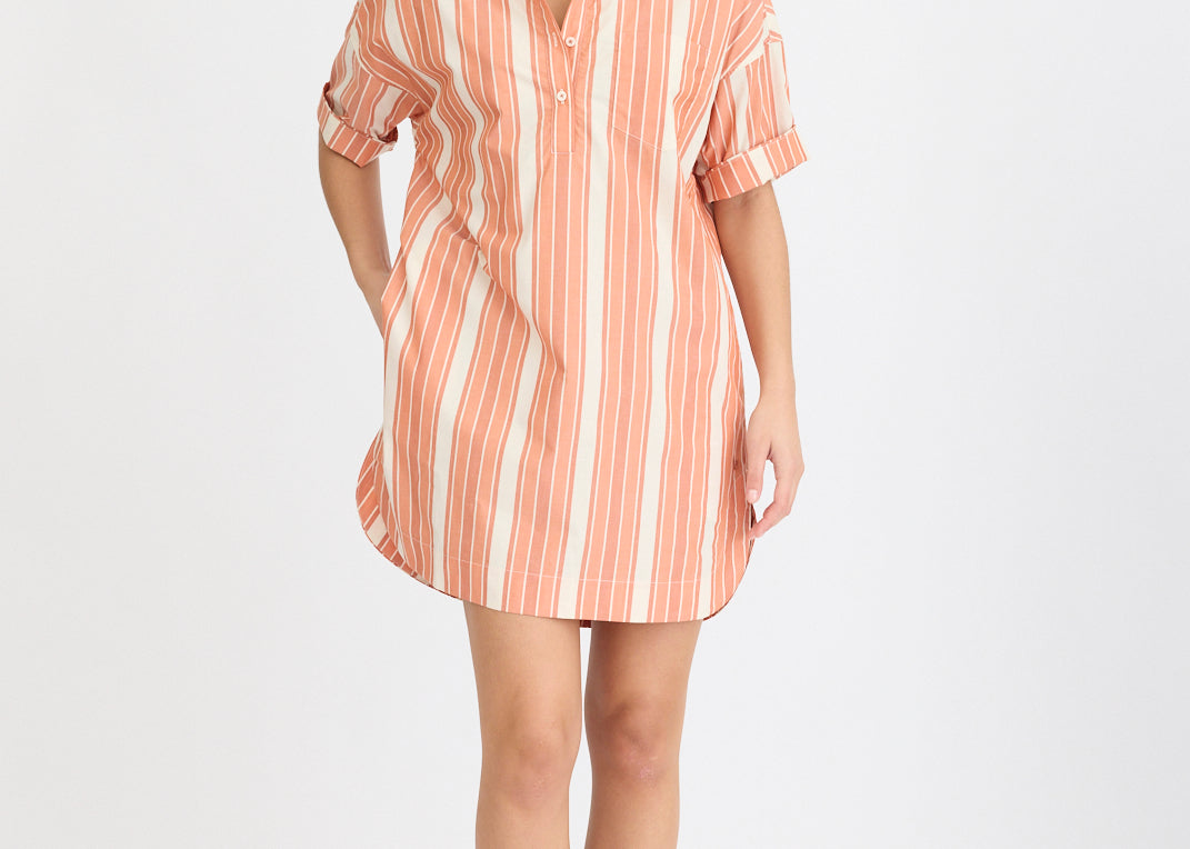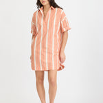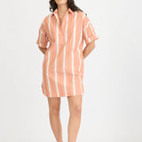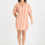 Chiara Half Placket Mini Dress - Burnt Orange Multi Stripe