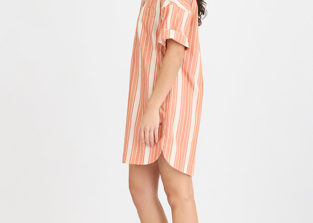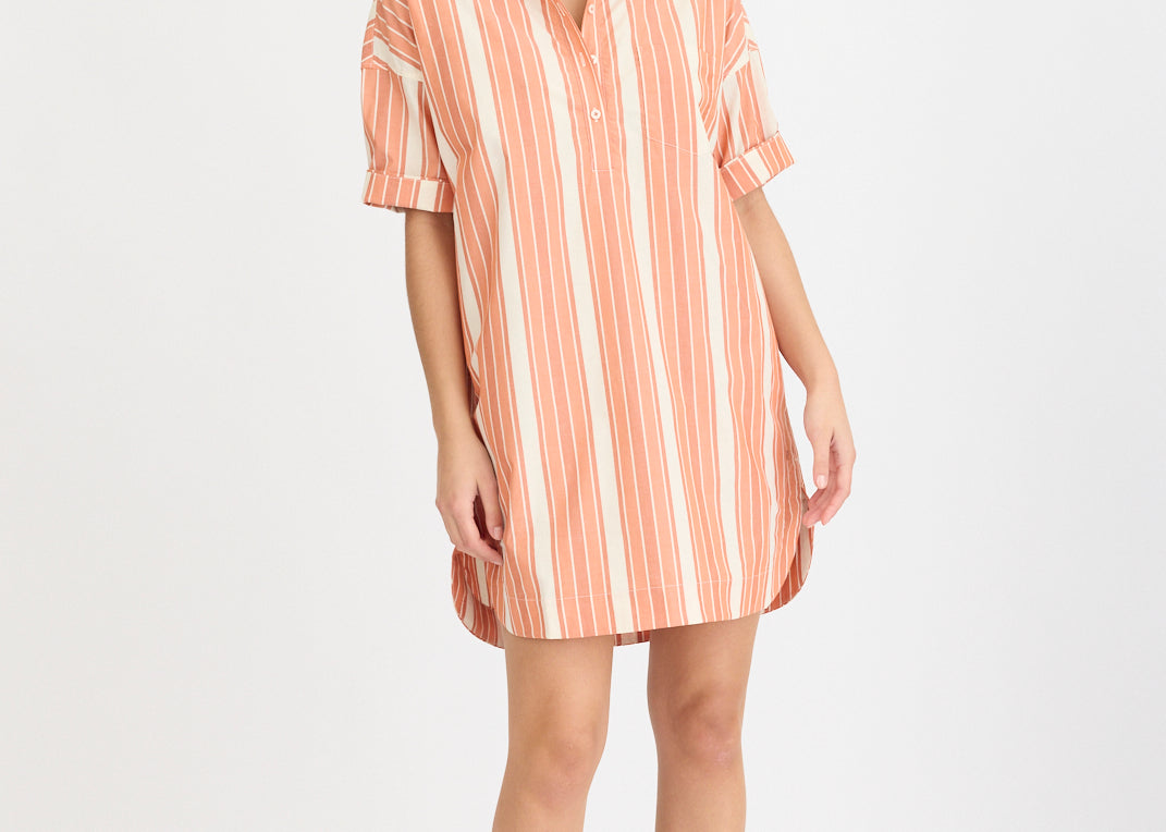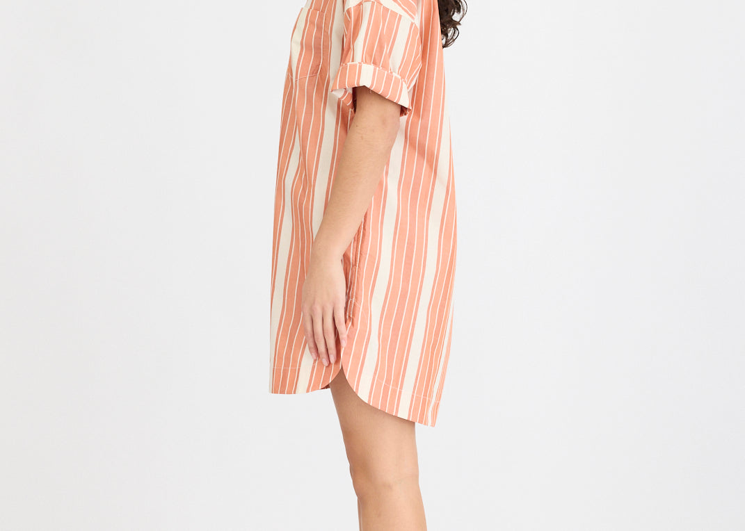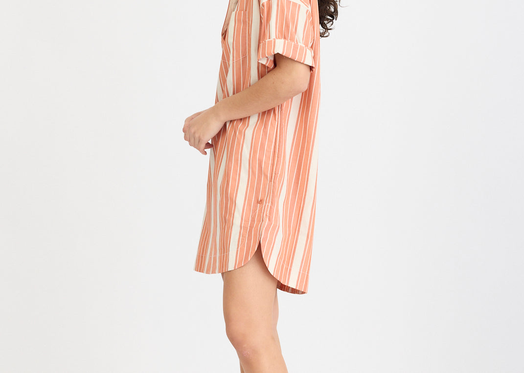 Sun-drenched days and slow afternoons call for the Chiara Mini Dress. Crafted from breathable 100% organic cotton, this relaxed silhouette features a half placket front, discreet side pockets, and our signature curved hem – all in a timeless yarn-dyed stripe.