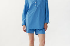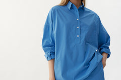 Introducing our Half Placket Chiara Shirt, a fresh take on our signature classic. Made from 100% premium cotton, this shirt offers a relaxed fit with a slightly loose silhouette and drop shoulders for a laid-back, yet polished look. The half placket adds a modern touch.