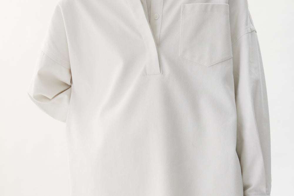 Introducing our Half Placket Chiara Shirt, a fresh take on our signature classic. Made from 100% premium cotton, this shirt offers a relaxed fit with a slightly loose silhouette and drop shoulders for a laid-back, yet polished look. The half placket adds a modern touch.