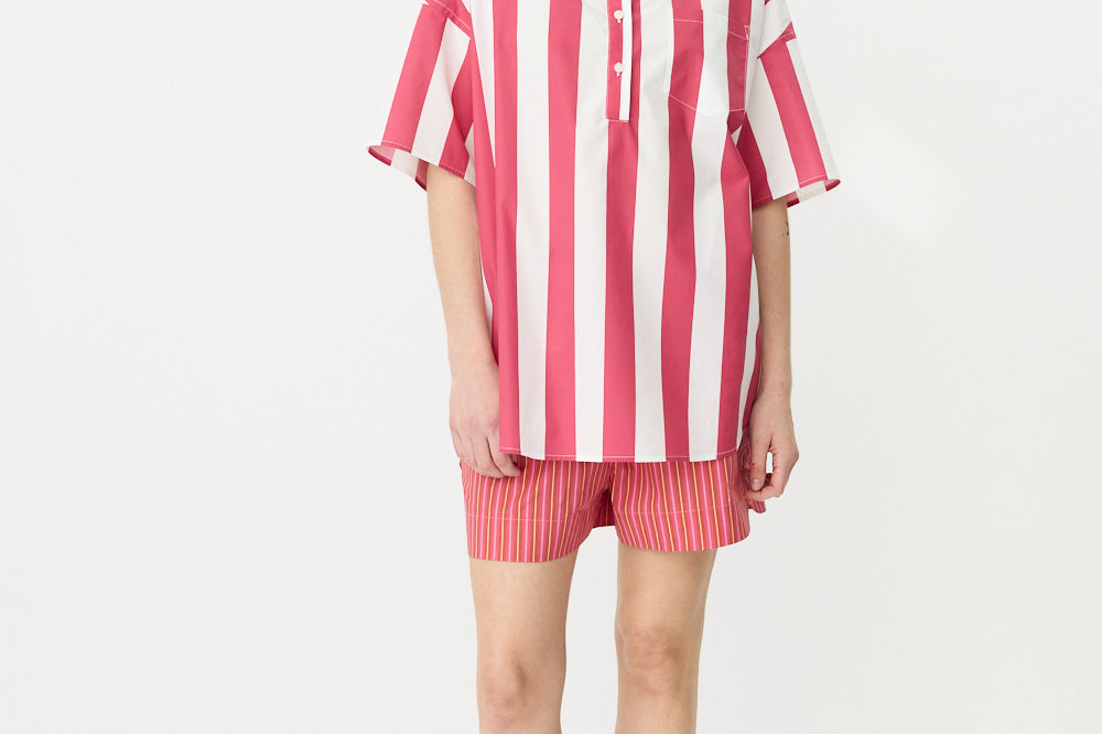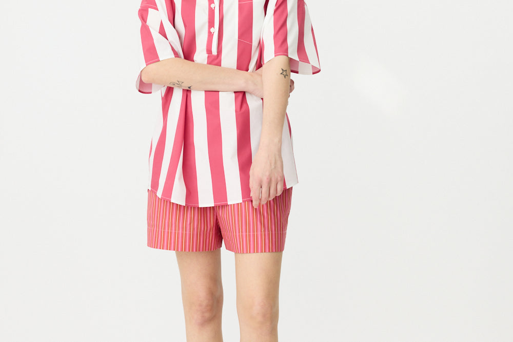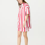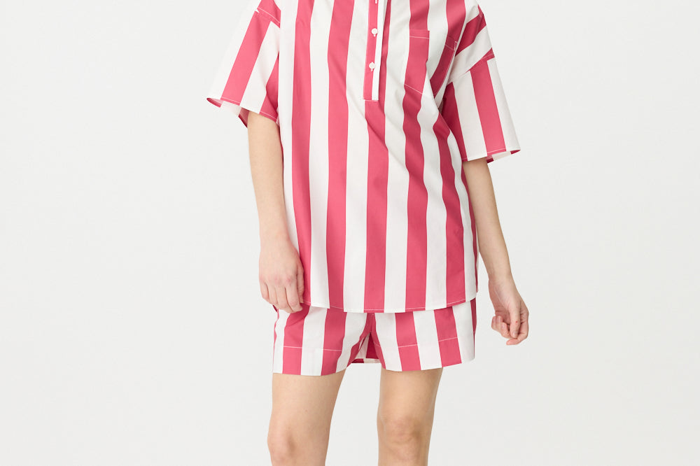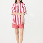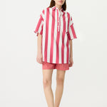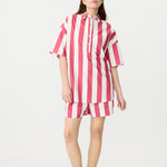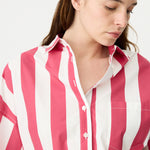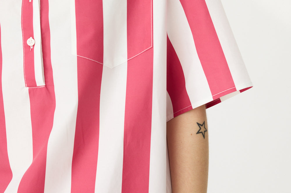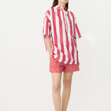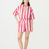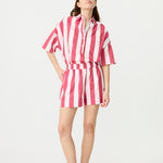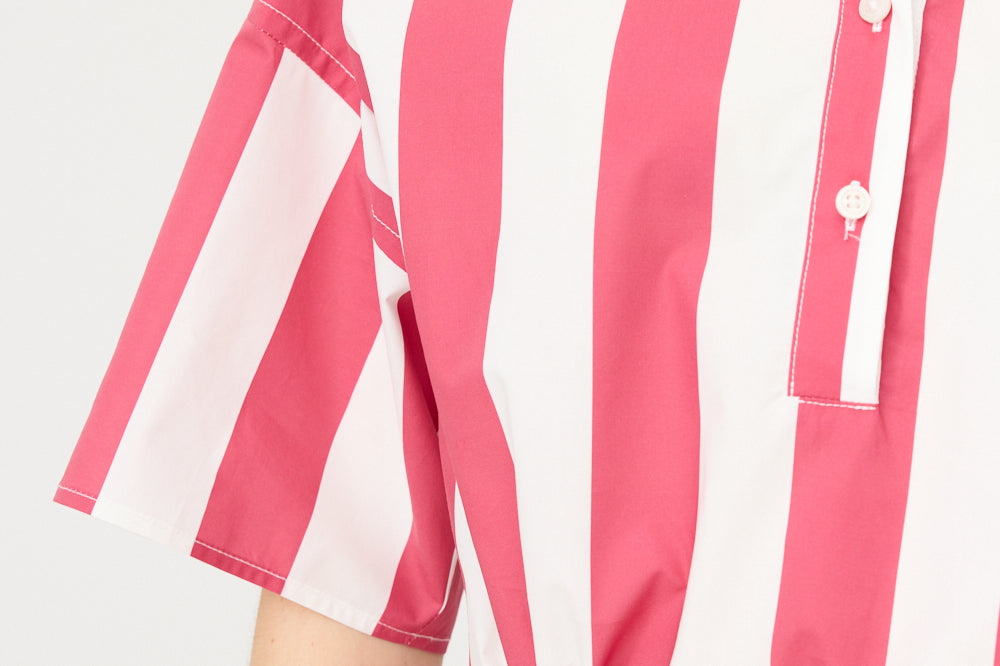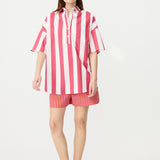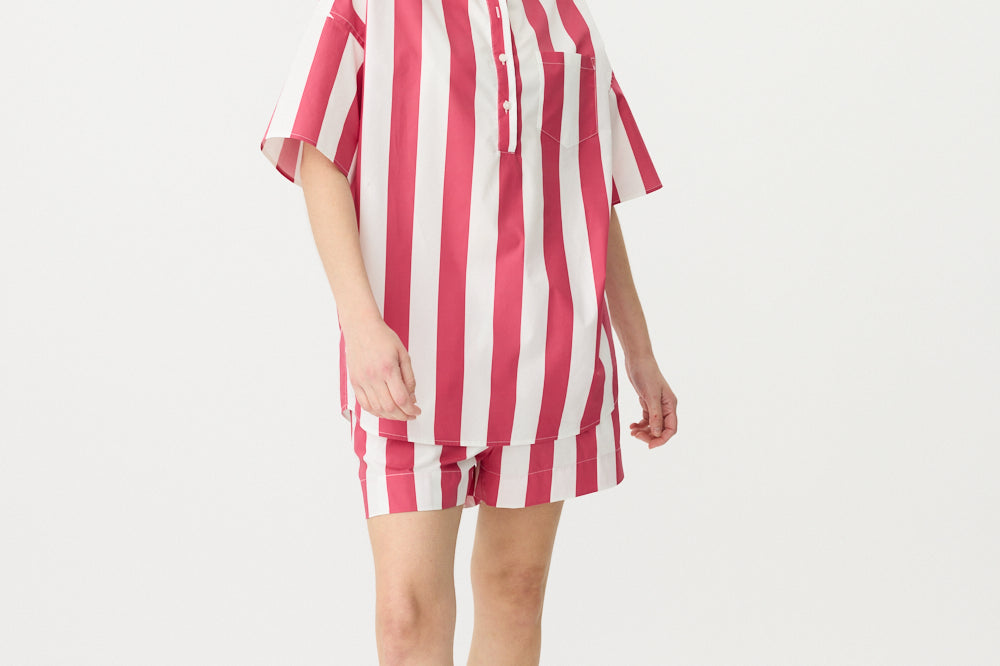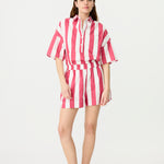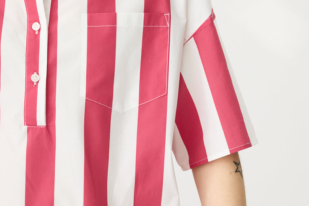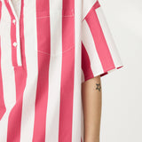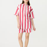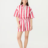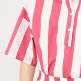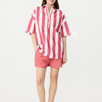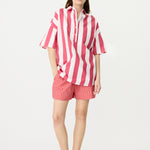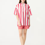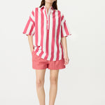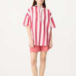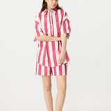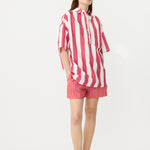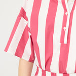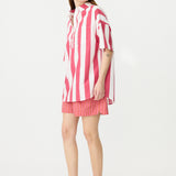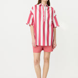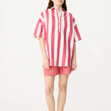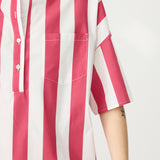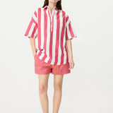Chiara Half Placket Short Sleeve Shirt - Raspberry/White Stripe