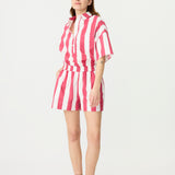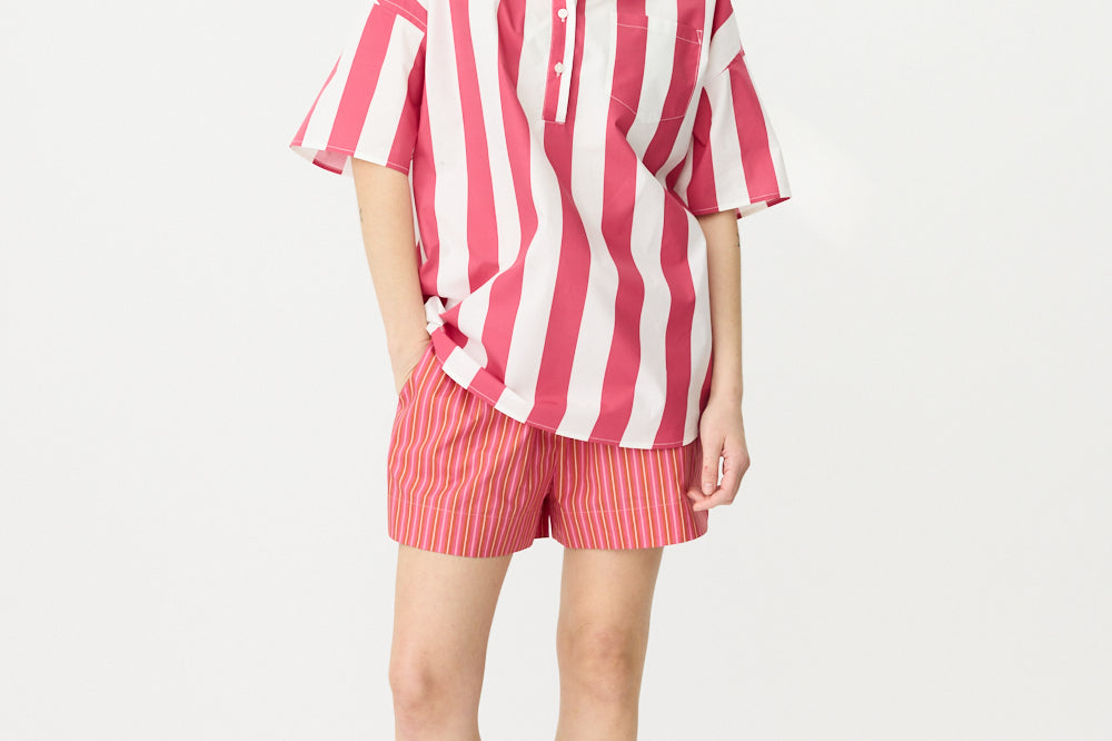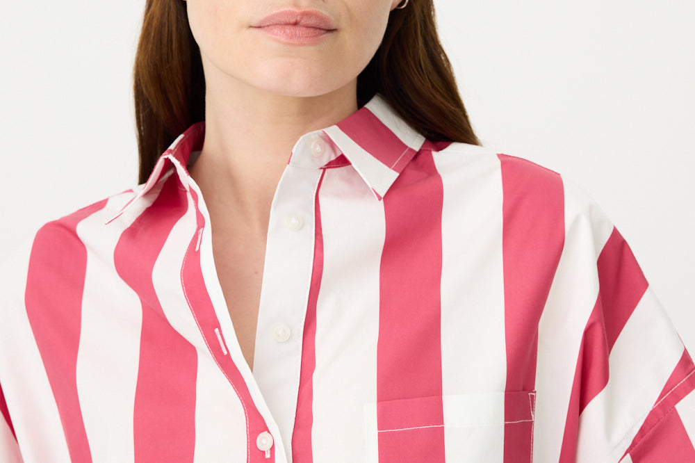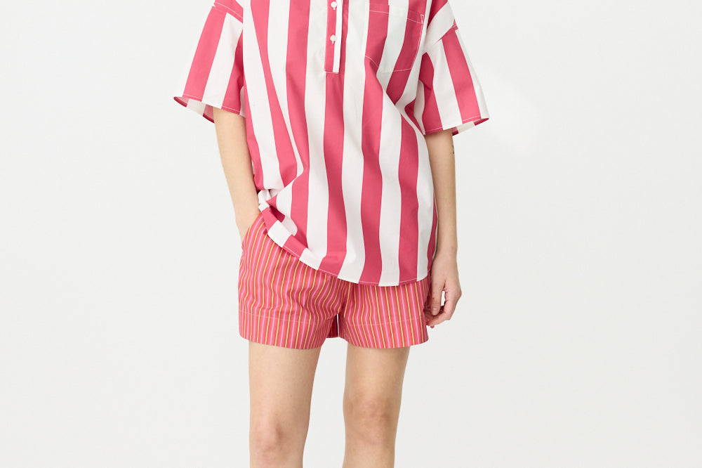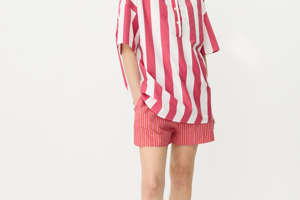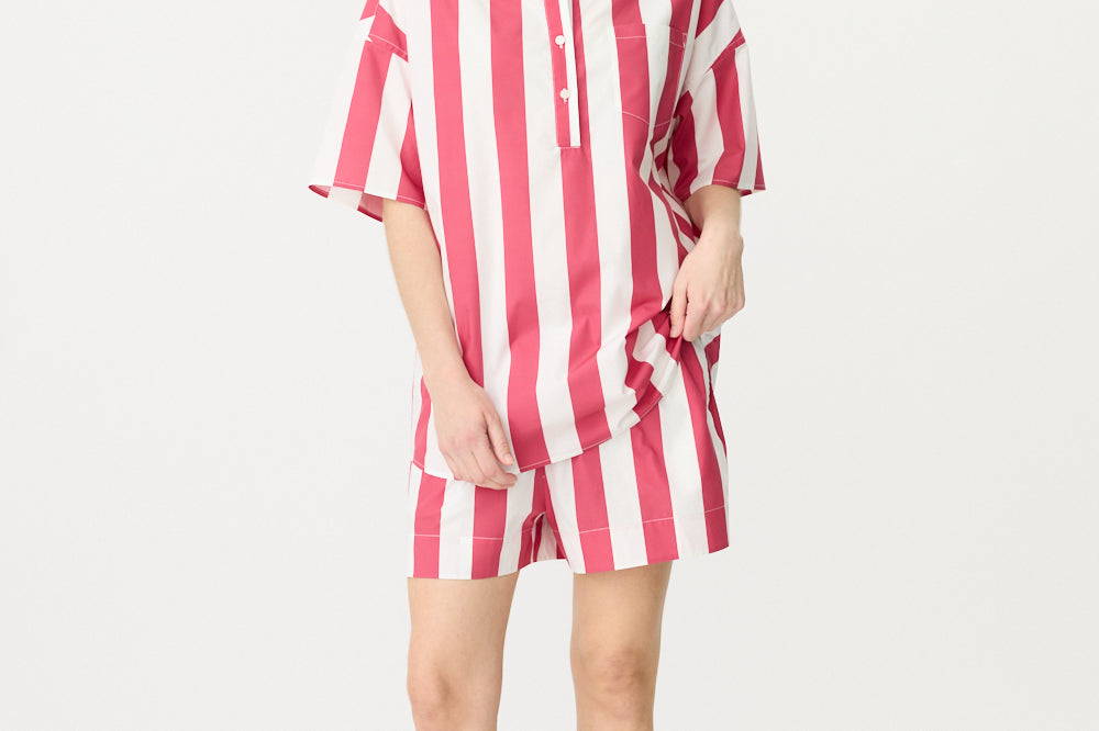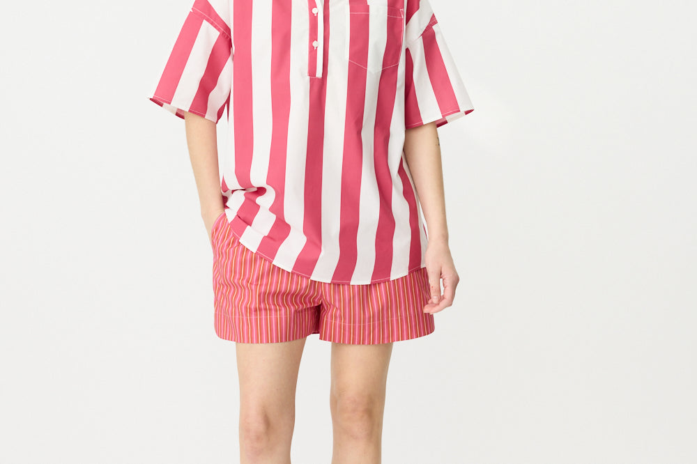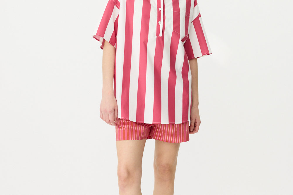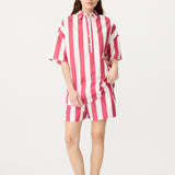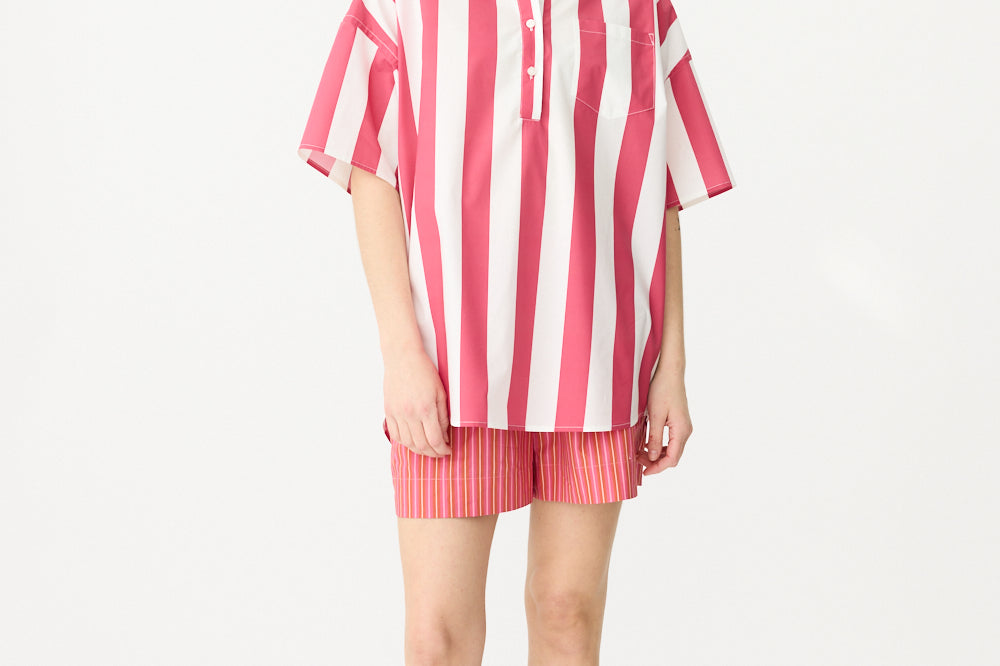 Chiara Half Placket Short Sleeve Shirt - Raspberry/White Stripe