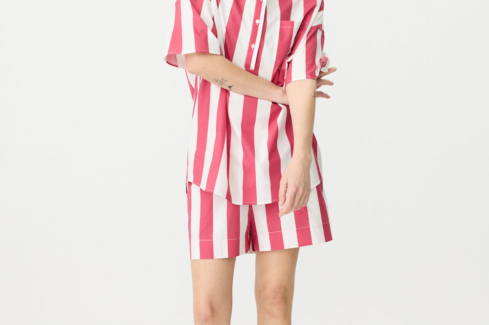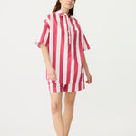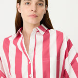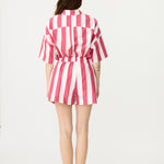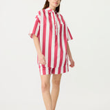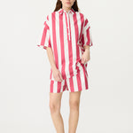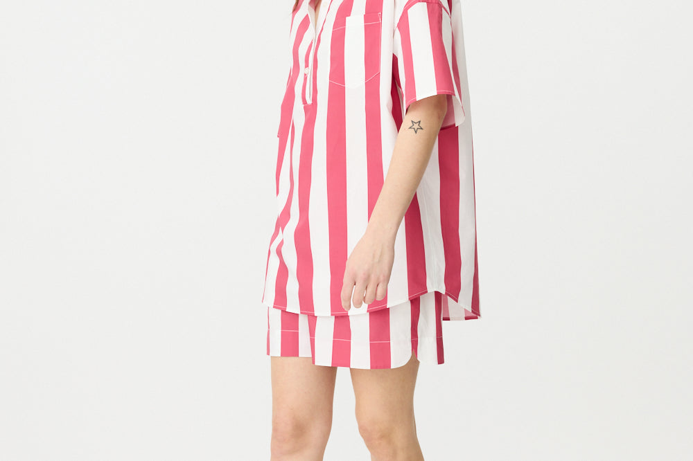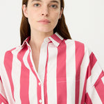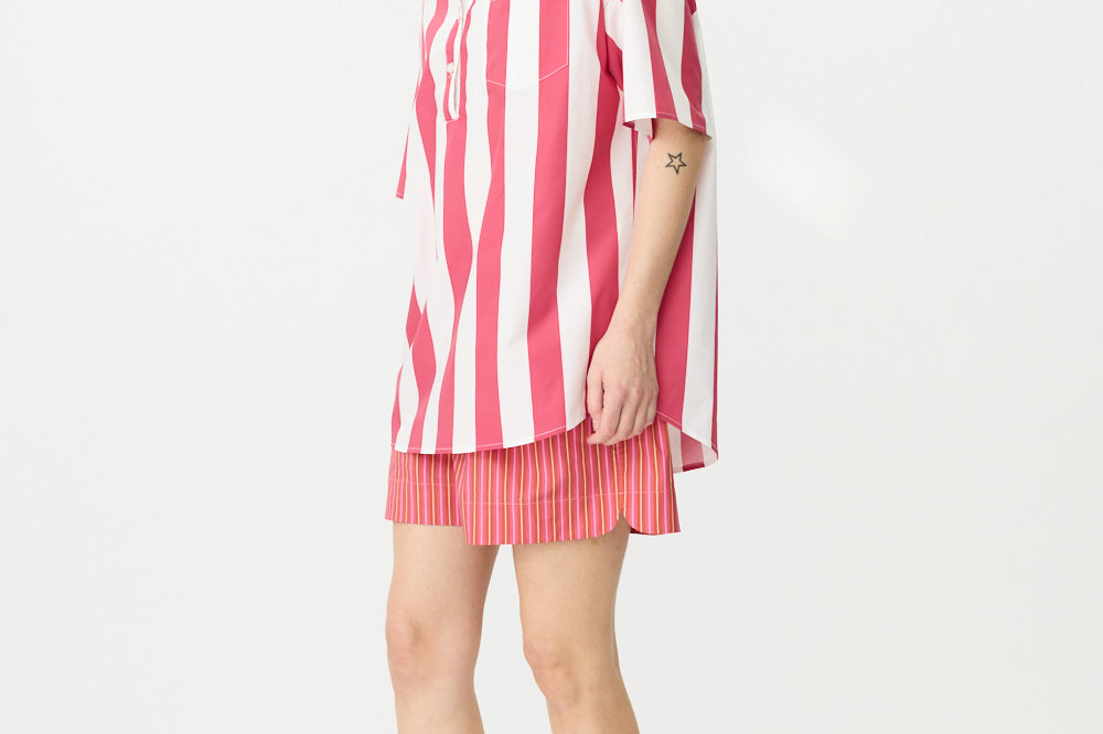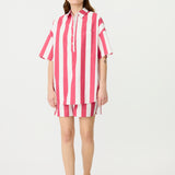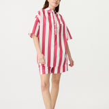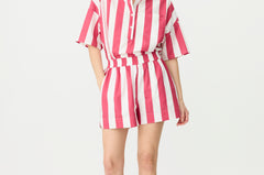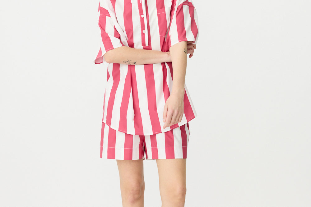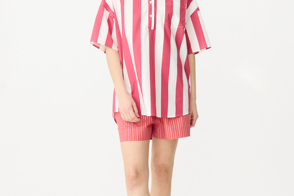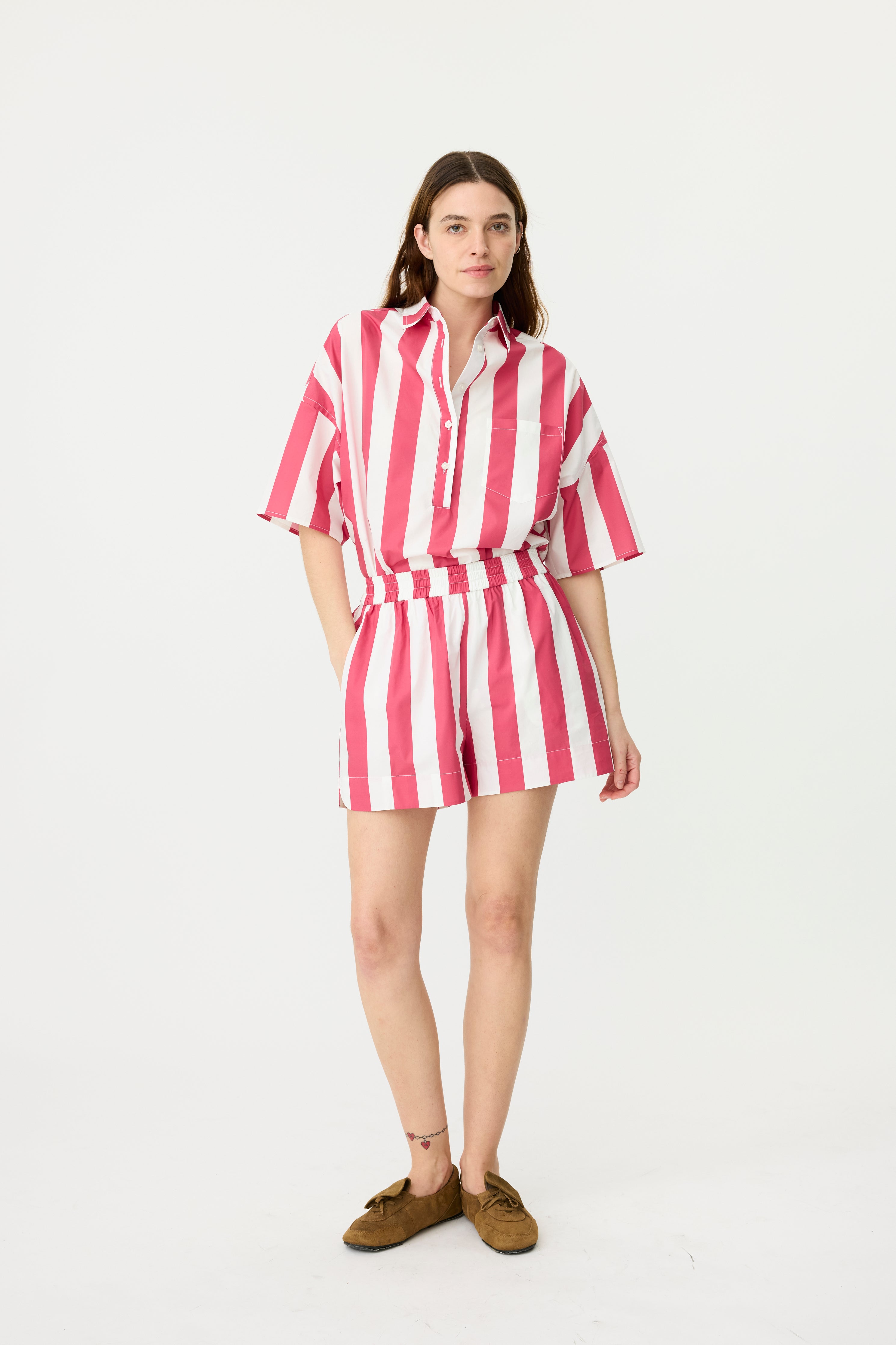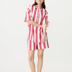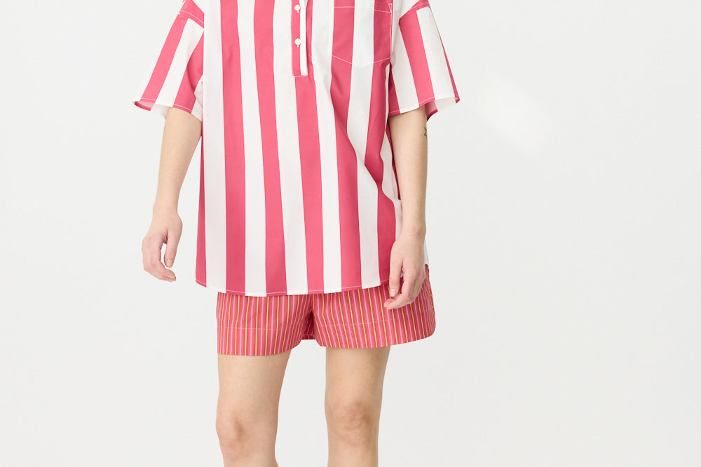 Chiara Half Placket Short Sleeve Shirt - Raspberry/White Stripe