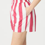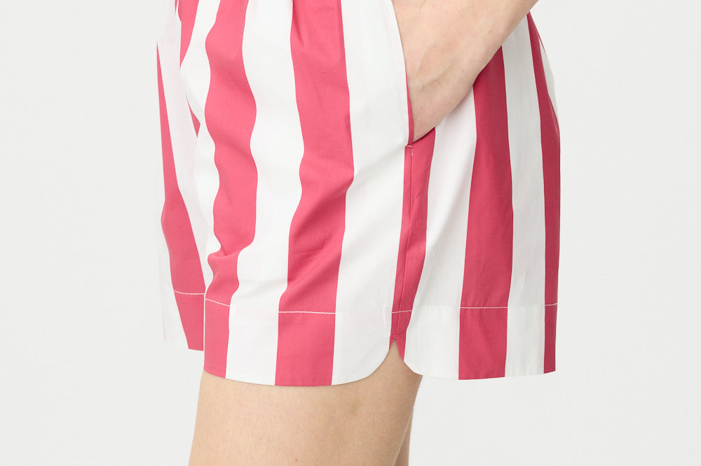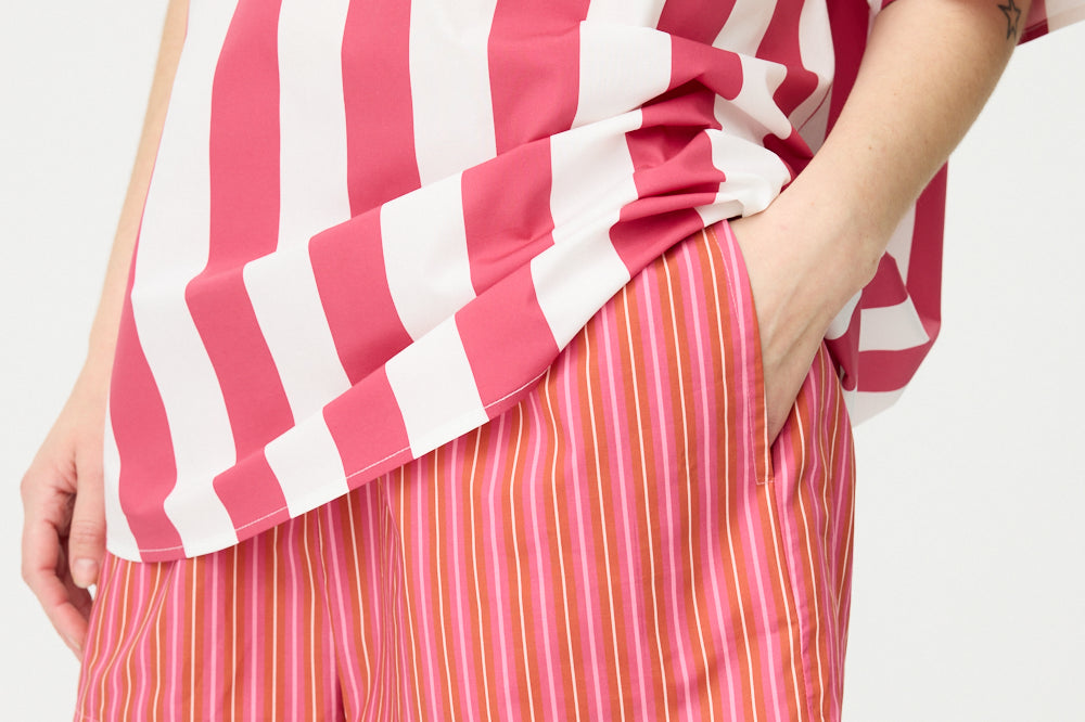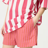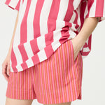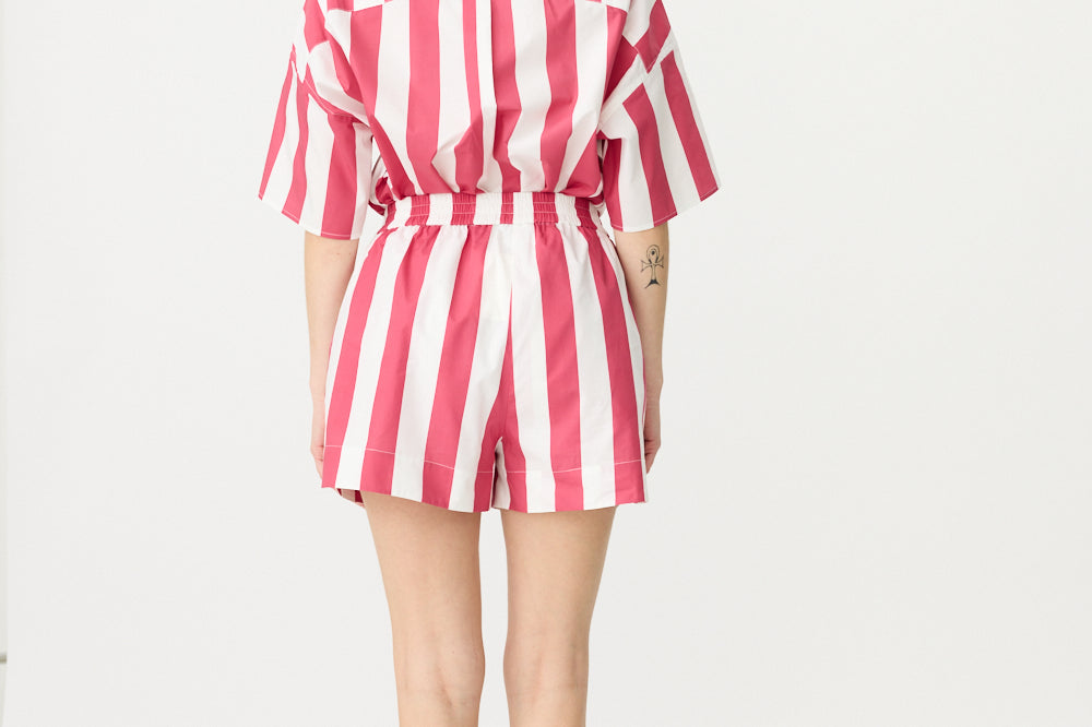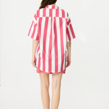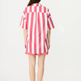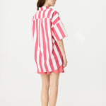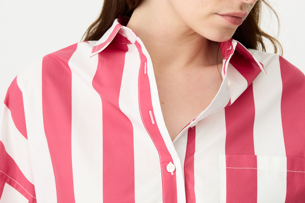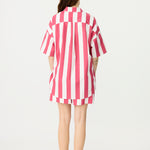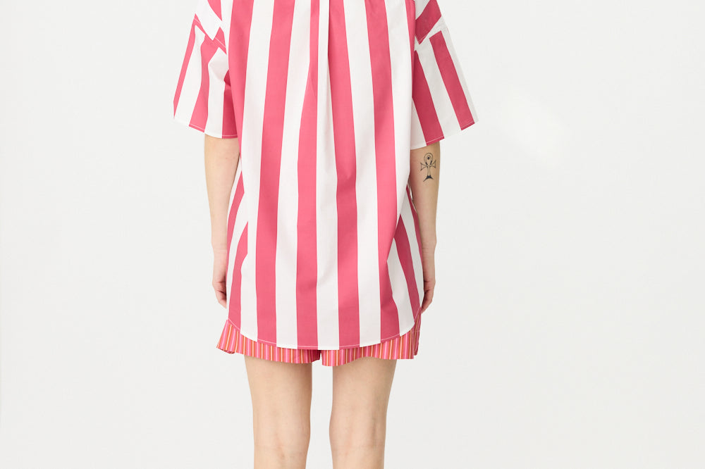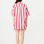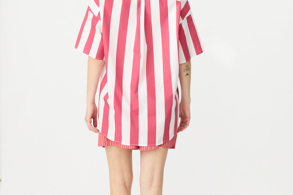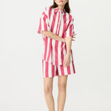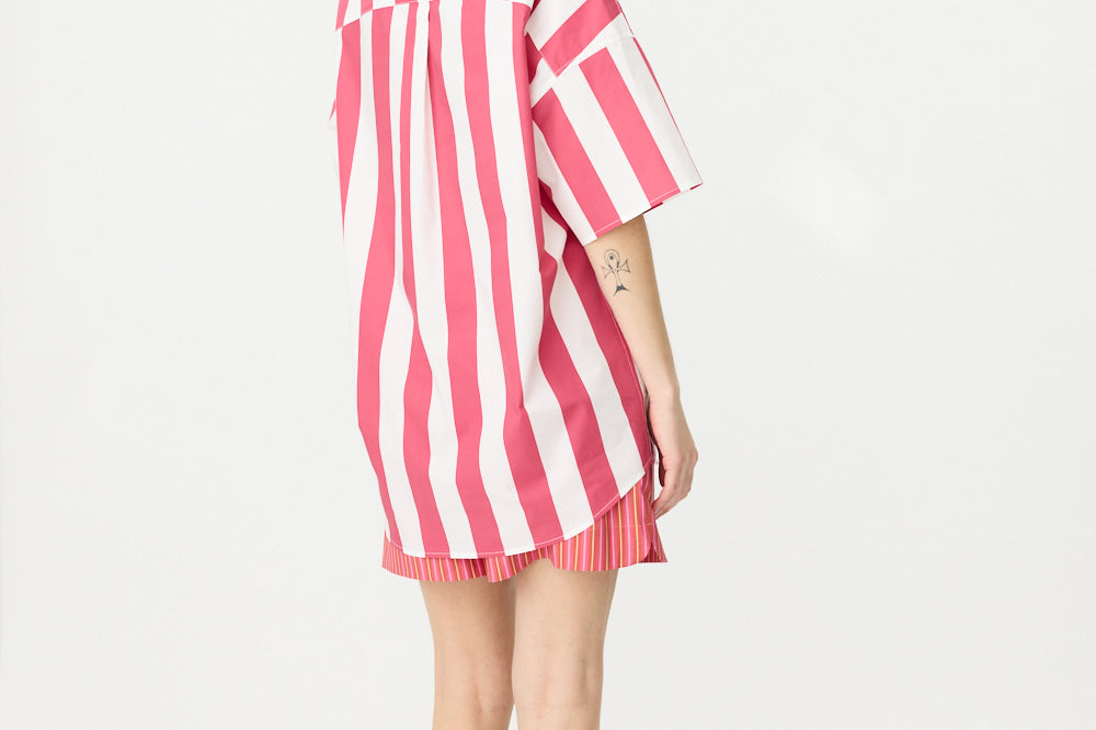 Chiara Half Placket Short Sleeve Shirt - Raspberry/White Stripe