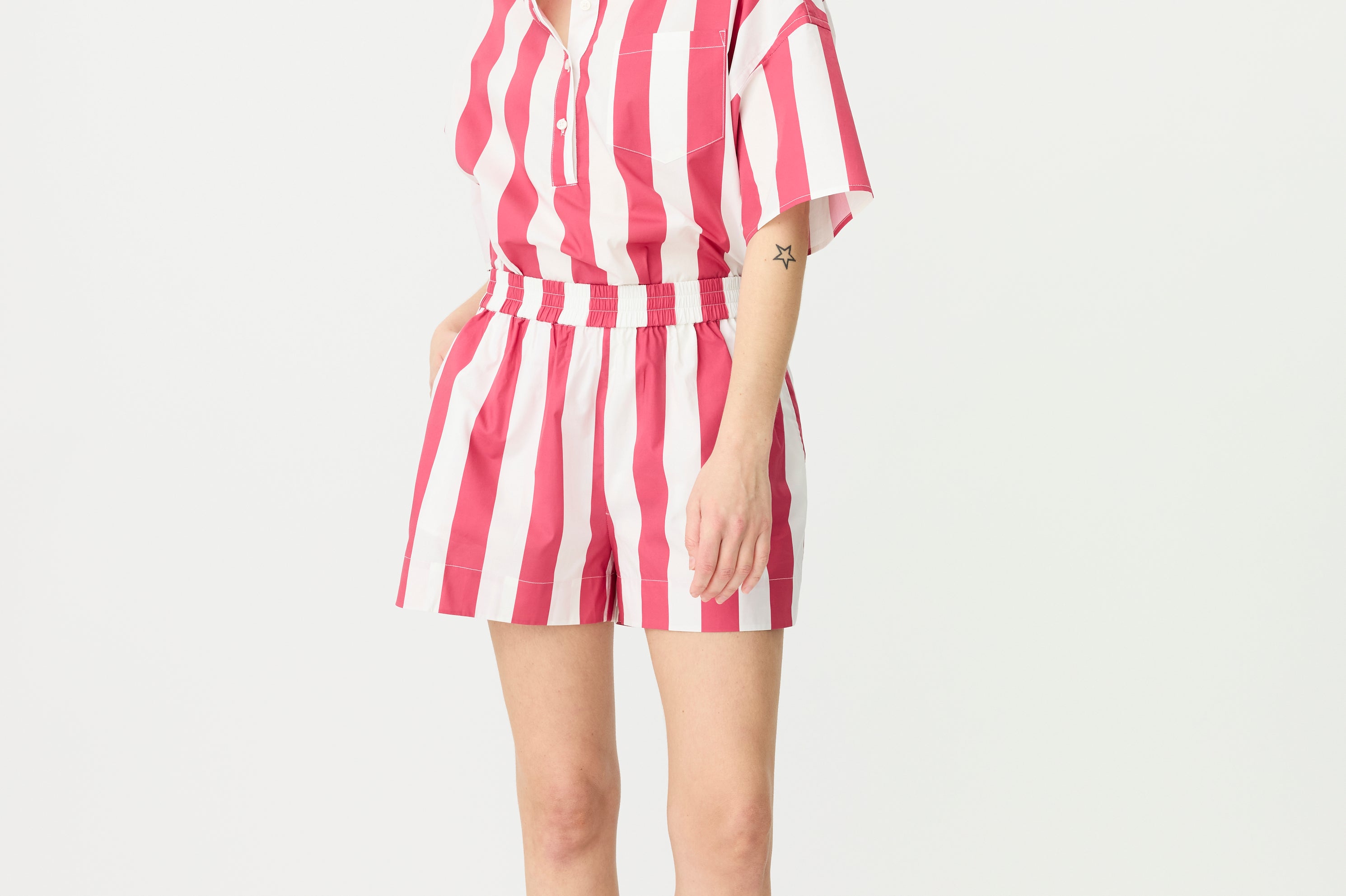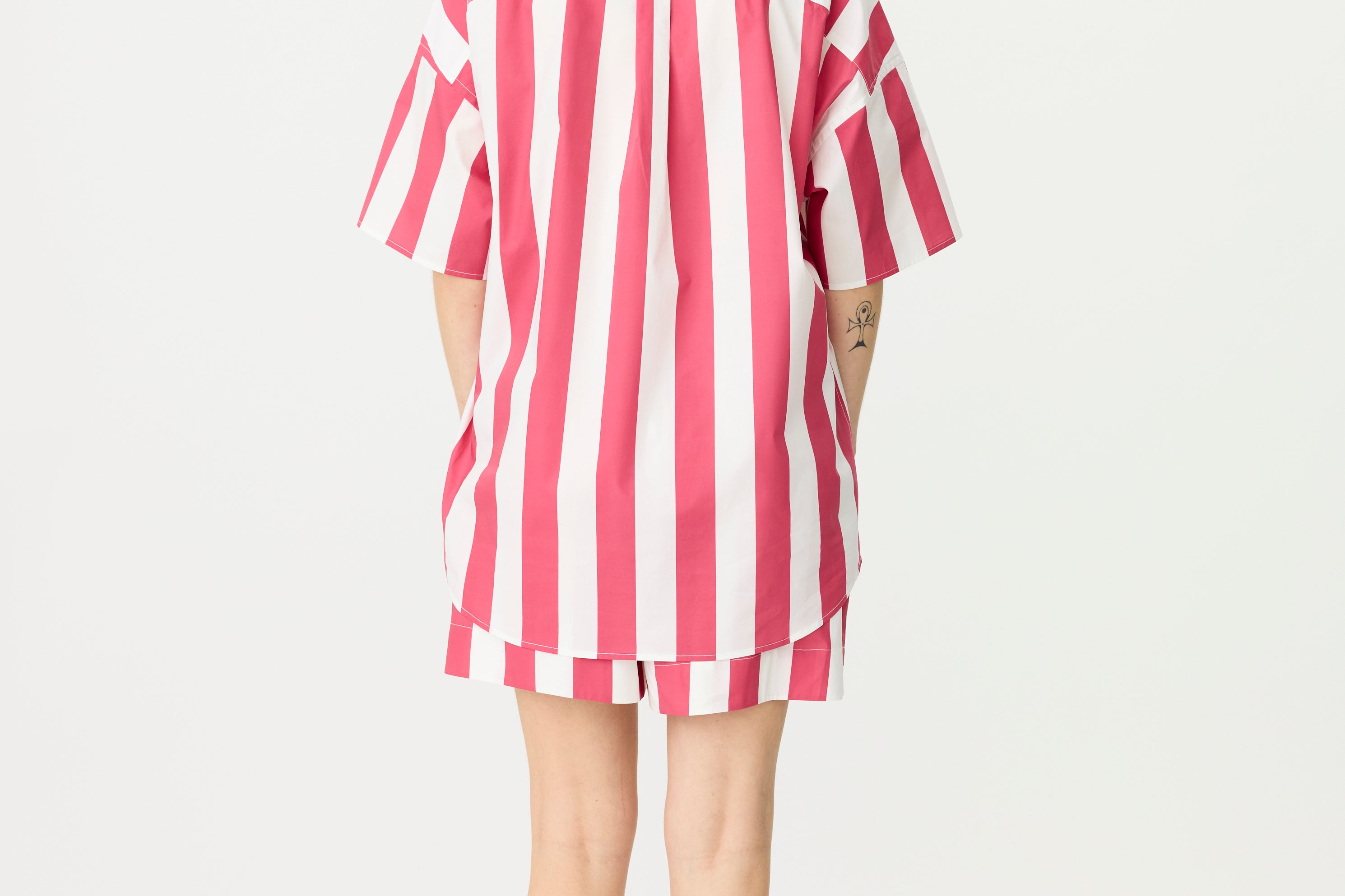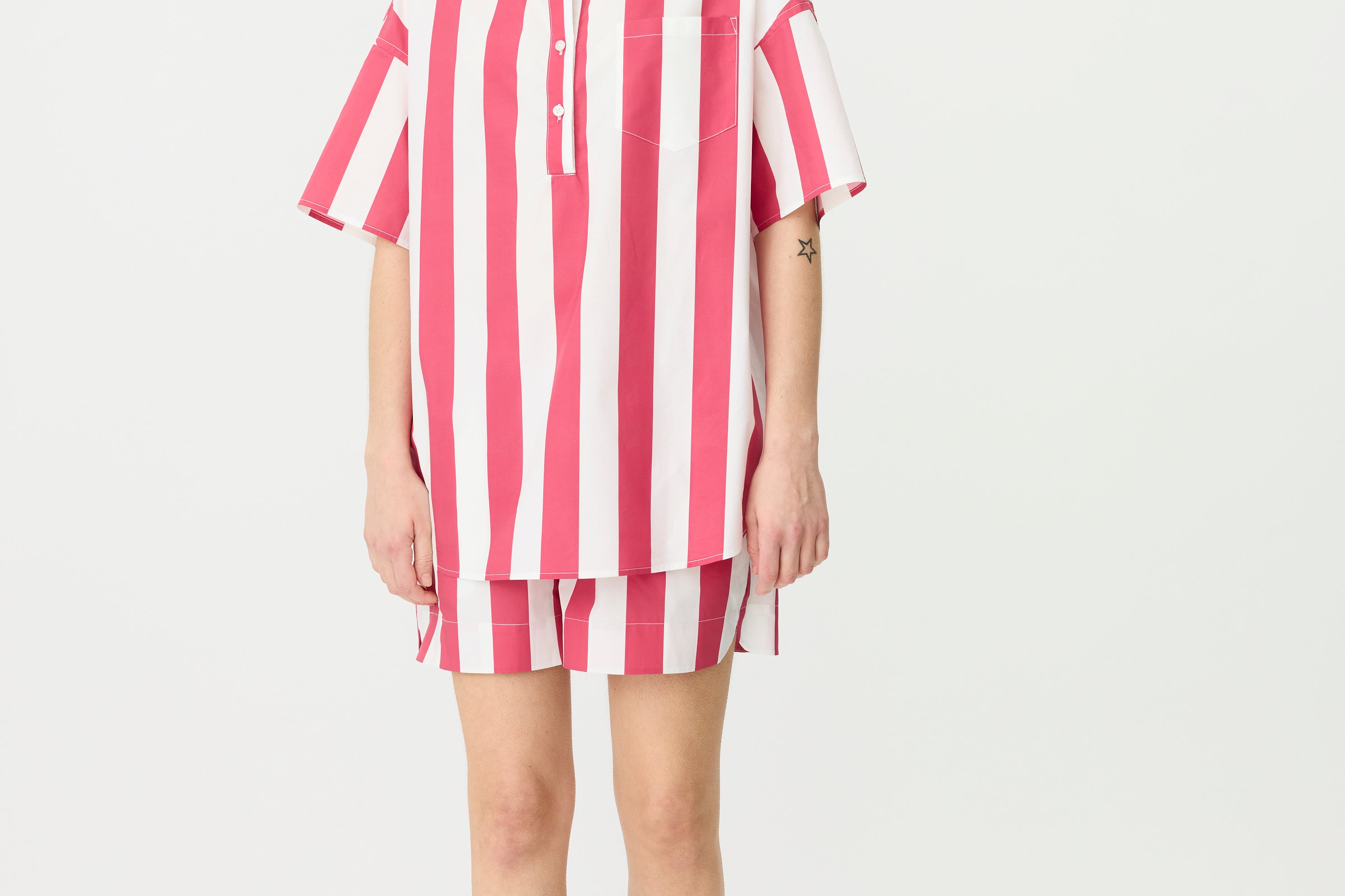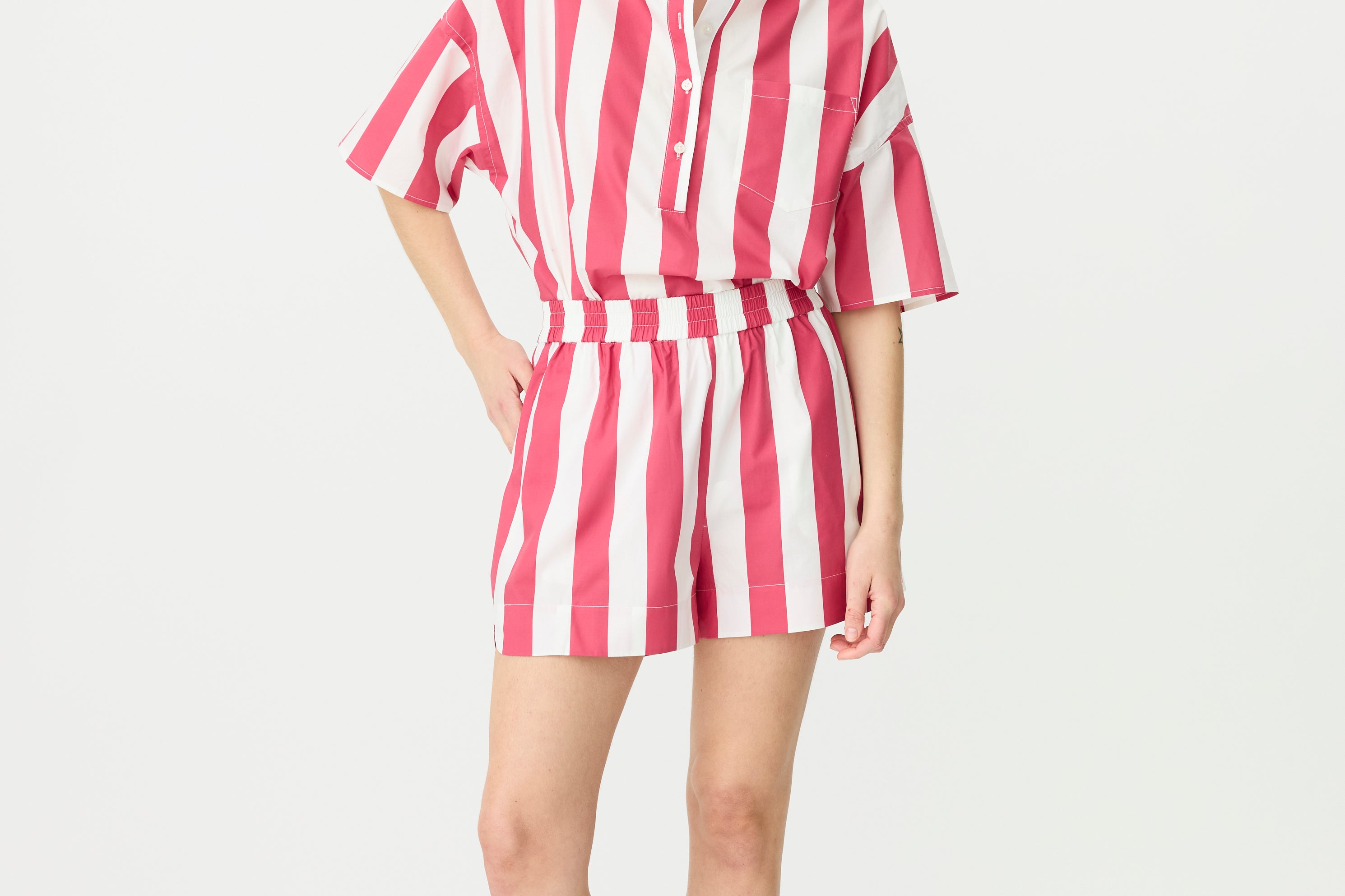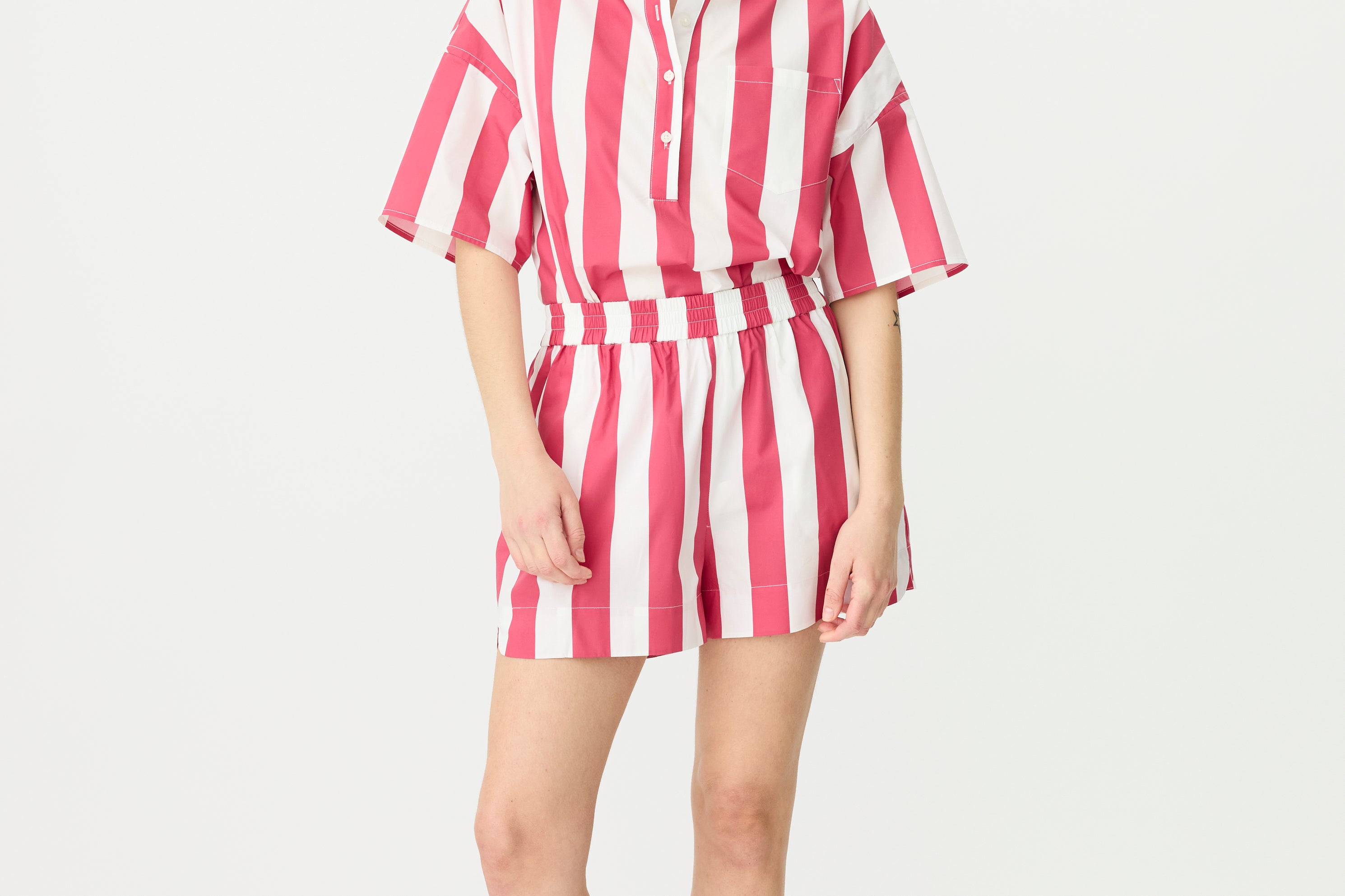 Chiara Half Placket Short Sleeve Shirt - Raspberry/White Stripe
