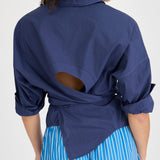 All the effortless ease of our signature Chiara Shirt, with an unexpected twist. The Chiara Backless Shirt features the same crisp silhouette and lightweight cotton poplin you know and love, now updated with an open back and adjustable tie detail. Designed to be styled your way, layered, tucked, or worn solo, it’s a statement piece that still feels classic.