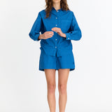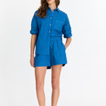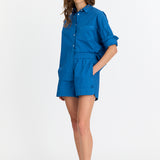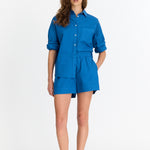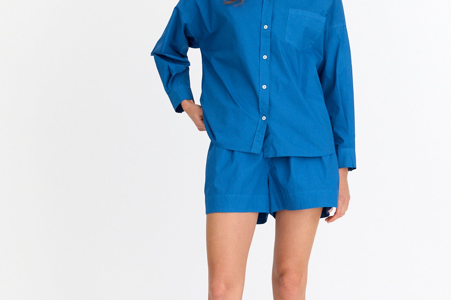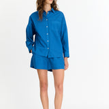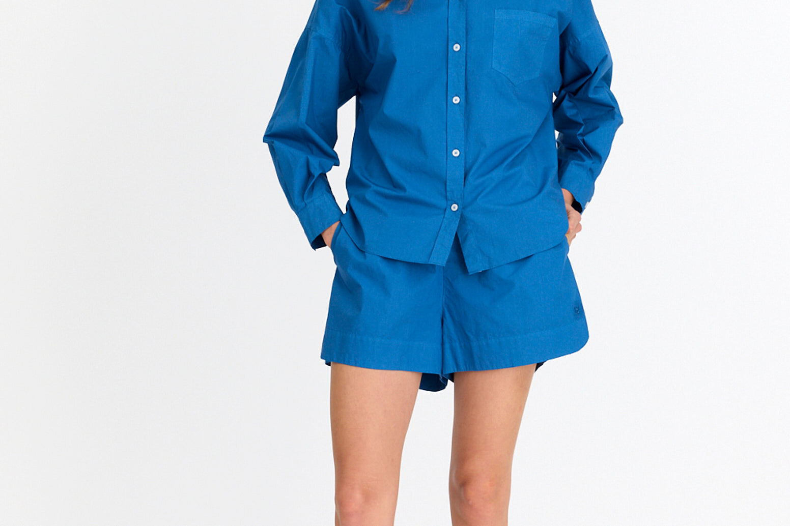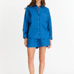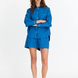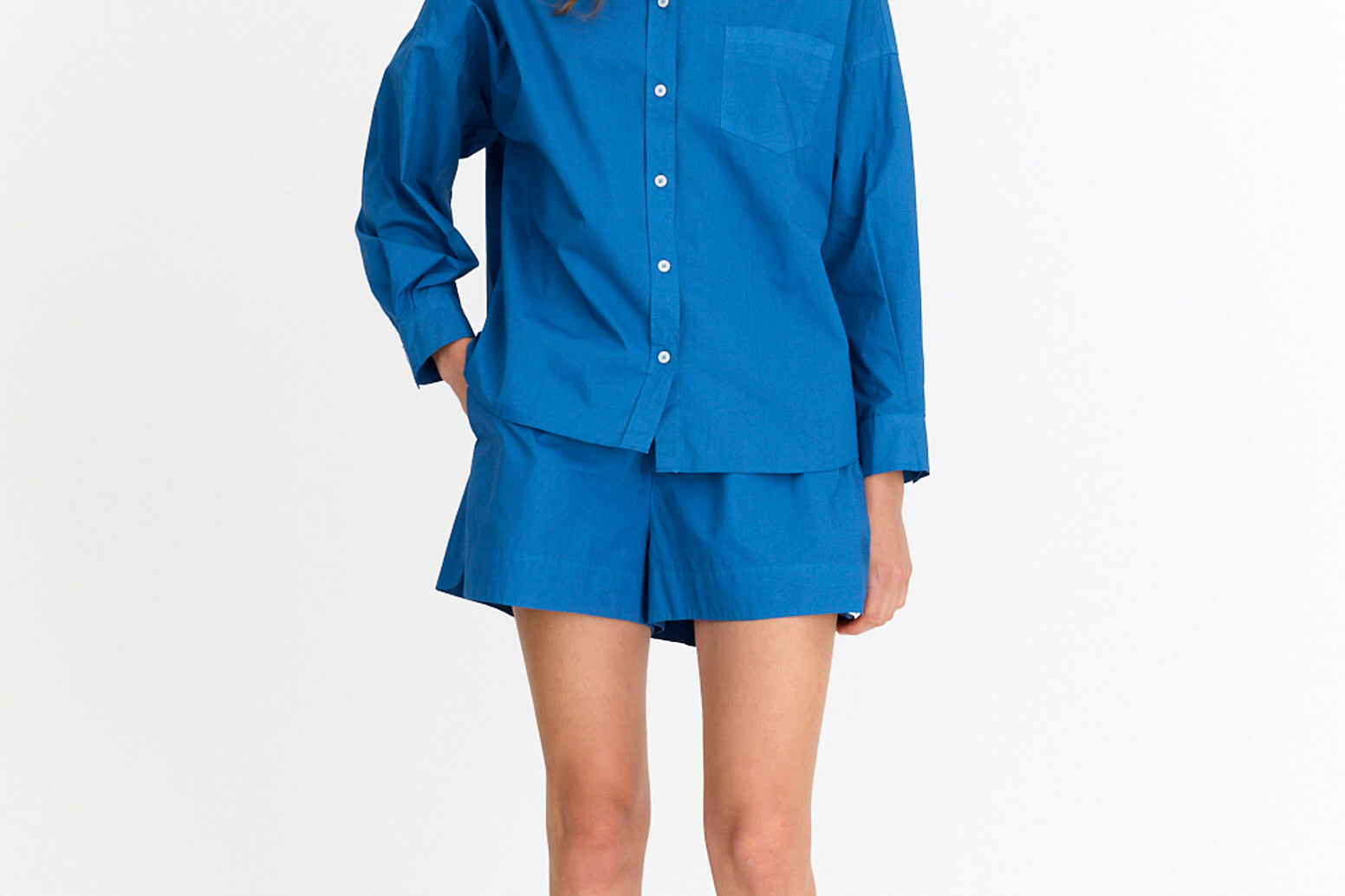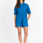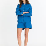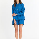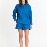 Our Signature Classic button-up shirt featuring customized stripe detail. Crafted from 100% yarn-dyed cotton, this shirt exudes both style and comfort. Features a chest pocket and our signature drop shoulders, creating a slightly loose silhouette that is perfect for layering under cozy knitwear or pairing with your favourite Chiara shorts.