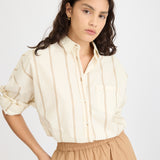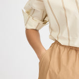 Chiara Long Sleeve Shirt Double Pinstripe - Toffee/Ivory