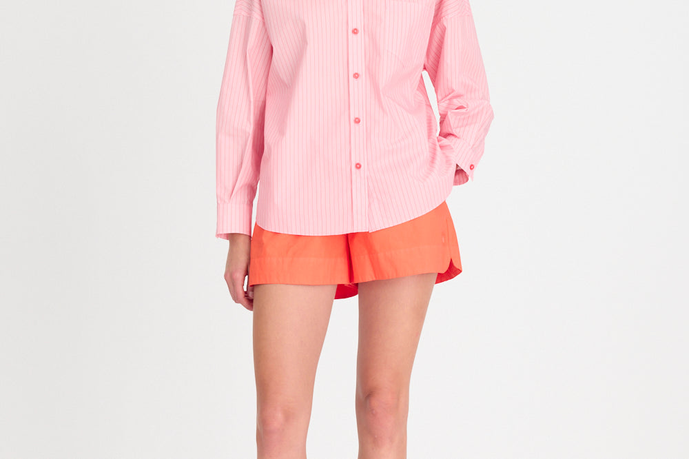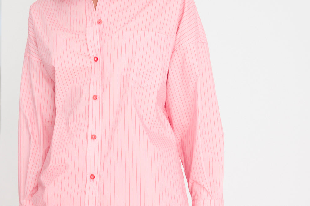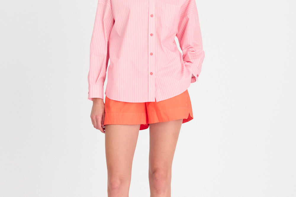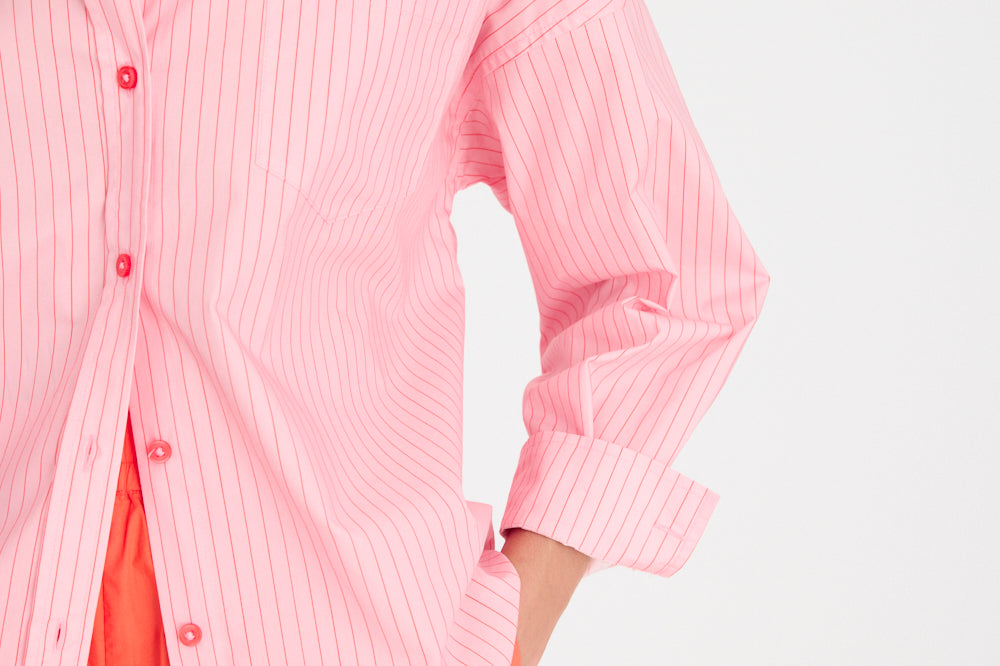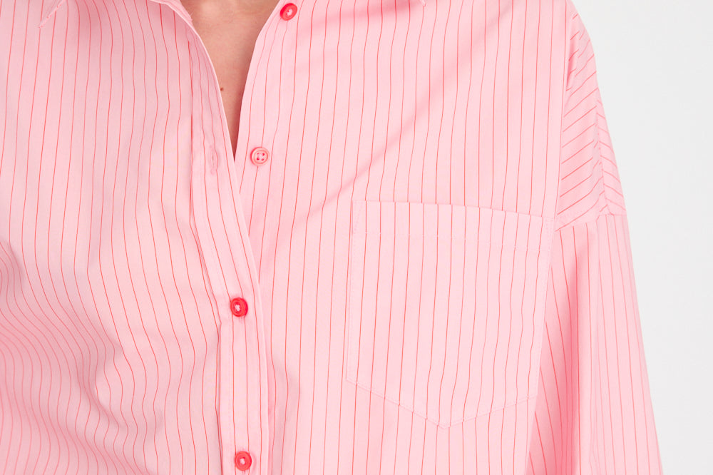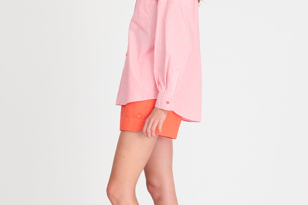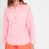 Chiara Long Sleeve Shirt Pinstripe - Pink/Spicy Orange