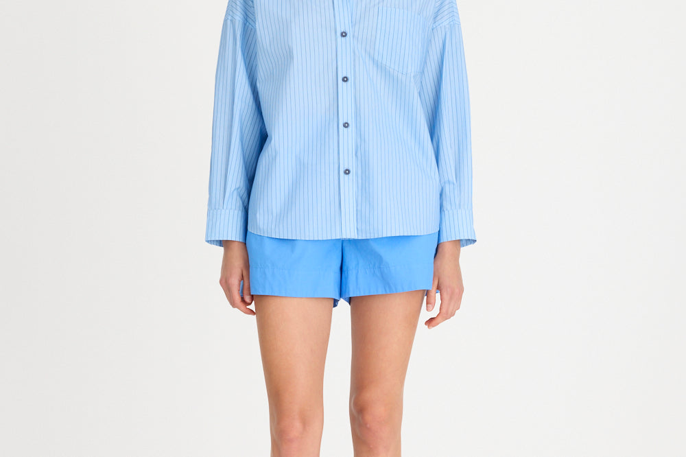 Introducing our Signature Classic Button-Up Shirt, featuring a stripe detail. Expertly crafted from 100% yarn-dyed cotton, this shirt effortlessly combines style and comfort. The design includes a practical chest pocket and our signature drop shoulders, creating a slightly loose silhouette perfect for layering under cozy knitwear or pairing with your favourite Chiara shorts.