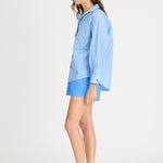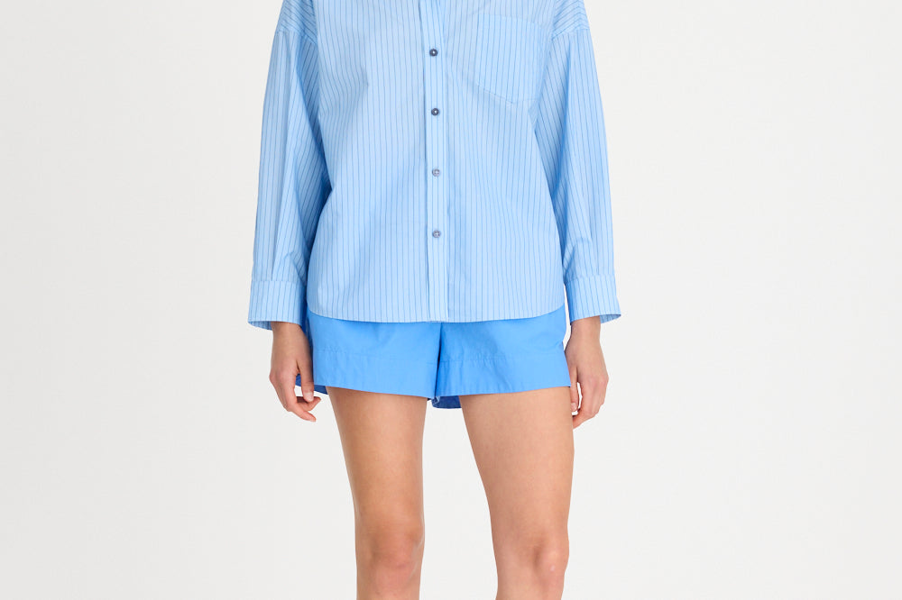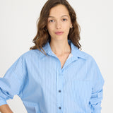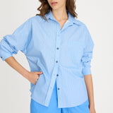 Chiara Long Sleeve Shirt Pinstripe - Powder Blue/Navy