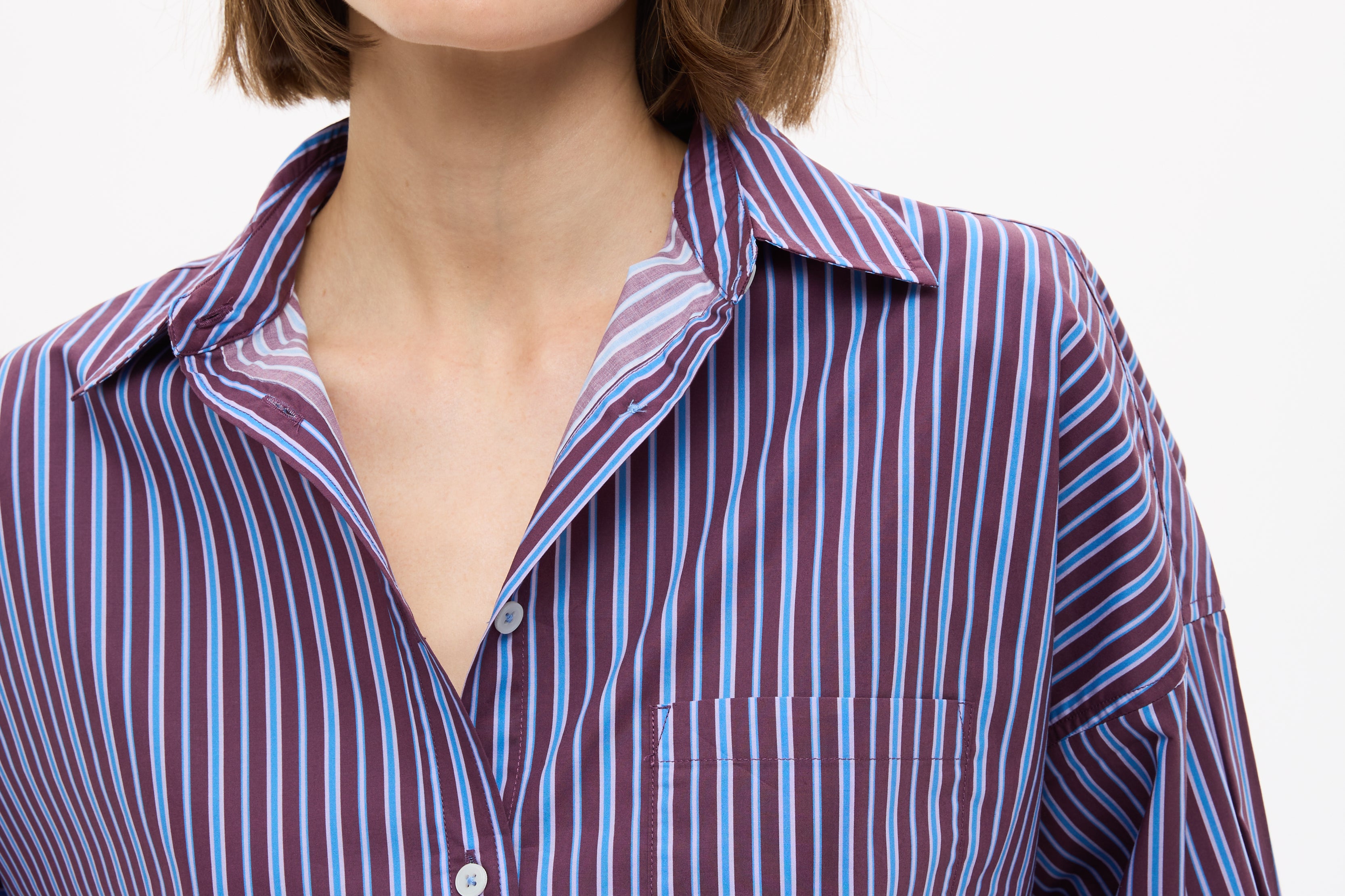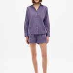 Effortless, timeless, and designed to be worn on repeat. The Chiara Long Sleeve Shirt in Fig/Ink Blue/ Pastel Lilac Stripe is a refined take on our signature classic, grounded in one of LMND’s most loved colours.