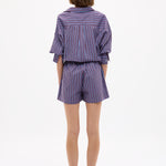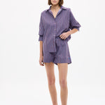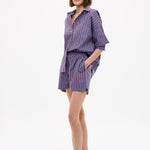 Chiara Long Sleeve Shirt Stripe - Fig/Ink Blue/ Pastel Lilac