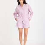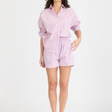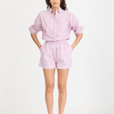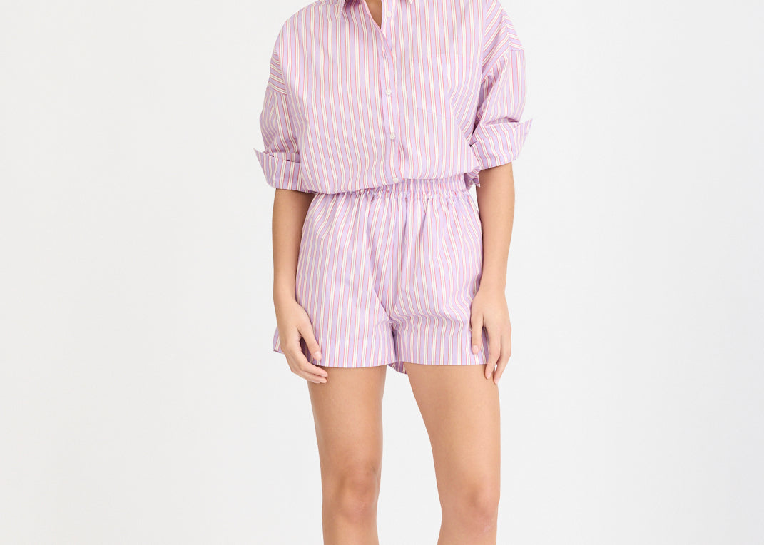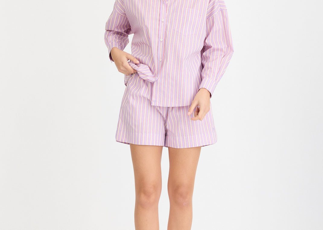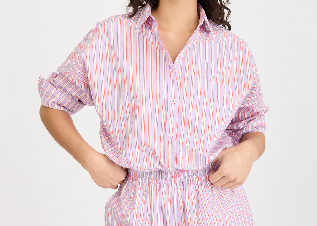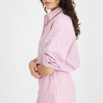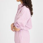 Effortless, timeless, and designed to be worn on repeat. The Chiara Long Sleeve Shirt in Viola, True Red, and Cherry Stripe brings colour confidence to our signature classic.