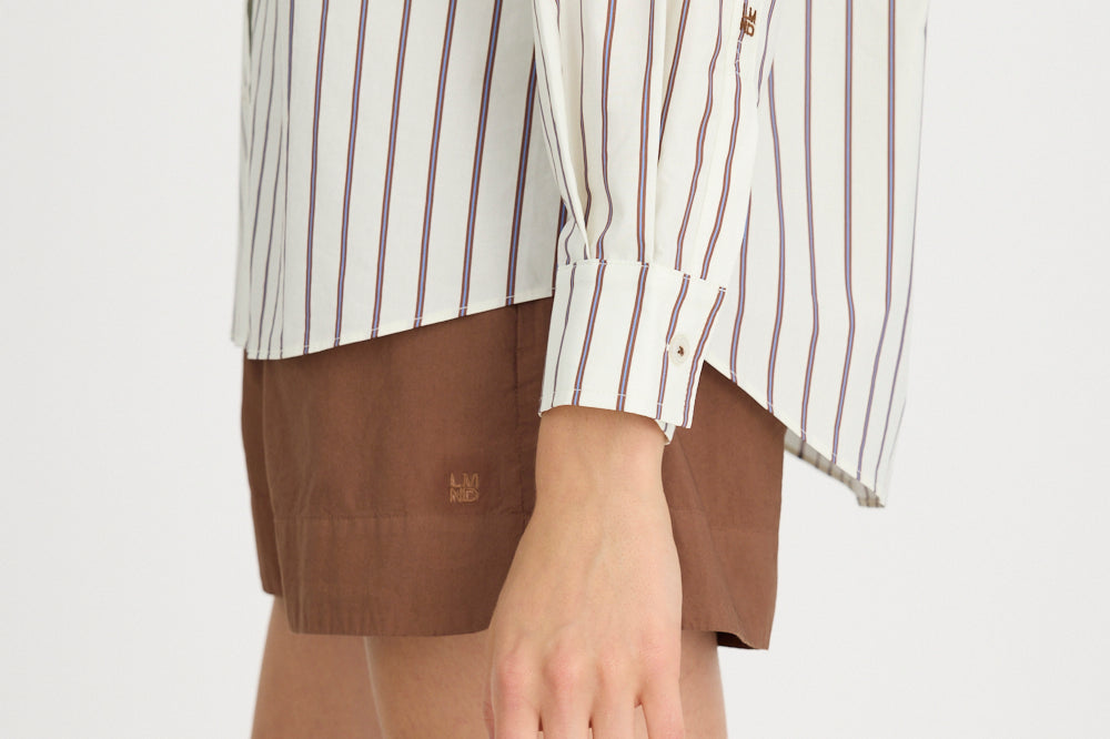 Effortless, timeless, and endlessly versatile, meet the LMND Signature Classic Button-Up in Vanilla Stripes.