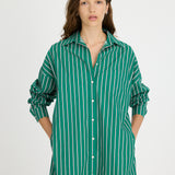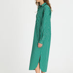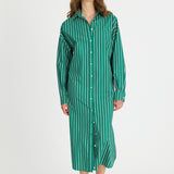 Discover the upgraded Chiara Maxi Shirt Dress, now featuring extra length. Crafted from 100% Cotton poplin and garment-dyed, this dress boasts a classic rounded hem. Its oversized fit offers versatility, whether you leave it unbuttoned over pants, matching shorts, or your favourite swimsuit. Upgrade your style effortlessly with this wardrobe essential.