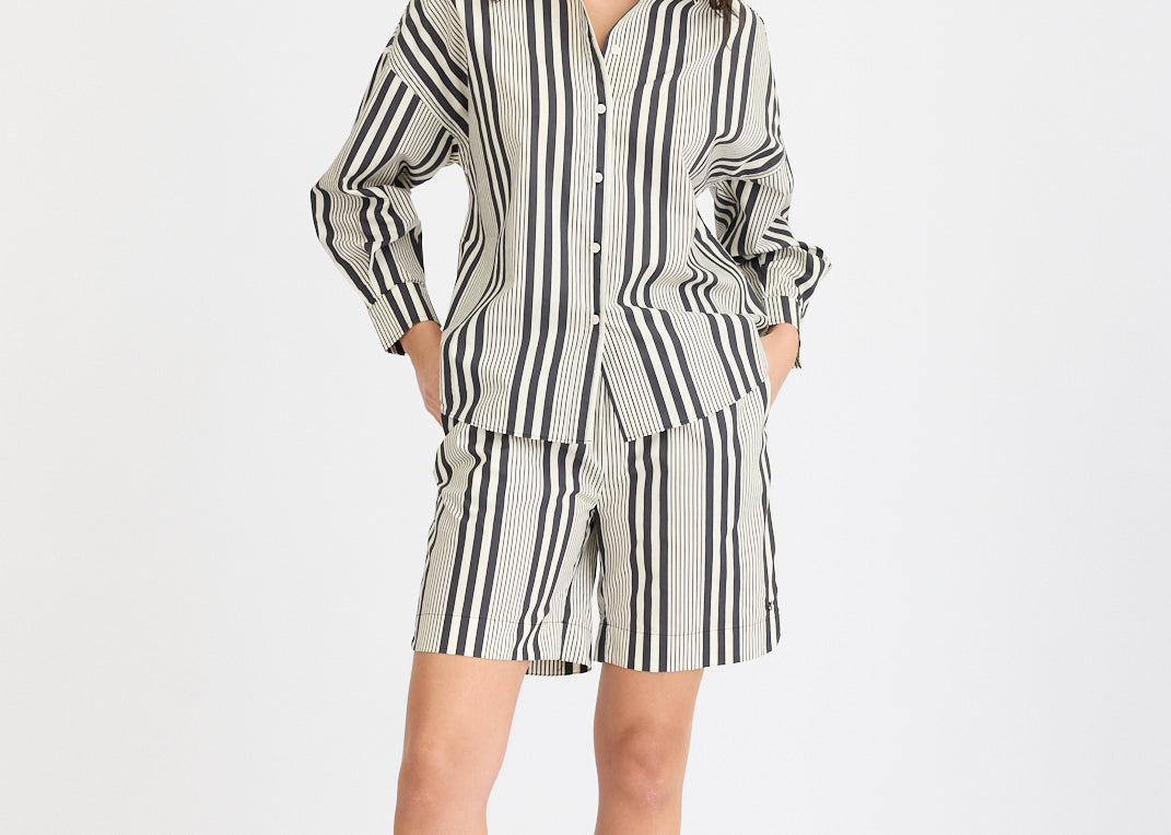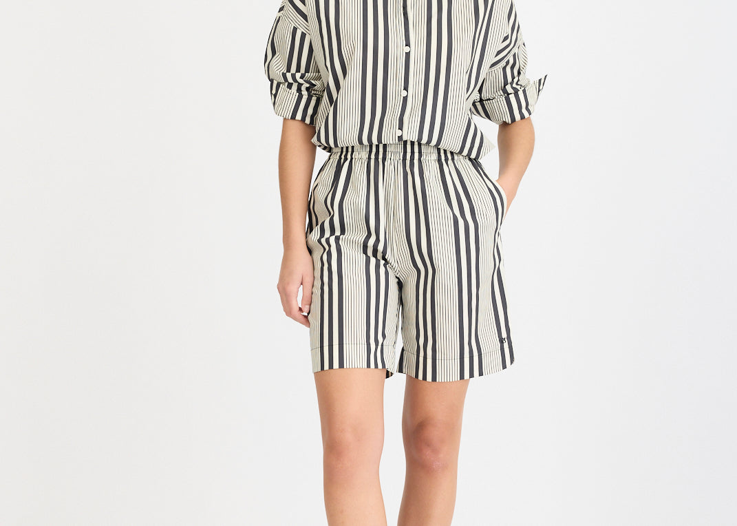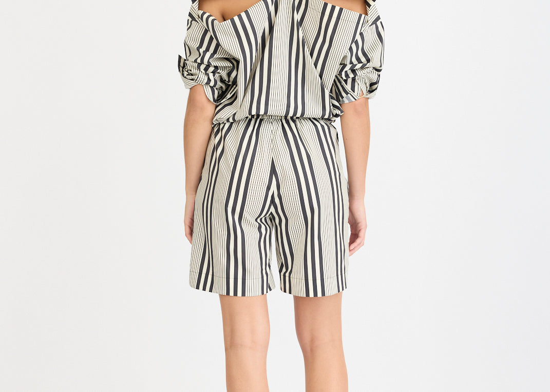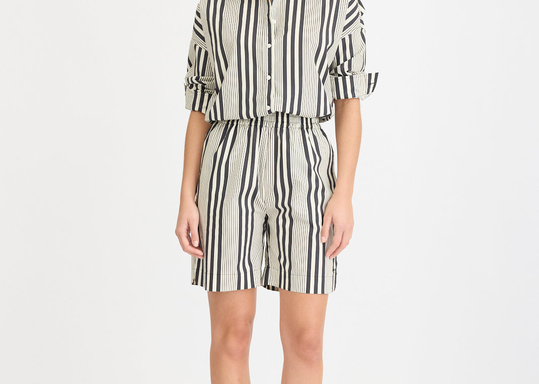 Chiara Mid Length Shorts - Black and White Stripe