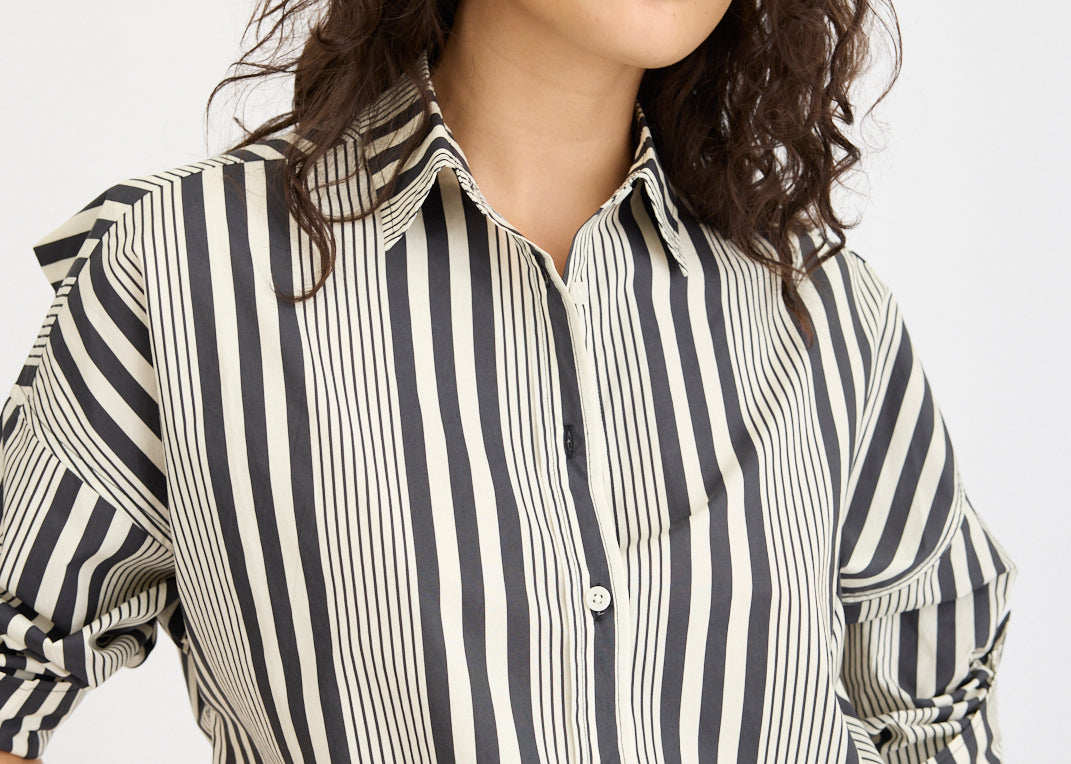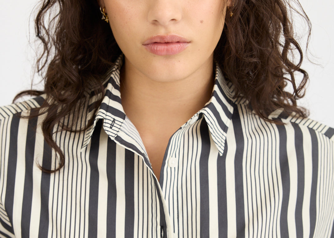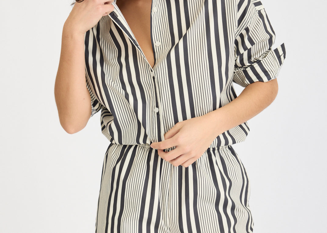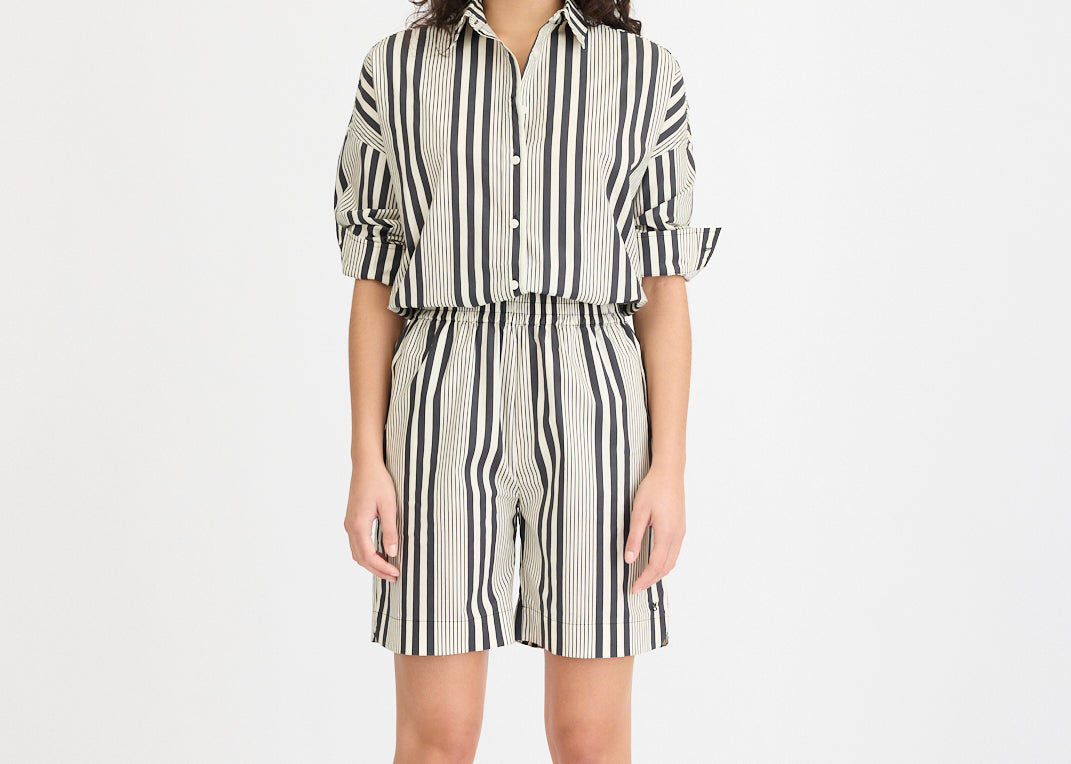 Chiara Mid Length Shorts - Black and White Stripe