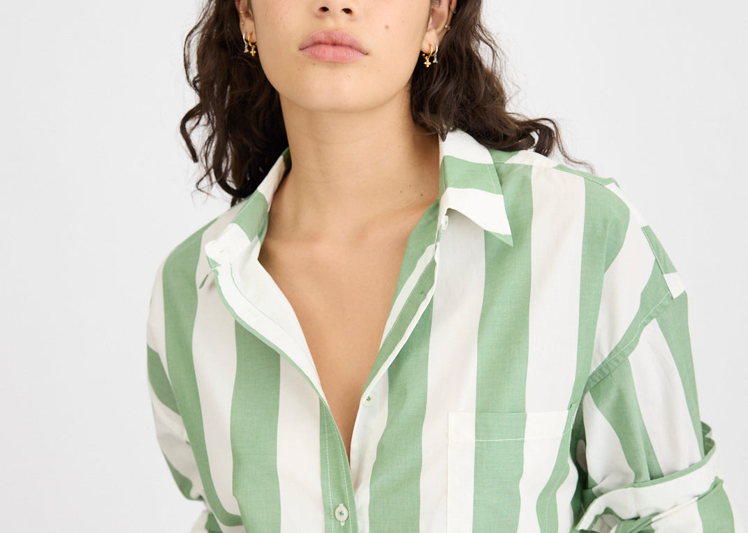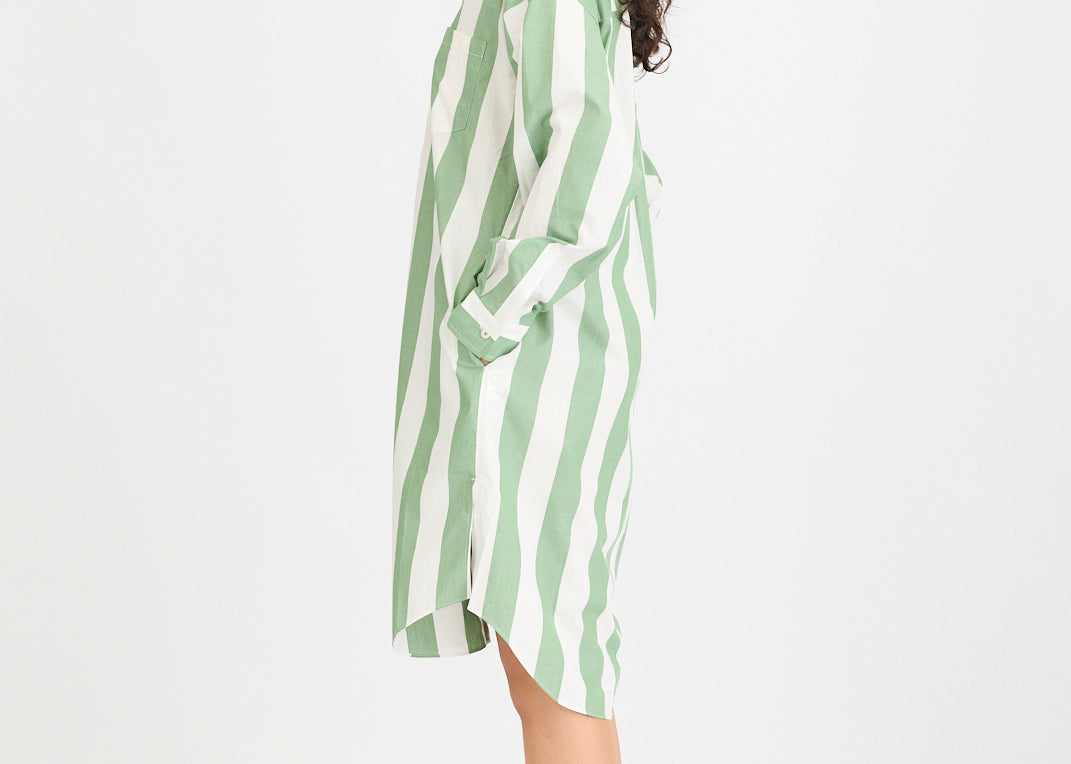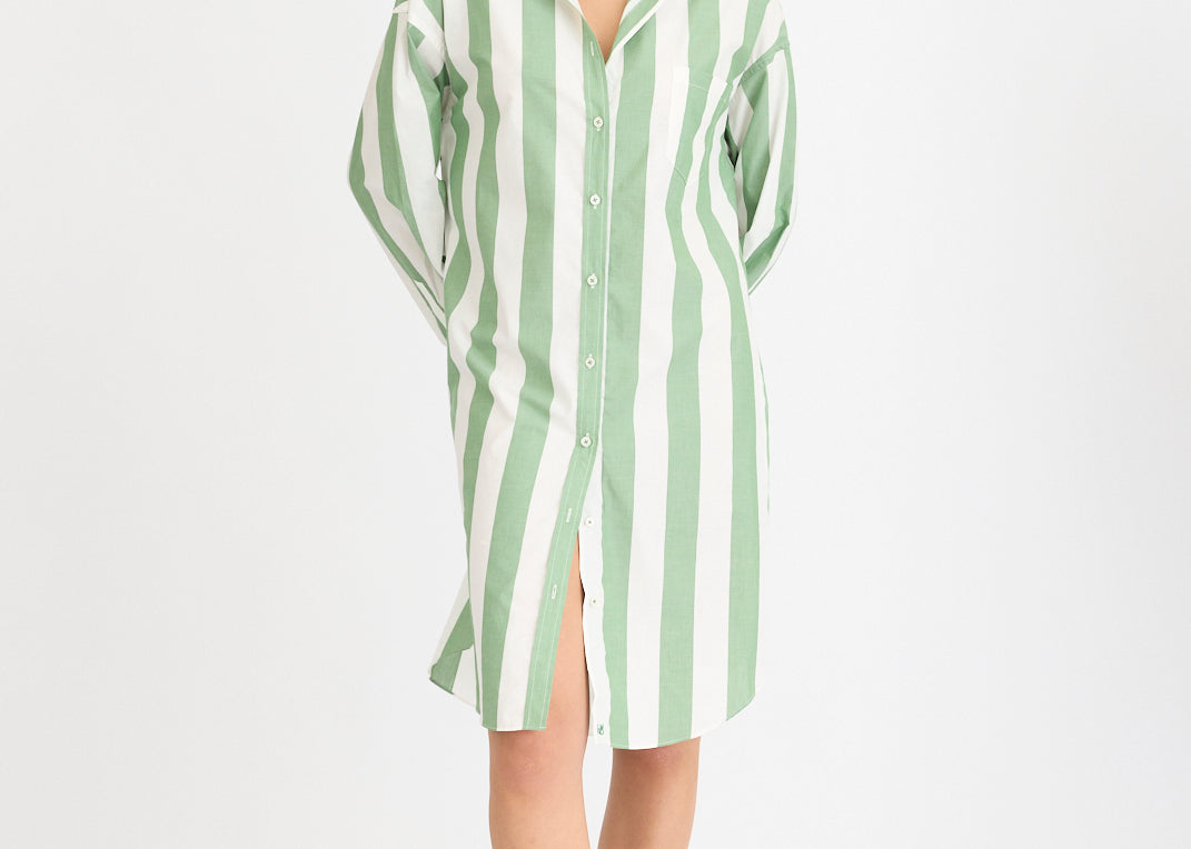 The Chiara Shirt Dress is your go-to for effortless style, now available in LMND’s exclusive bold stripes, yarn-dyed for lasting colour and depth.