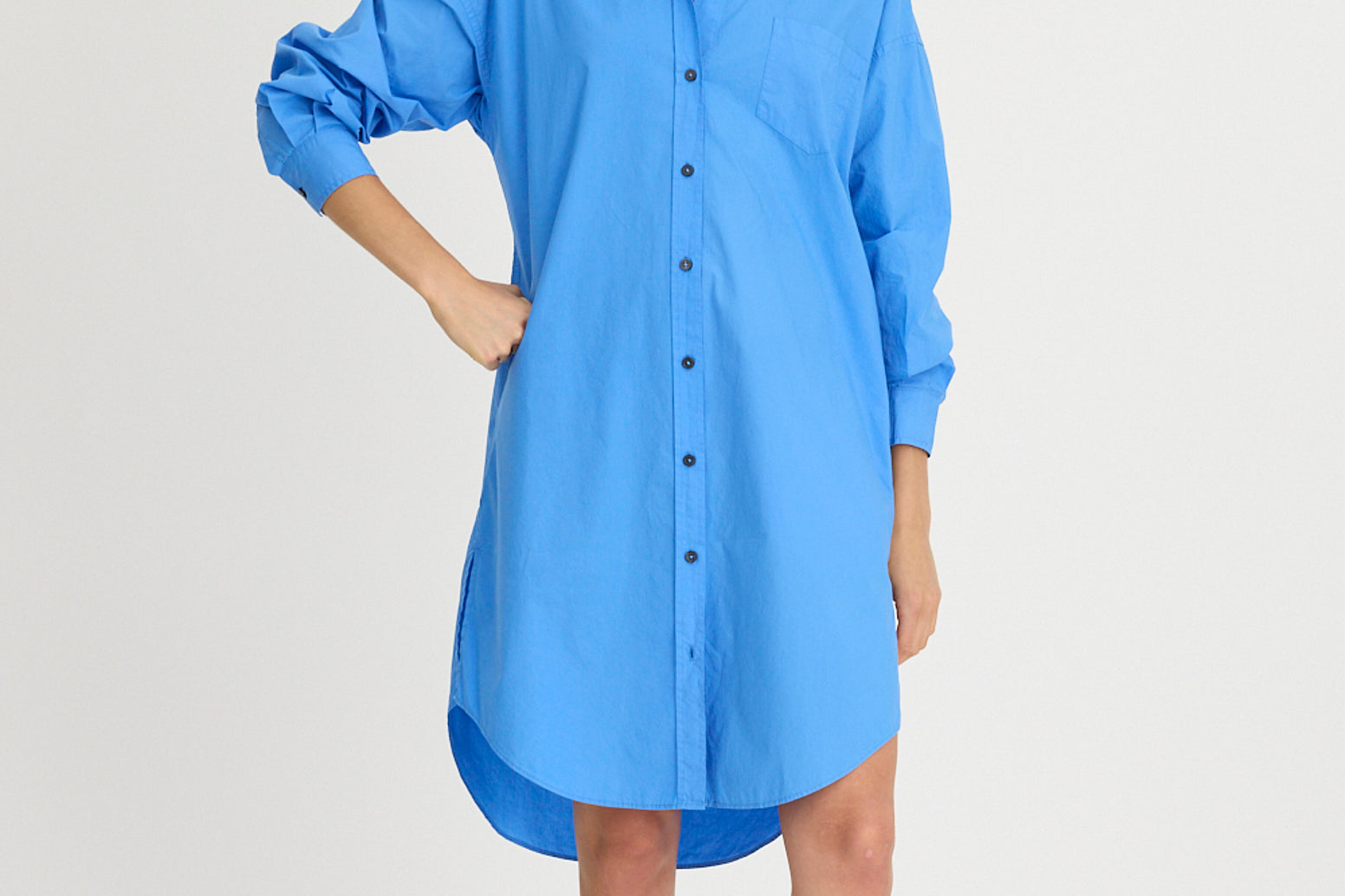The Chiara Shirt Dress is your go-to for effortless style. Crafted from 100% cotton poplin and garment-dyed for a rich, unique depth of color, it features a classic rounded hem and LMND’s signature oversized fit. Whether buttoned up or styled open over pants, matching shorts, or your favourite swimwear, this versatile piece is a wardrobe staple.