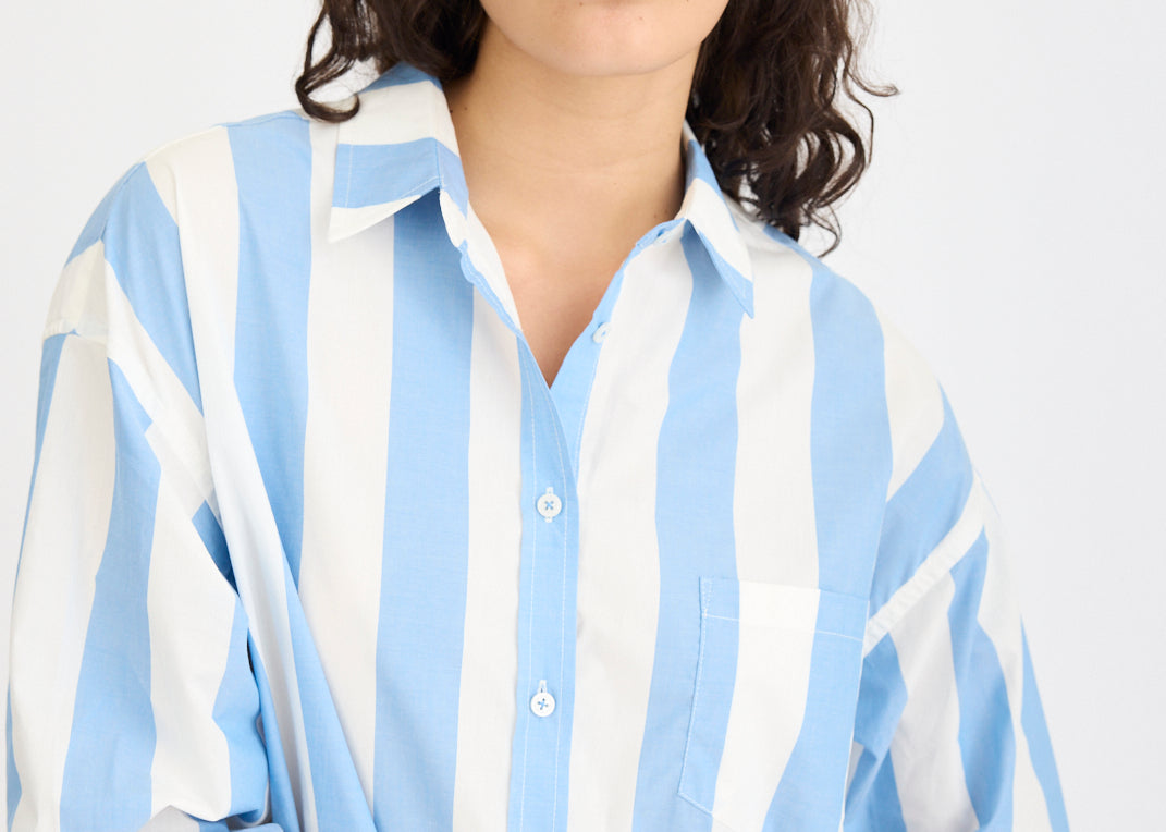 The Chiara Shirt Dress is your go-to for effortless style, now available in LMND’s exclusive bold stripes, yarn-dyed for lasting colour and depth.
