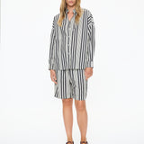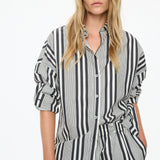Chiara Open Yoke Shirt - Black and White Stripe