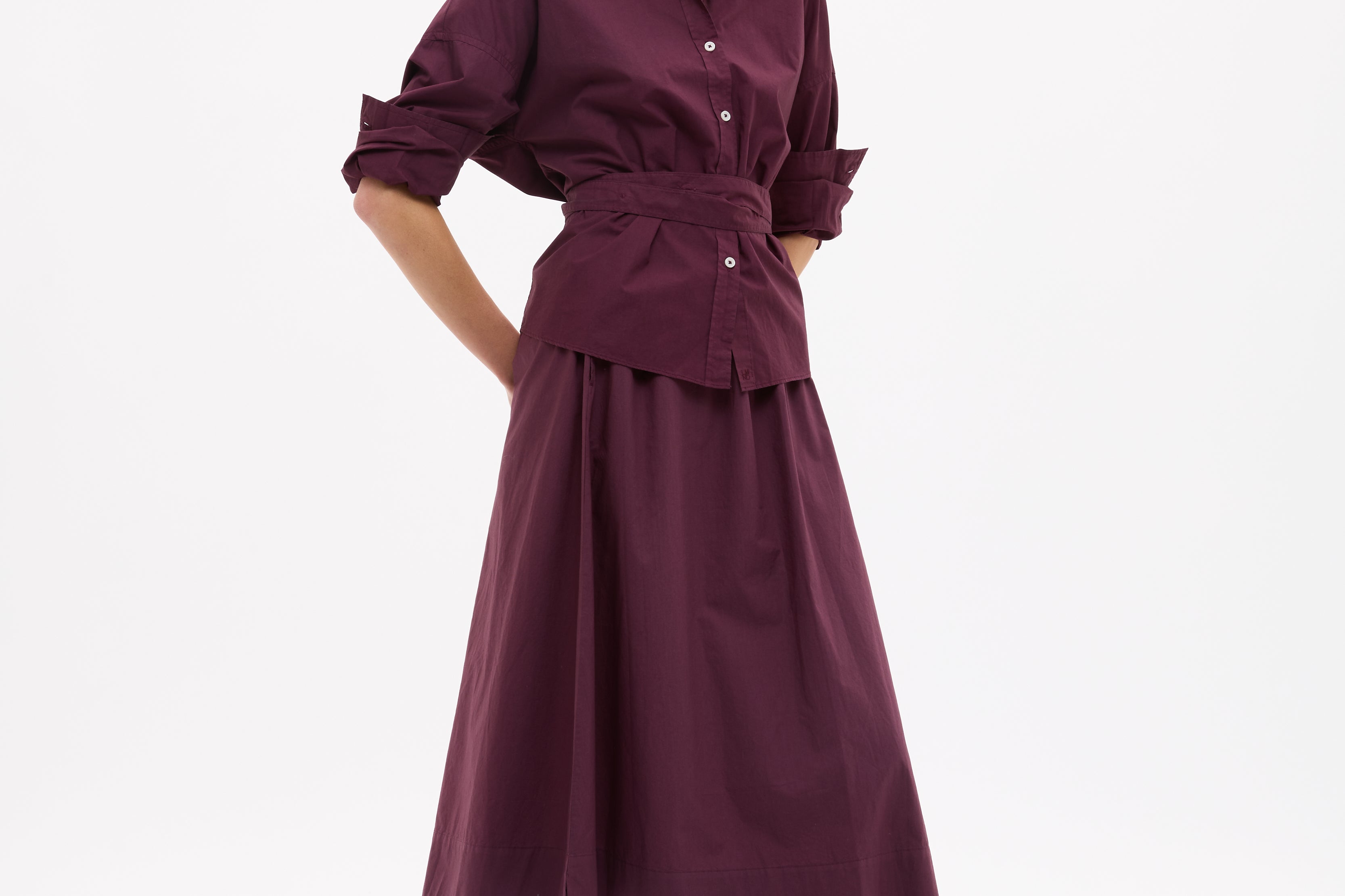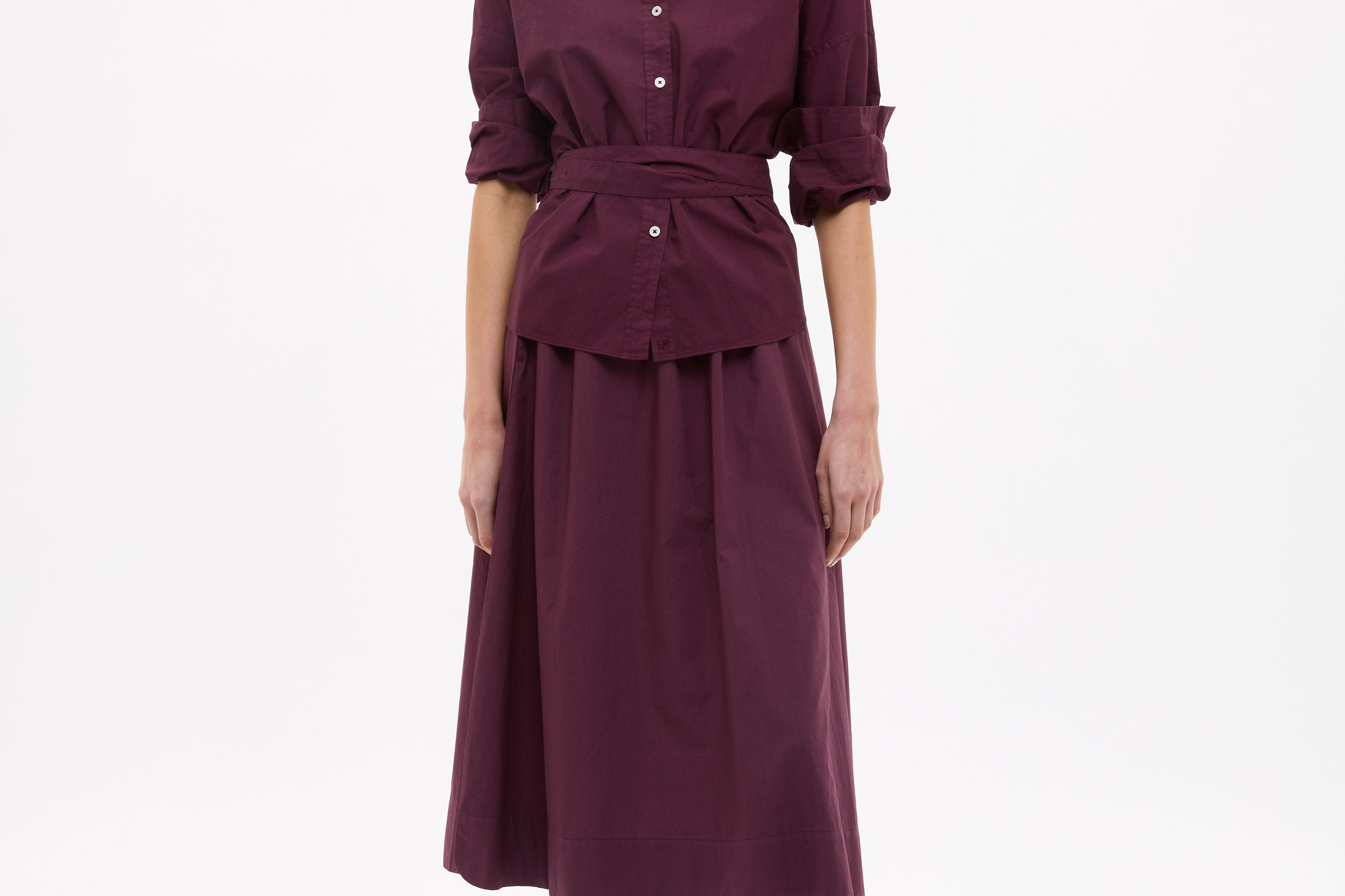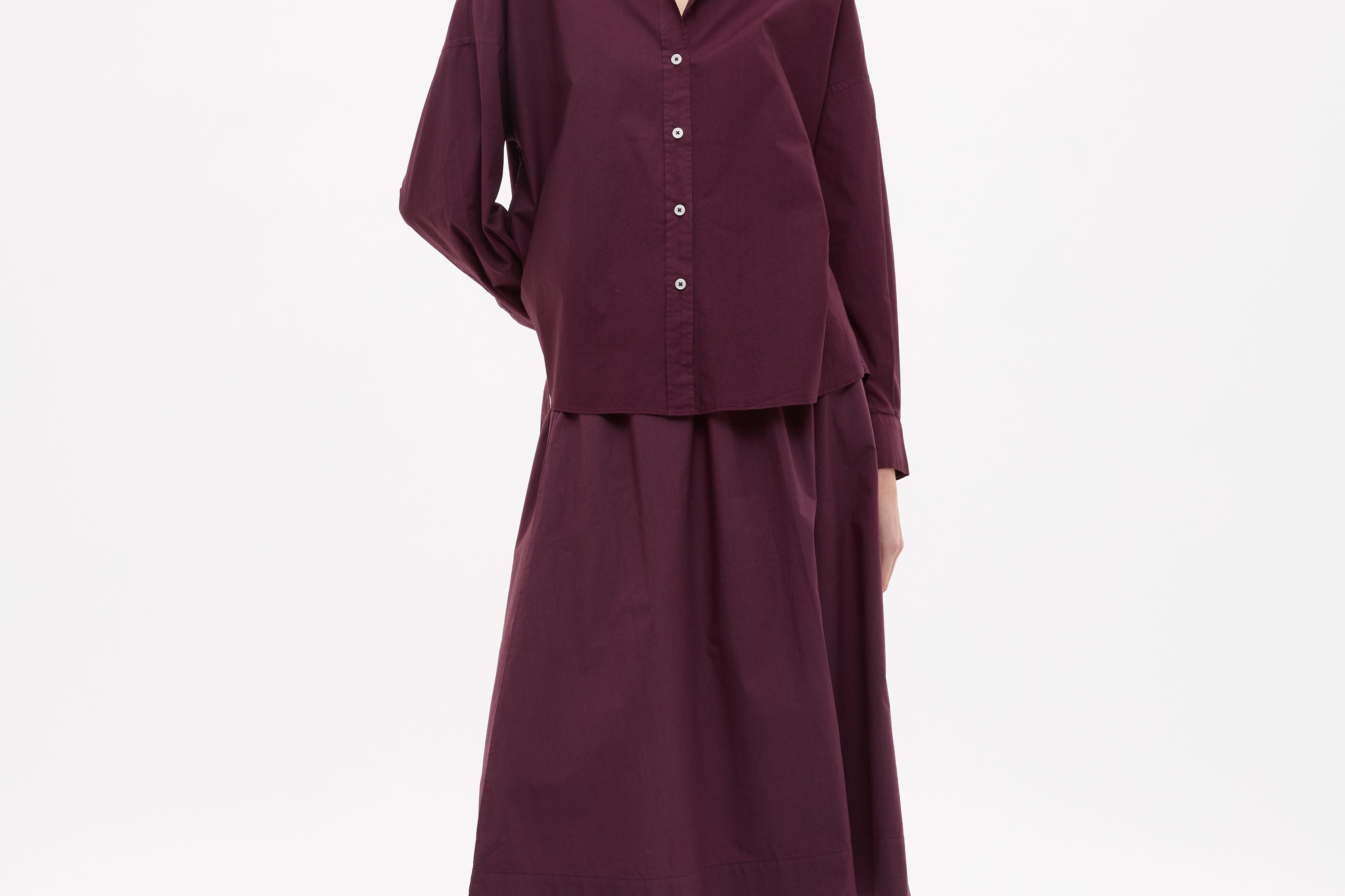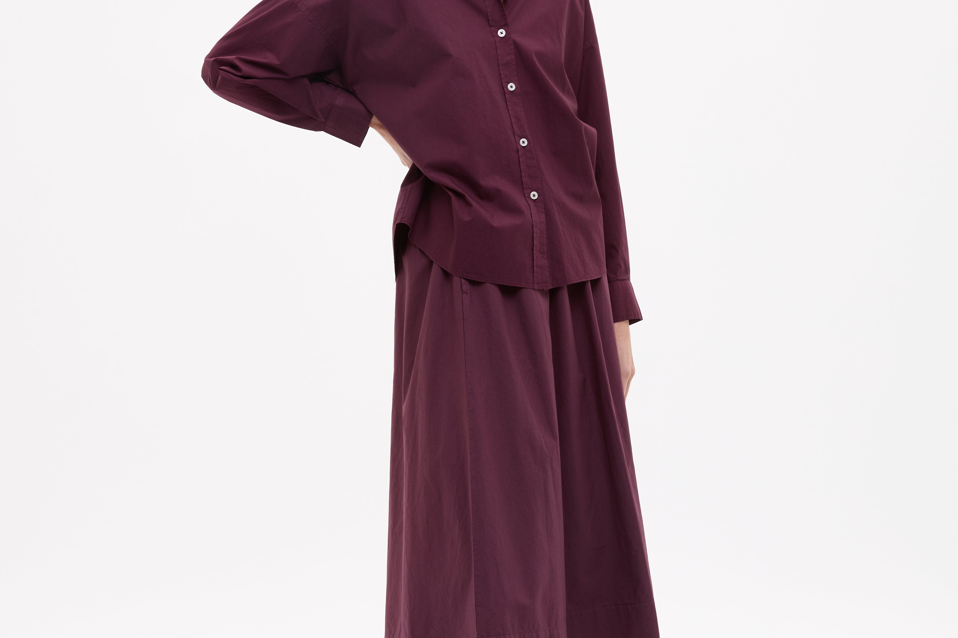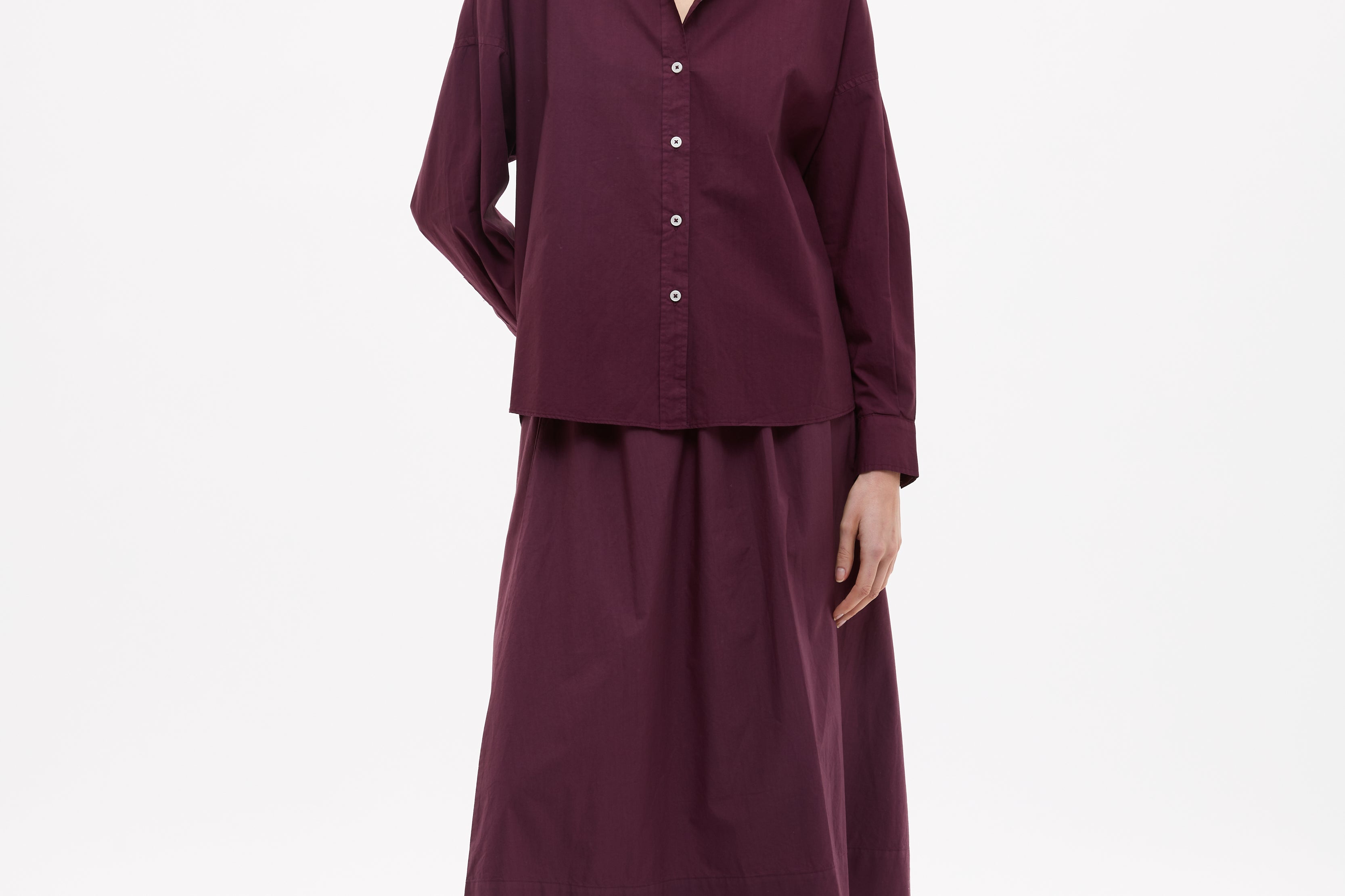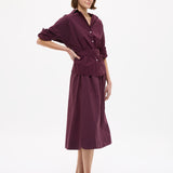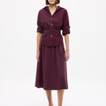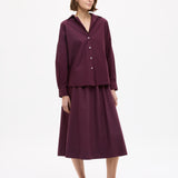 Easy and endlessly wearable. The Chiara Skirt in Fig is cut from 100% organic cotton with a soft yarn-dyed finish that gives the colour real depth.