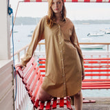 The Chiara Shirt Dress is your go-to for effortless style. Crafted from 100% cotton poplin and garment-dyed for a rich, unique depth of color, it features a classic rounded hem and LMND’s signature oversized fit. Whether buttoned up or styled open over pants, matching shorts, or your favourite swimwear, this versatile piece is a wardrobe staple.