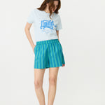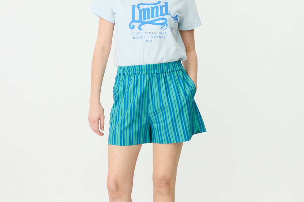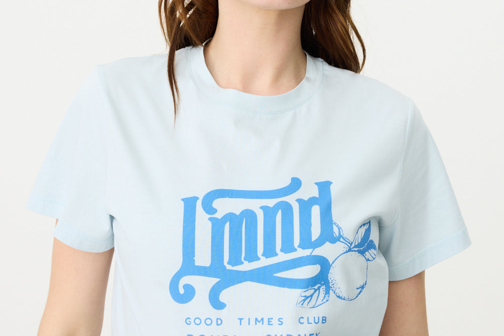 LMND Relaxed Good Times T-Shirt, Crafted from 100% cotton, this relaxed Good Times T-shirt offers a comfortable fit perfect for everyday wear. It features a round neckline, short sleeves, and a unique customized LMND Good times Club print, embodying both style and a relaxed seasonal look. Pair yours with your favorite Chiara Shorts and Shirt for a complete outfit.