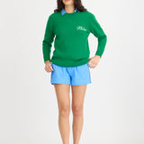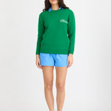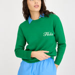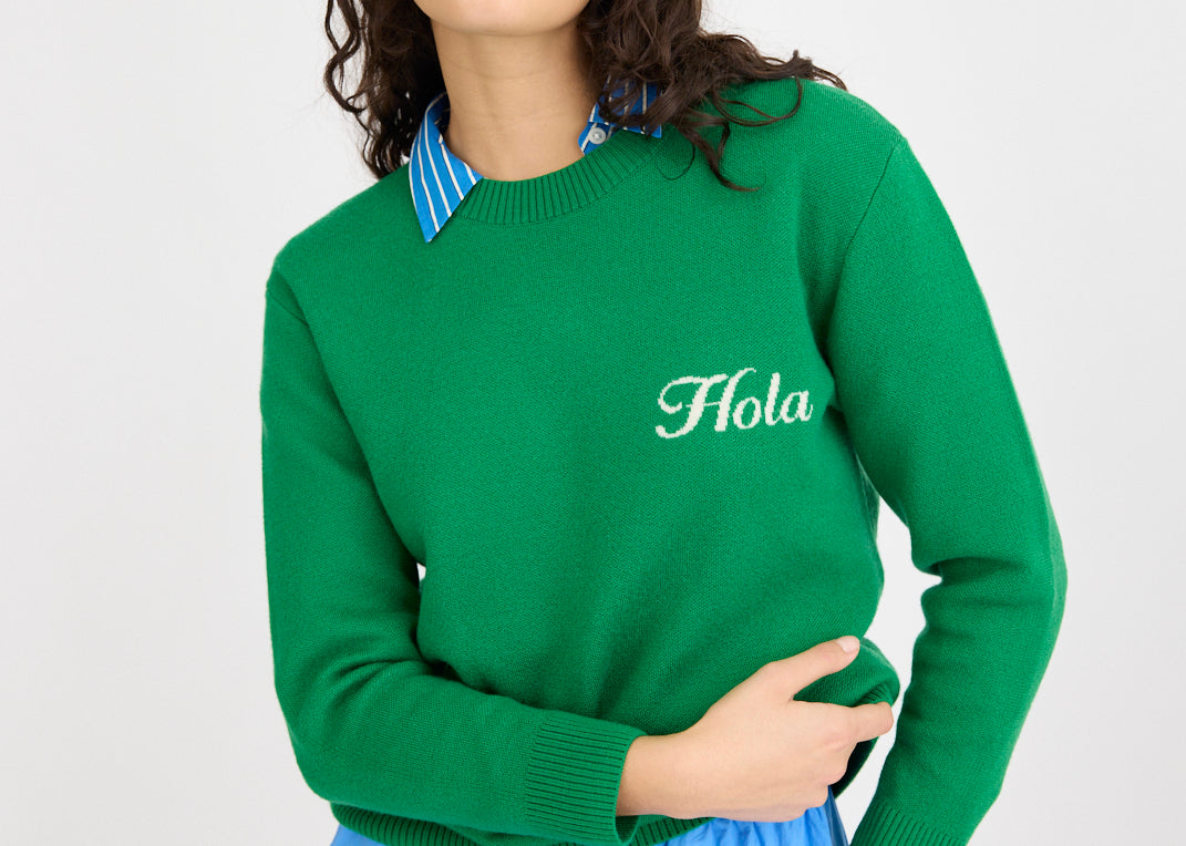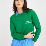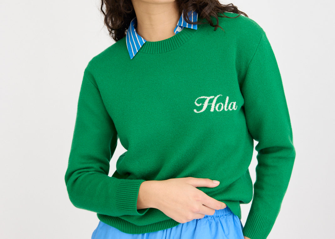 Crafted from 100% merino wool, the Hola Knit Jumper is luxuriously soft, lightweight, and designed for everyday wear. Featuring a jacquard HOLA logo across the front, it brings a playful twist to timeless knitwear. Finished in a rich Green Hills hue with ribbed trims that add shape and structure - it’s comfort with character.