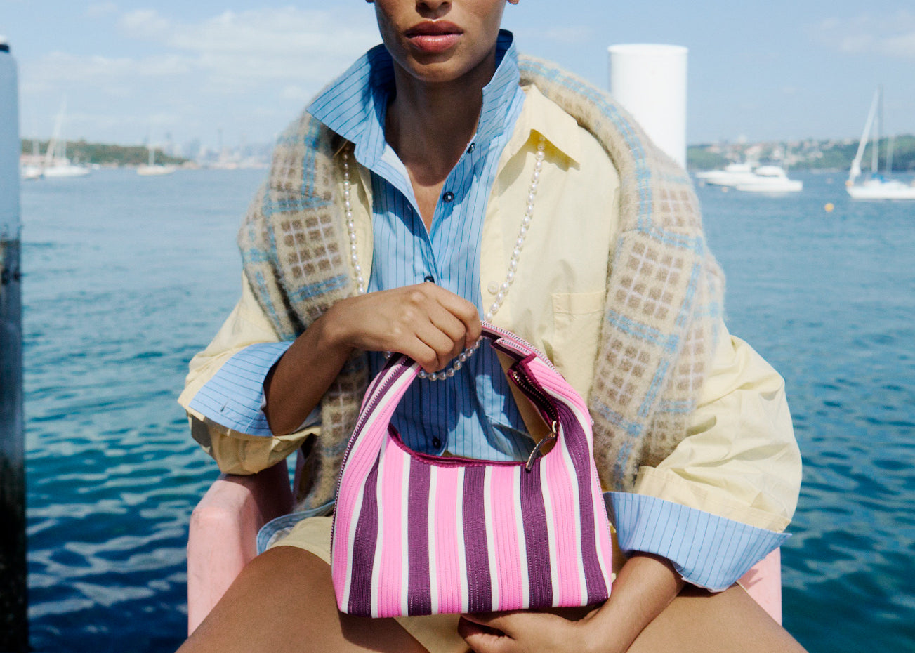 Your new-season essential—sculptural, effortless, and consciously crafted. The Mini Soft Bag in Fig/Plumeria Stripe blends refined minimalism with everyday functionality. Made from OEKO-TEX® Standard 100 certified fabric, it’s lightweight, compact, and designed to move with you anywhere, anytime.