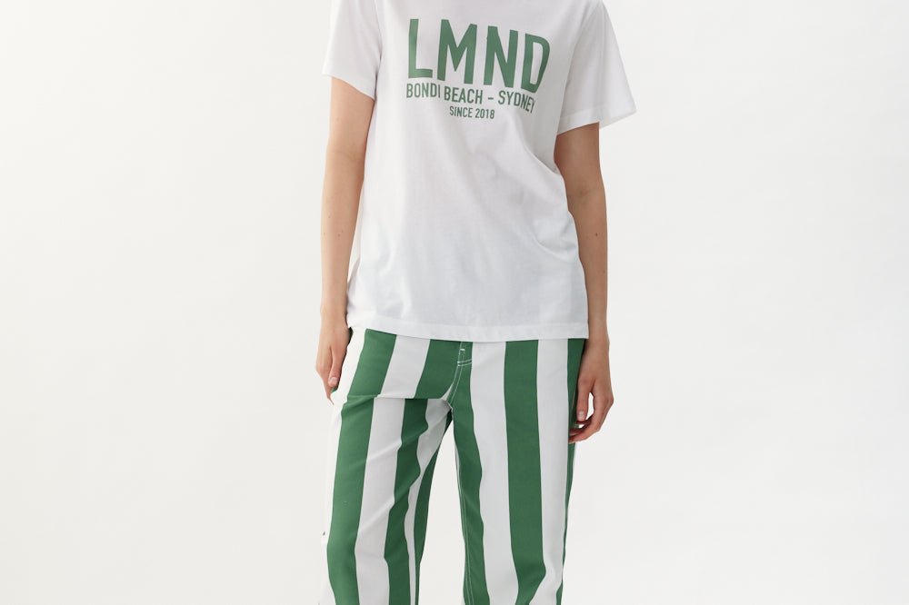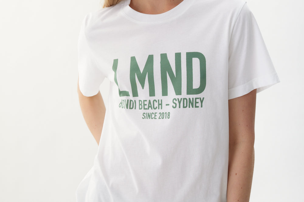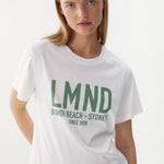 LMND Relaxed T-Shirt, Crafted from 100% cotton, this relaxed LMND T-shirt offers a comfortable fit perfect for everyday wear. It features a round neckline, short sleeves, and a unique customized LMND print, embodying both style and a relaxed seasonal look. Pair yours with your favorite Chiara Shorts and Shirt for a complete outfit.