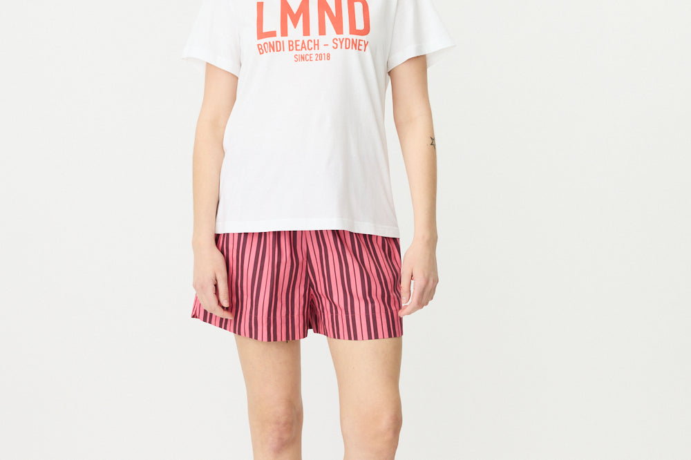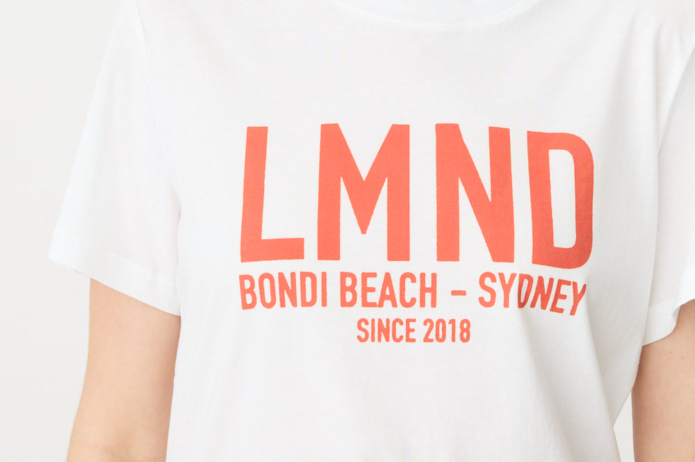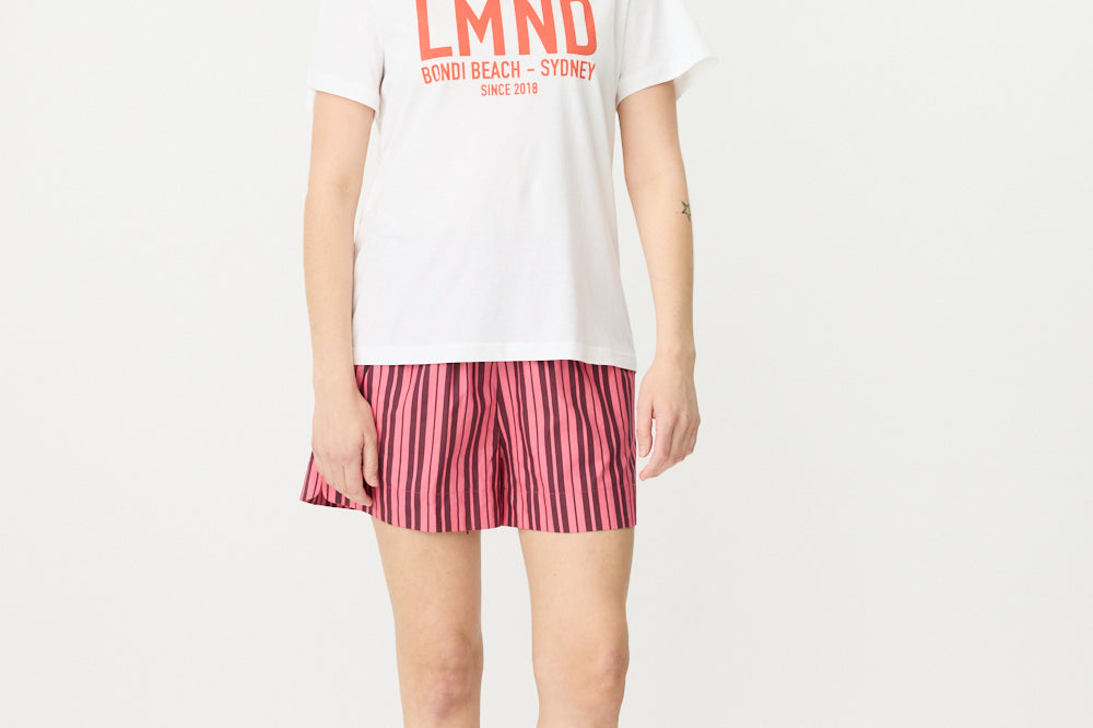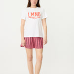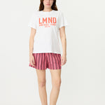 LMND Relaxed T-Shirt, Crafted from 100% cotton, this relaxed LMND T-shirt offers a comfortable fit perfect for everyday wear. It features a round neckline, short sleeves, and a unique customized LMND print, embodying both style and a relaxed seasonal look. Pair yours with your favorite Chiara Shorts and Shirt for a complete outfit.
