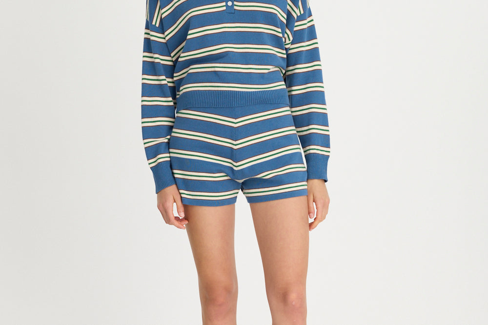 Luna Striped Shorts - Powder Blue/Vanilla/Macchiato/Verdant