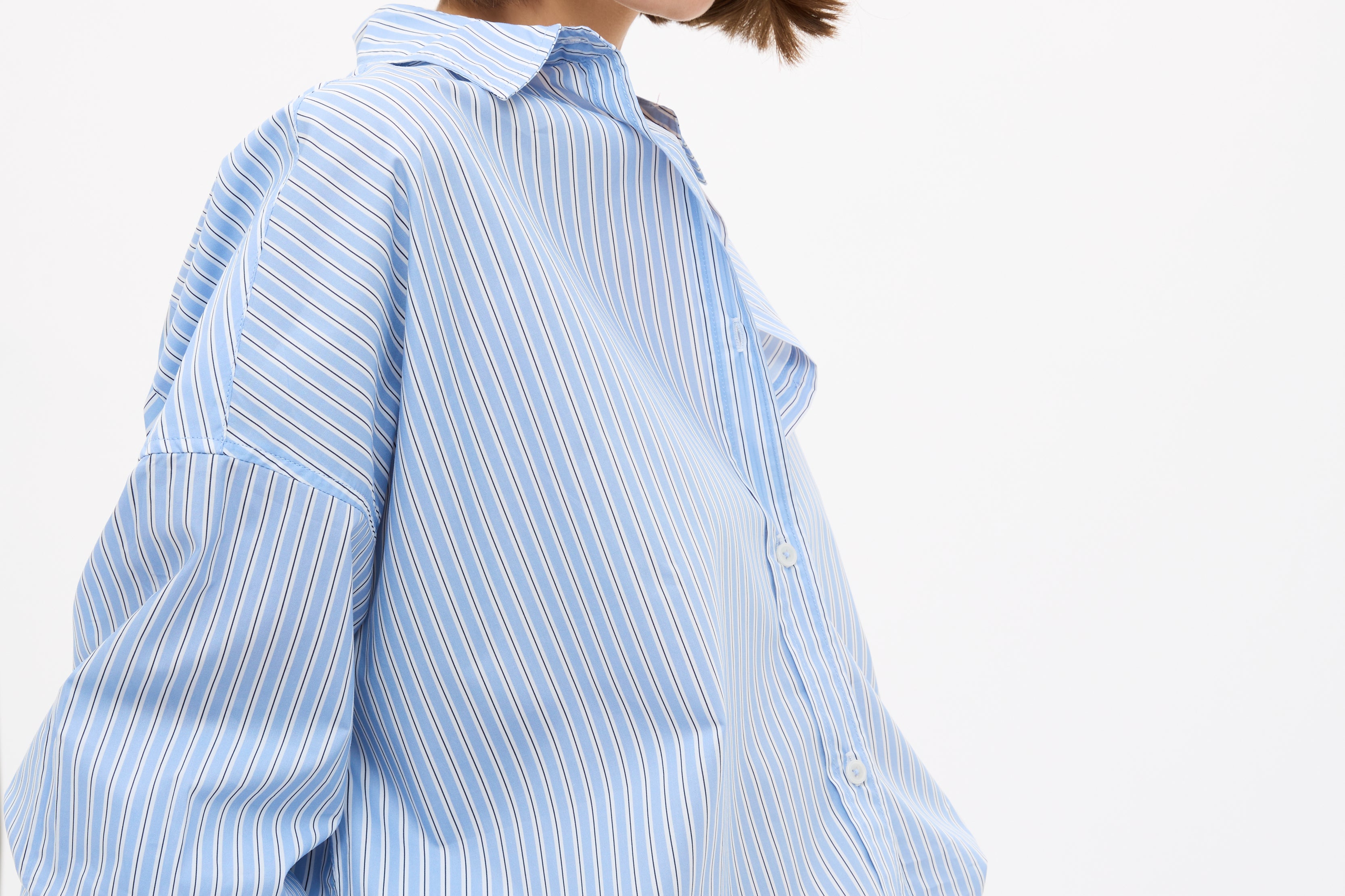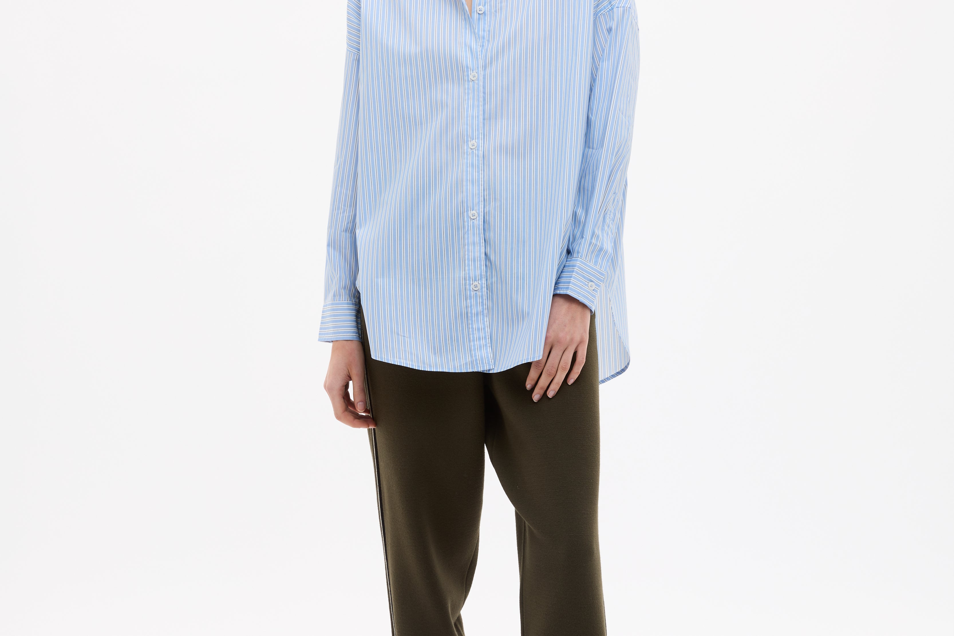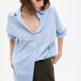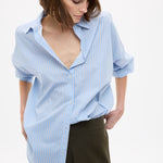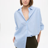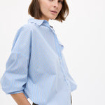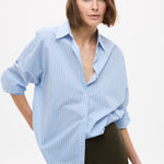 Mara Oversized Long Sleeve Shirt Stripe - Sky/Natural/Navy