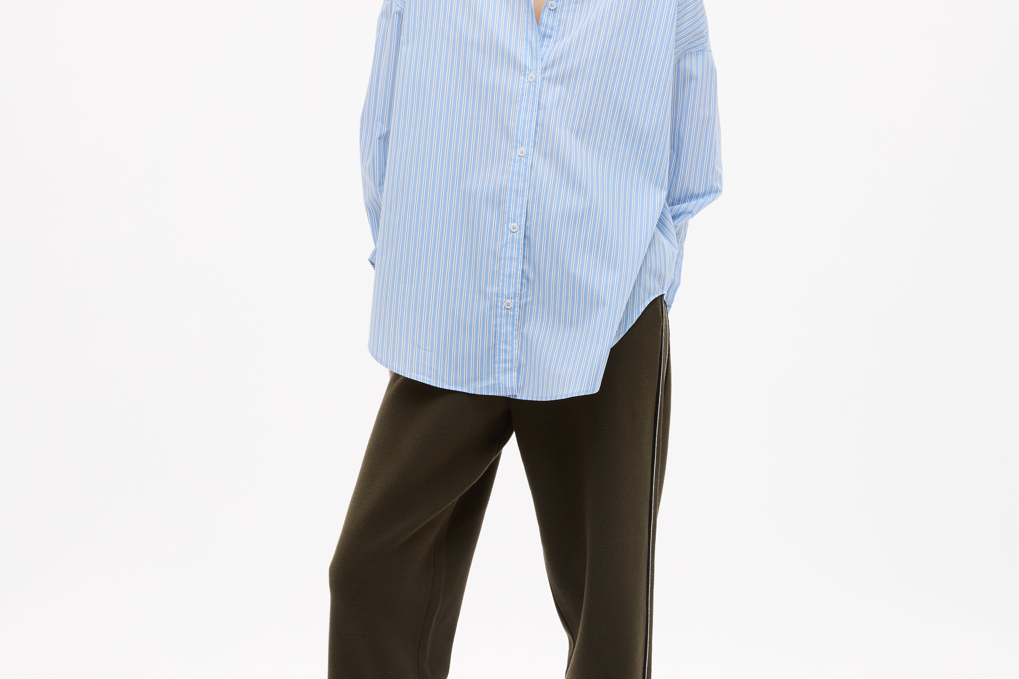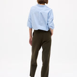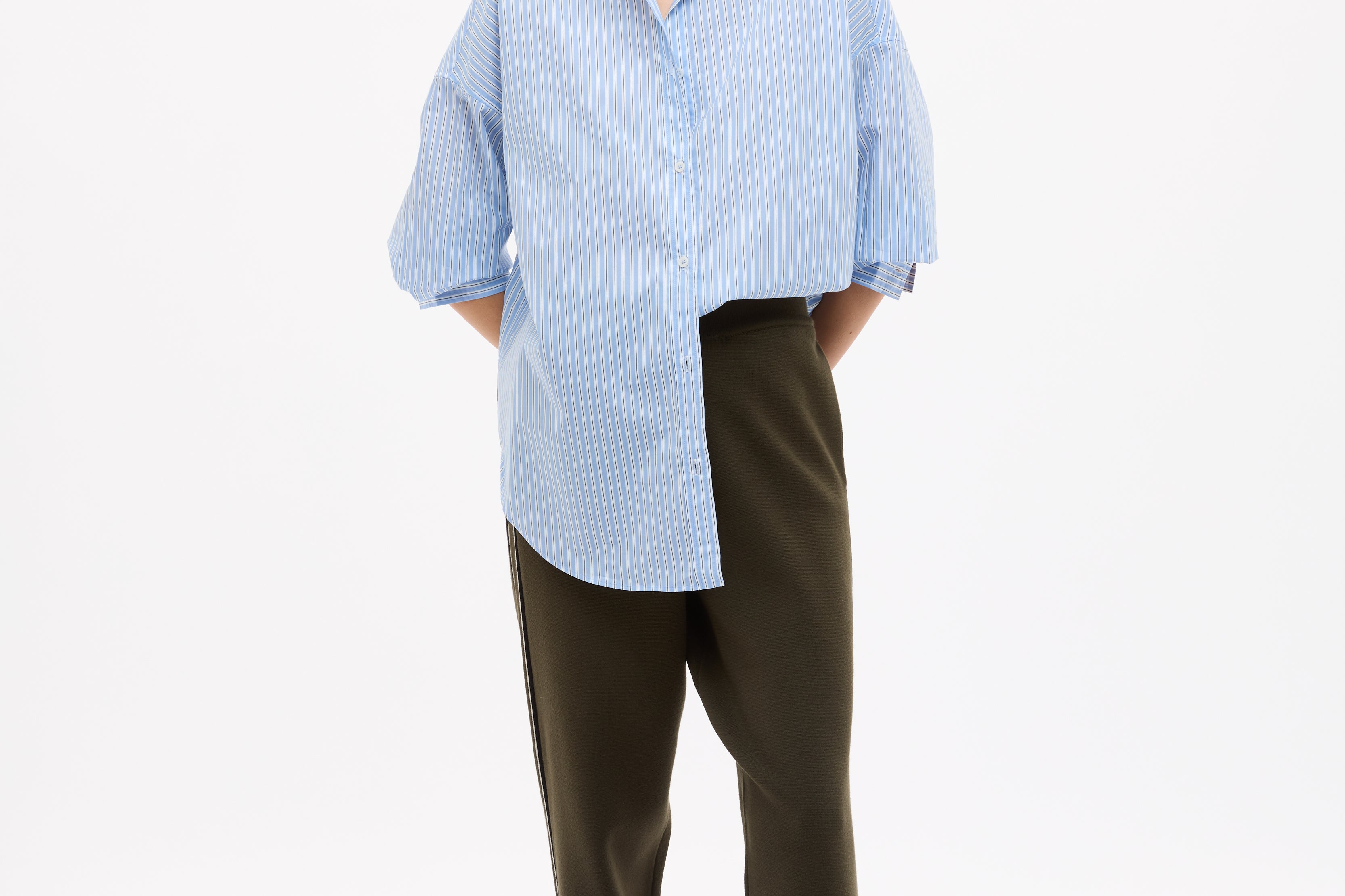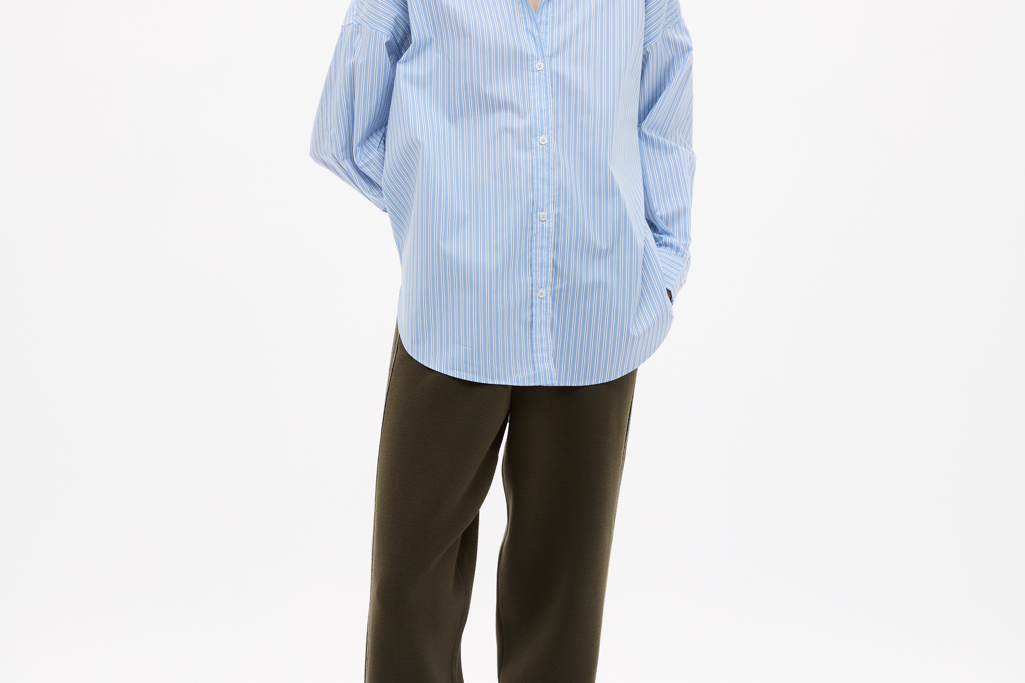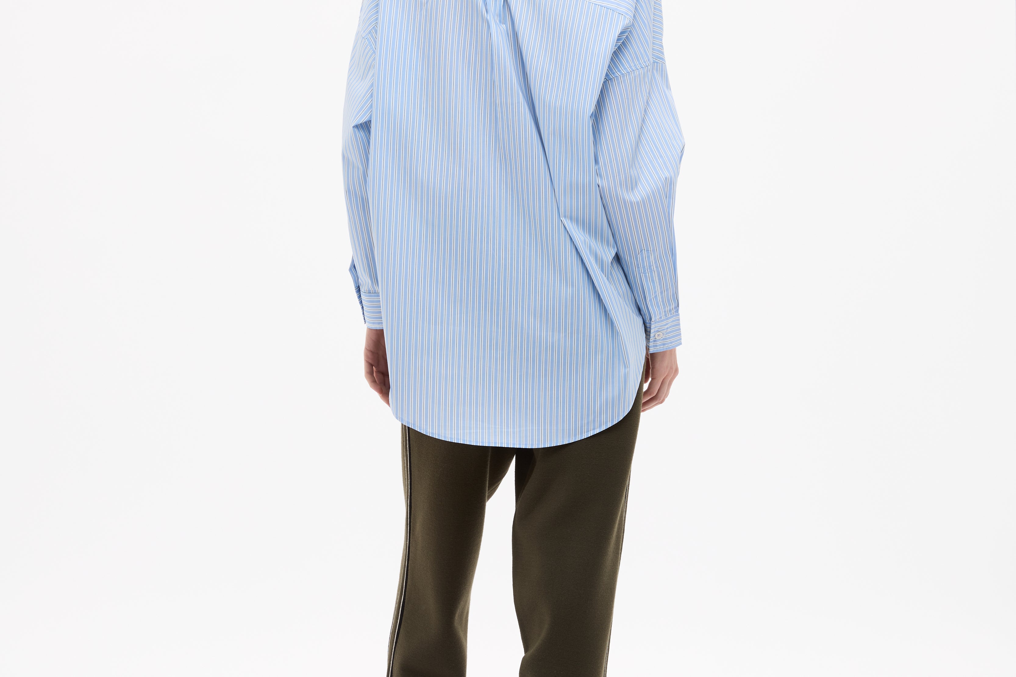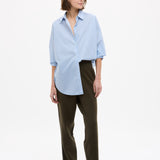 Crafted from 100% organic cotton, the custom yarn-dyed stripe blends Sky, Natural and Navy for a soft, balanced contrast that feels fresh but grounded. Lightweight and breathable, it’s the kind of shirt you throw on without overthinking — worn loose, half-tucked or layered over your favourites.
