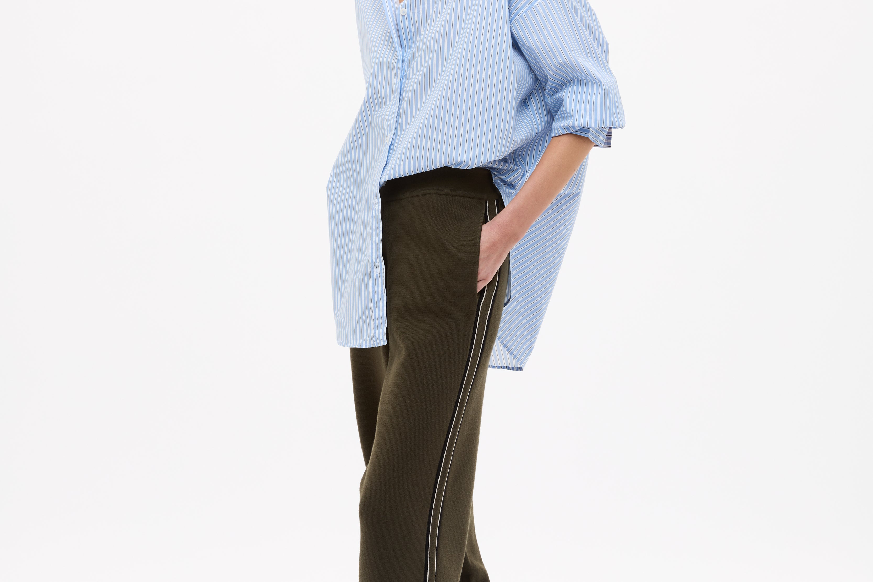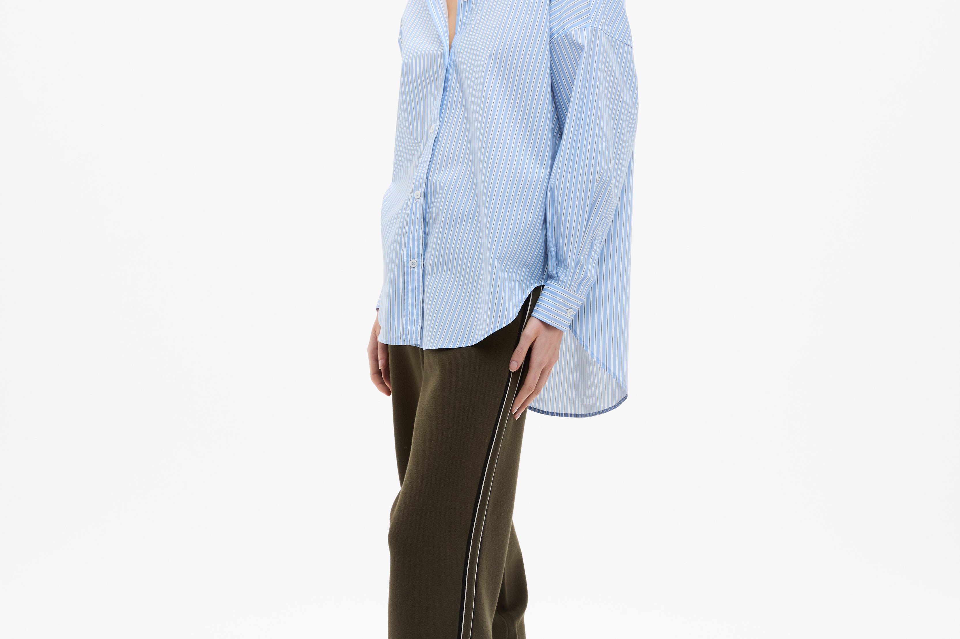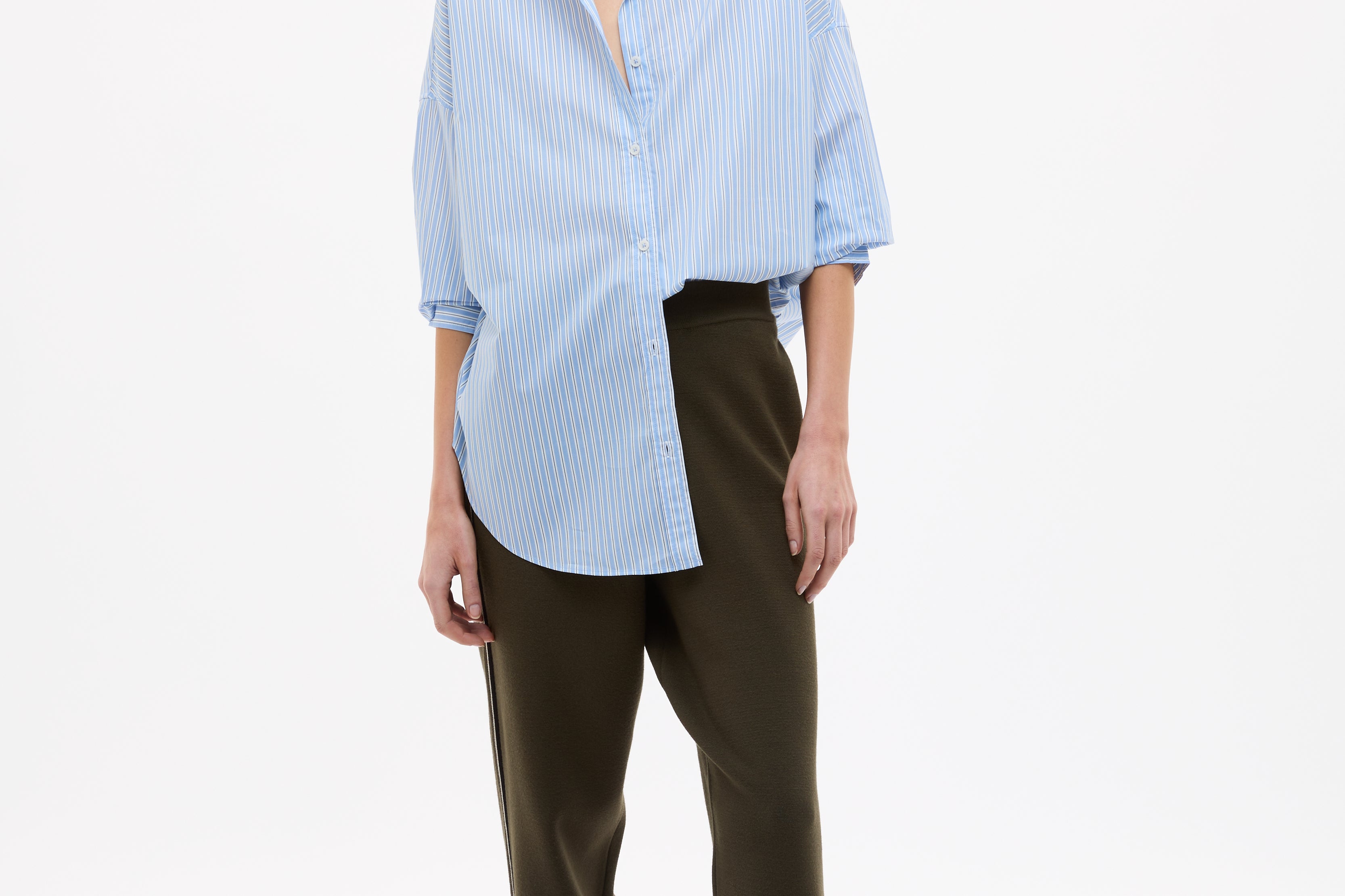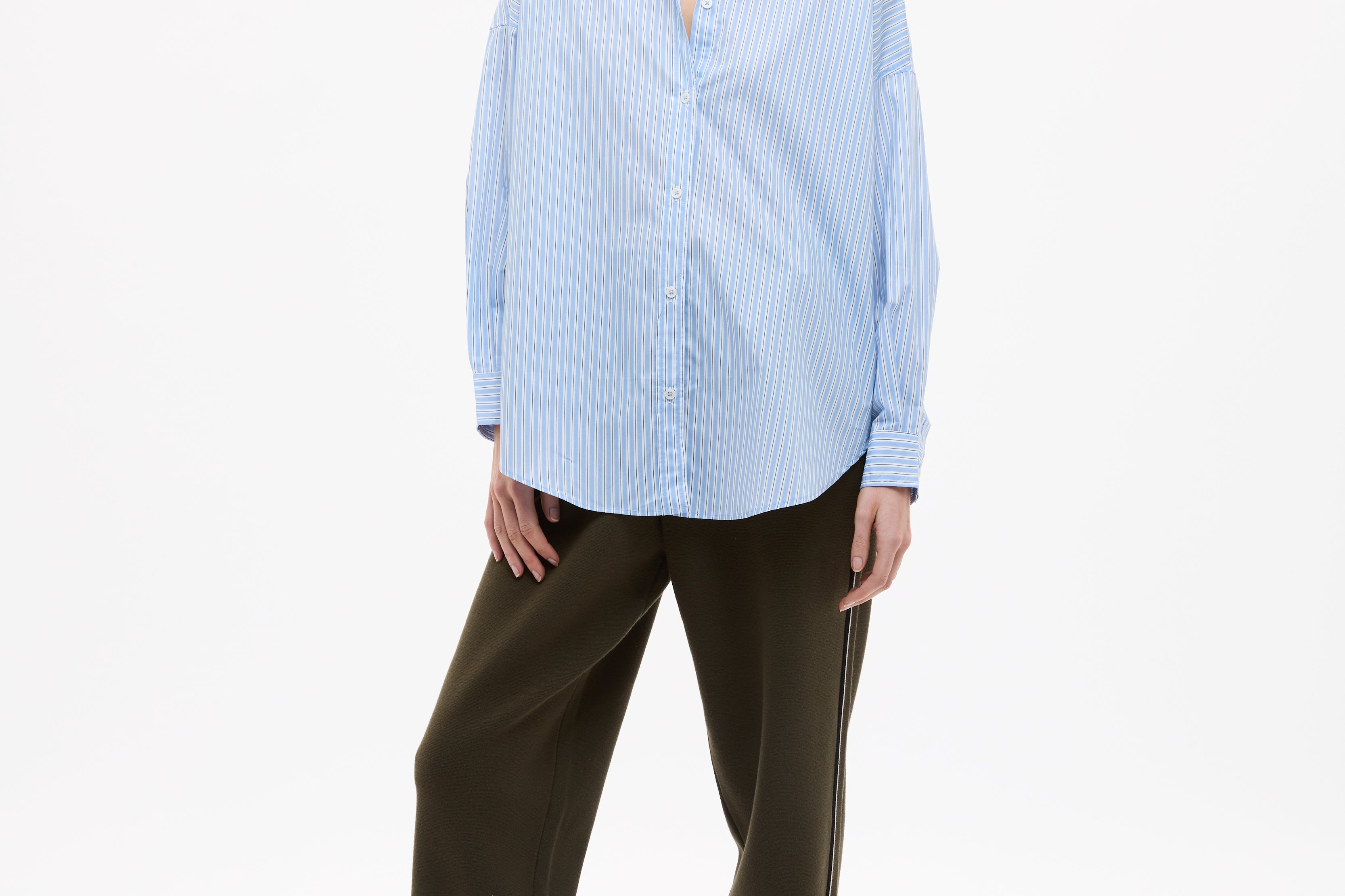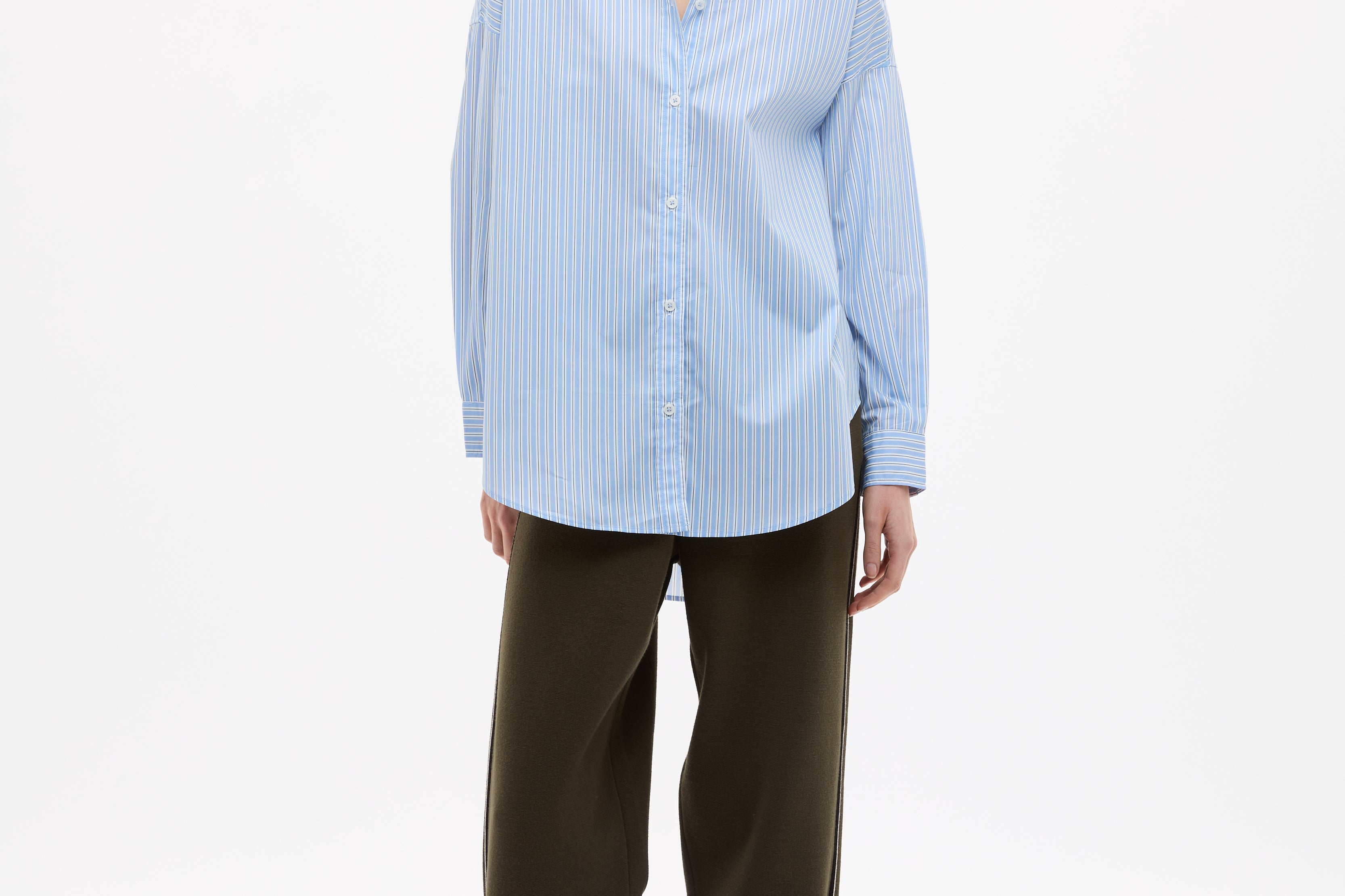 Crafted from 100% organic cotton, the custom yarn-dyed stripe blends Sky, Natural and Navy for a soft, balanced contrast that feels fresh but grounded. Lightweight and breathable, it’s the kind of shirt you throw on without overthinking — worn loose, half-tucked or layered over your favourites.