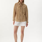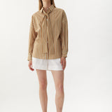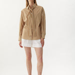 Rita Long Sleeve Tie Shirt - Toffee/White/Verde