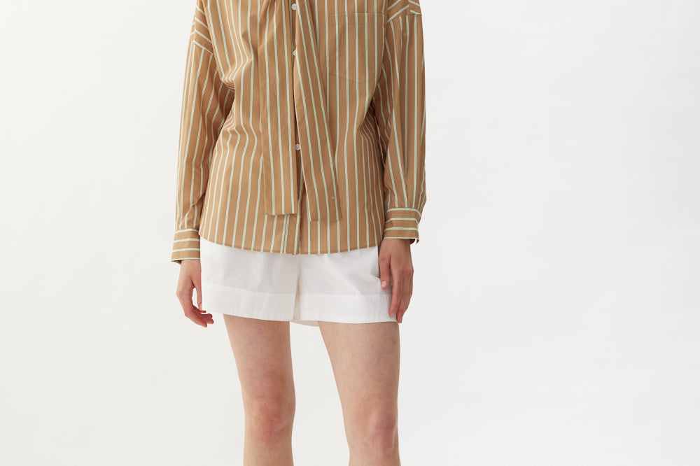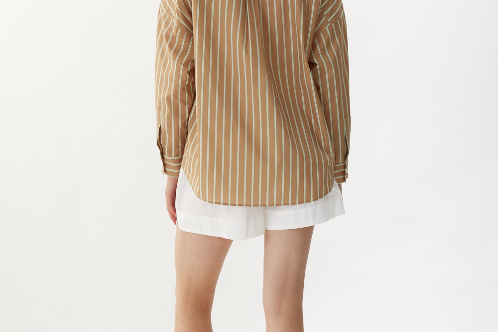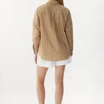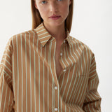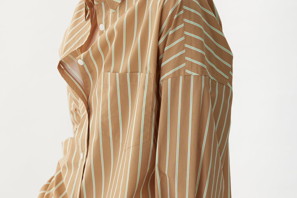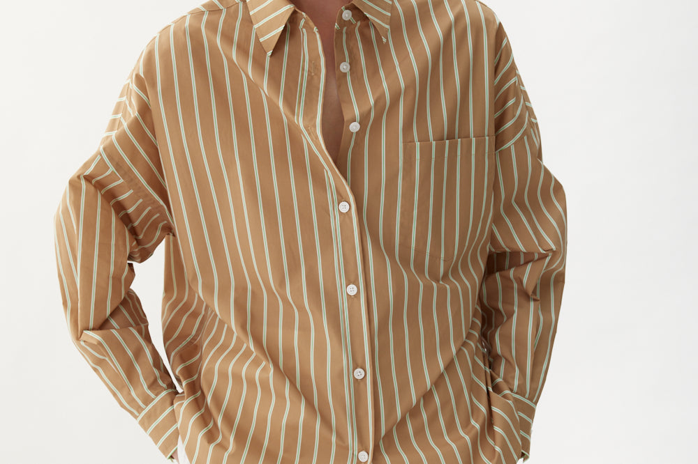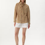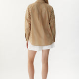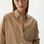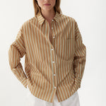 Rita Shirt - Effortless style meets elevated details with the Rita Shirt in our custom Toffee/White/Verde yarn-dyed stripes. Crafted from 100% premium cotton, this timeless shirt features our signature drop-shoulder silhouette and a practical front pocket for a relaxed yet polished look.