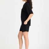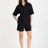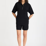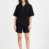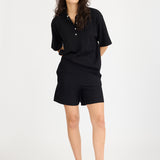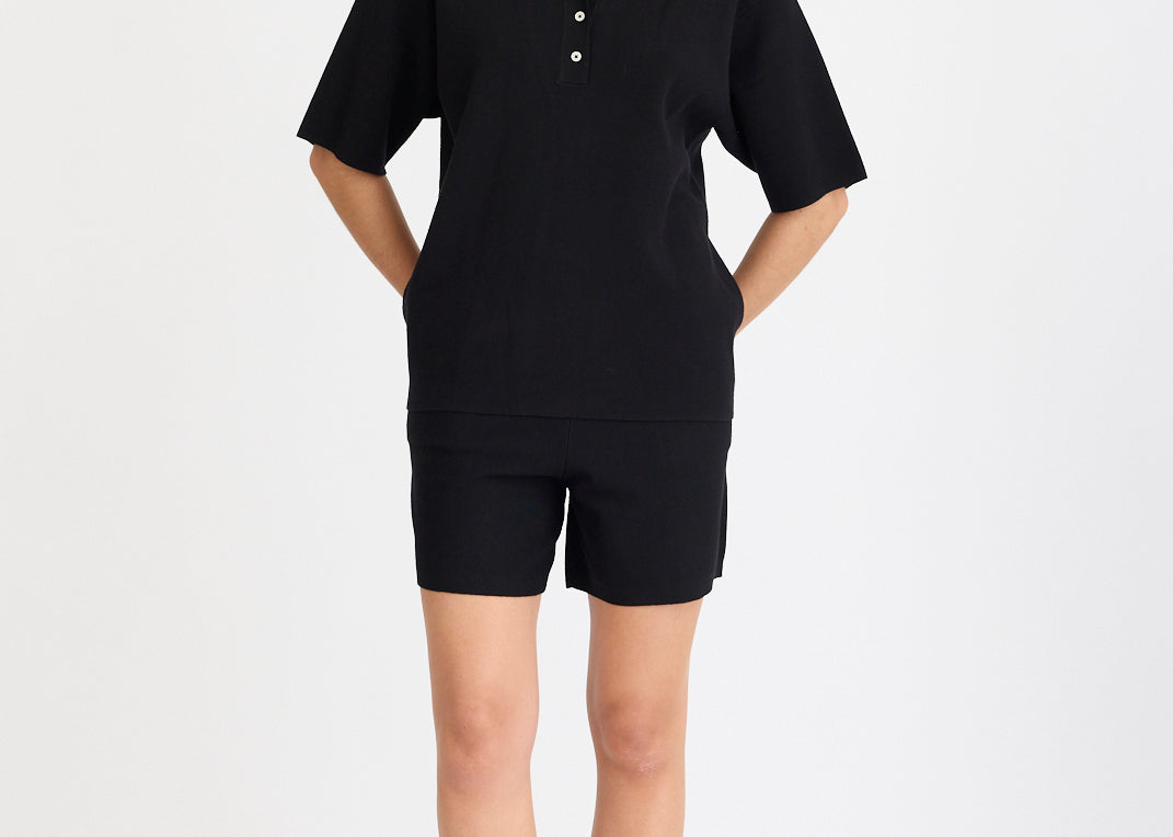 Effortlessly refined yet relaxed, the Rossy Polo captures LMND’s modern approach to everyday dressing. Knitted from a soft stretch blend, it features our signature custom stripe in timeless Black. The open collar and easy silhouette make it perfect for layering or wearing solo, bringing understated polish to any look.