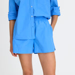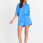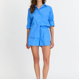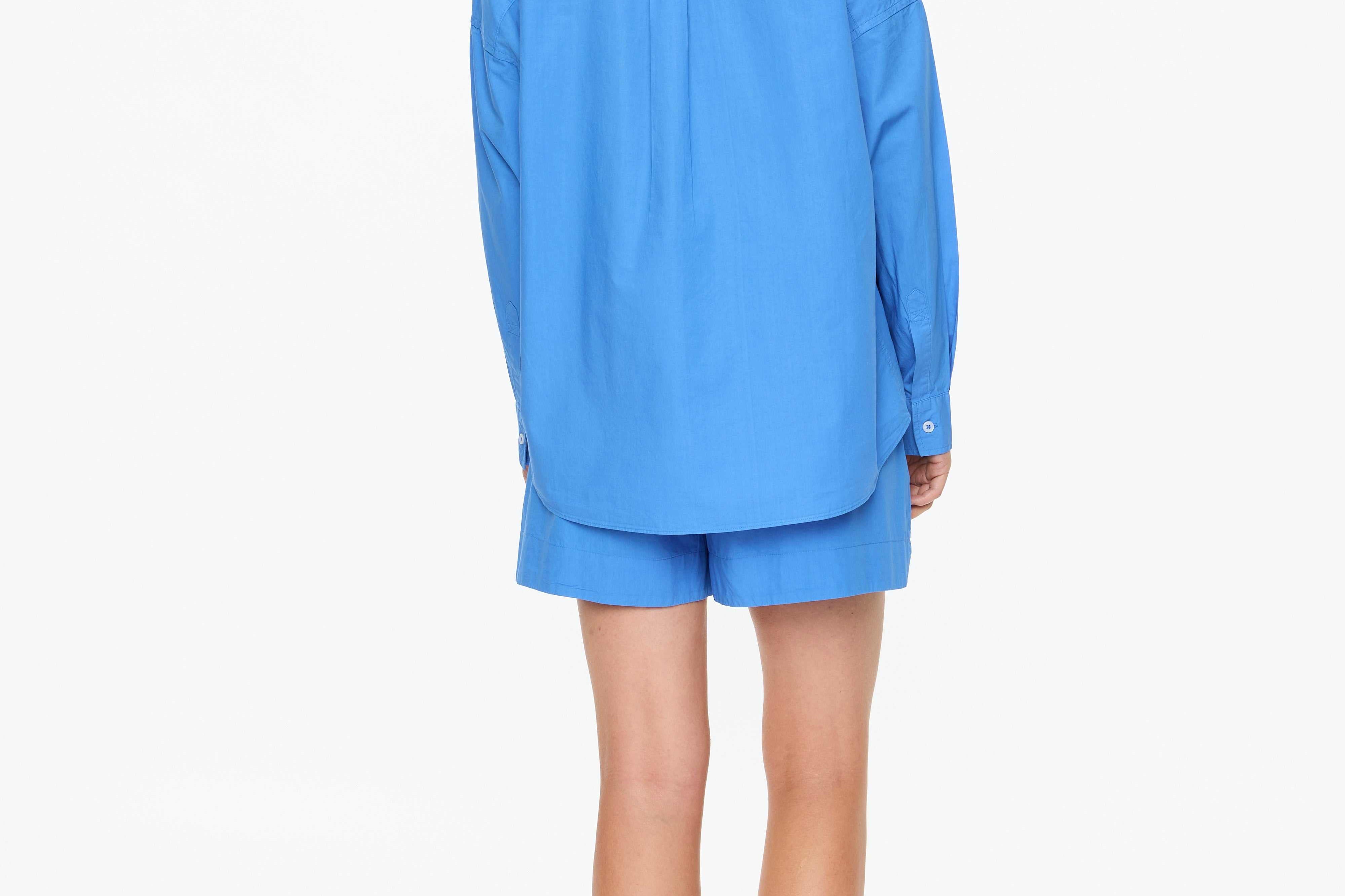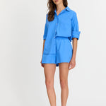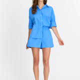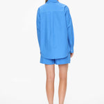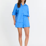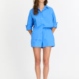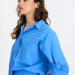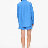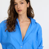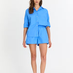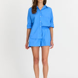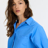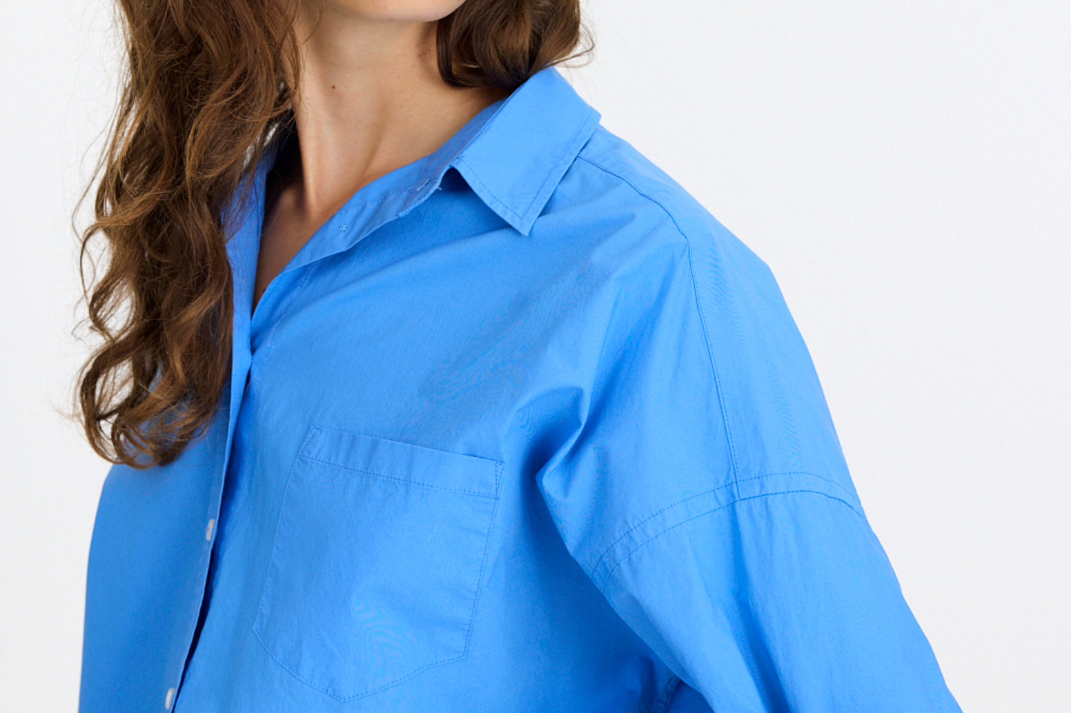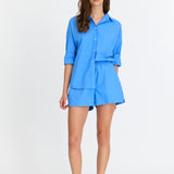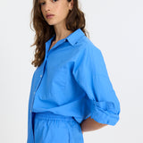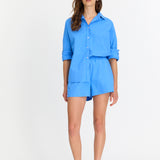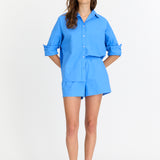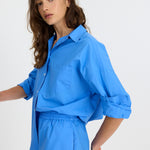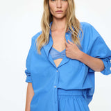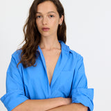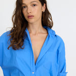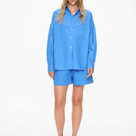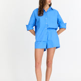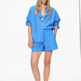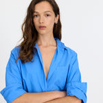 Our Signature Classic button-up shirt. Crafted from premium 100% cotton, this timeless piece features a chest pocket and a relaxed, slightly loose silhouette with drop shoulders. Its versatile design makes it ideal for layering underneath cozy knitwear or pairing with our matching Chiara shorts for a chic coordinated look.